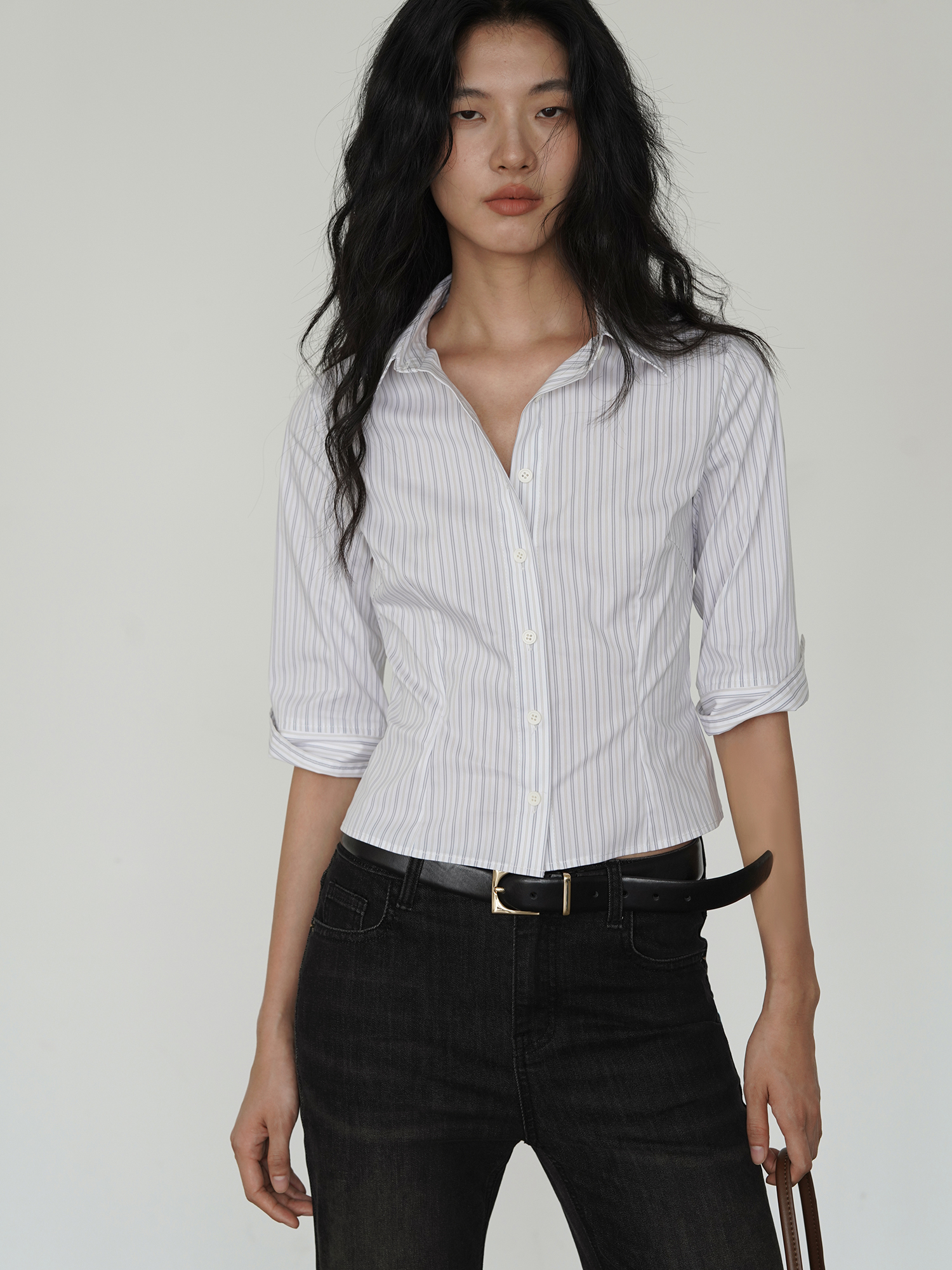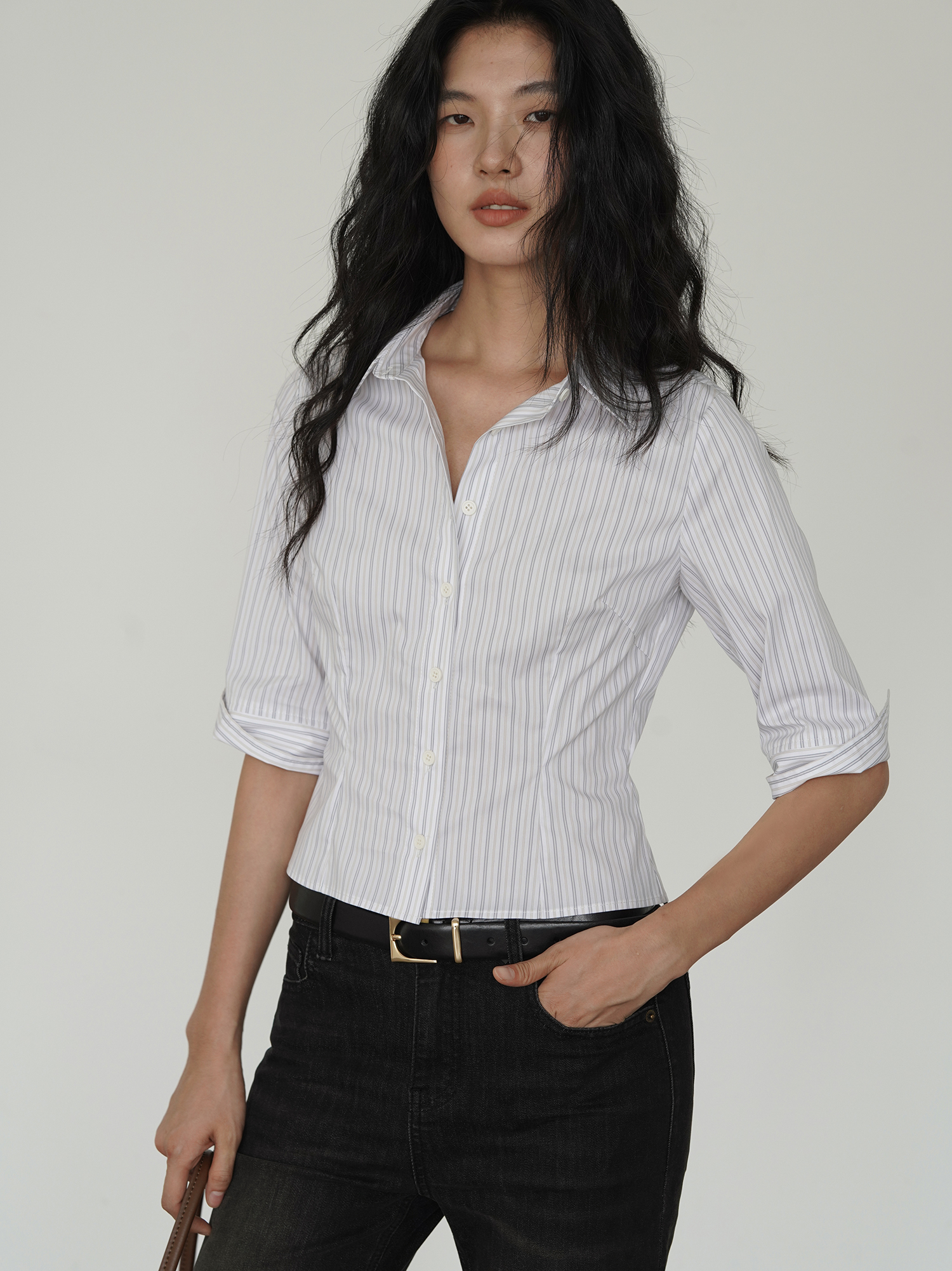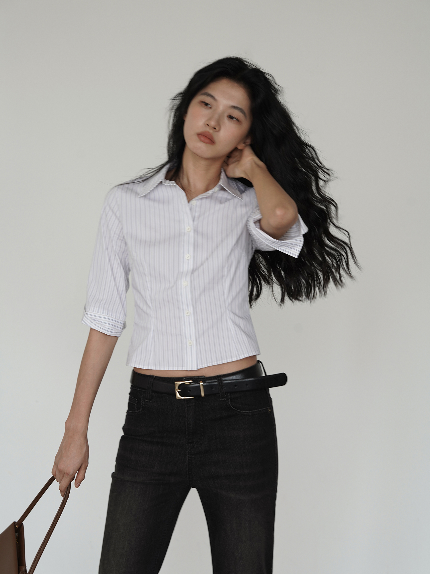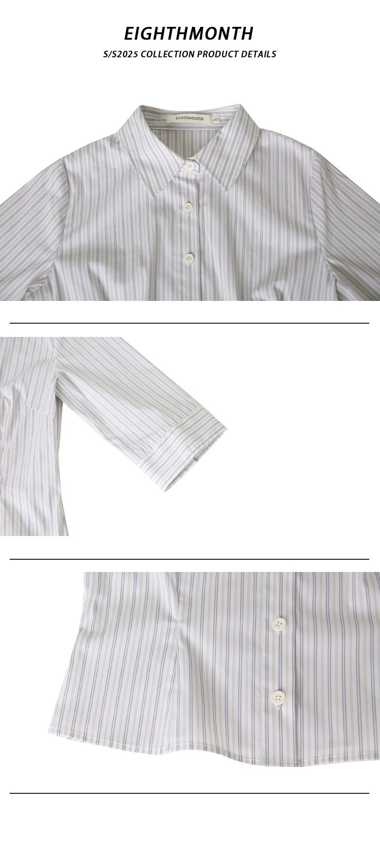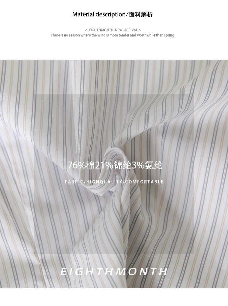 EIGHTHMONTH Striped Waist Mid-sleeved Shirt