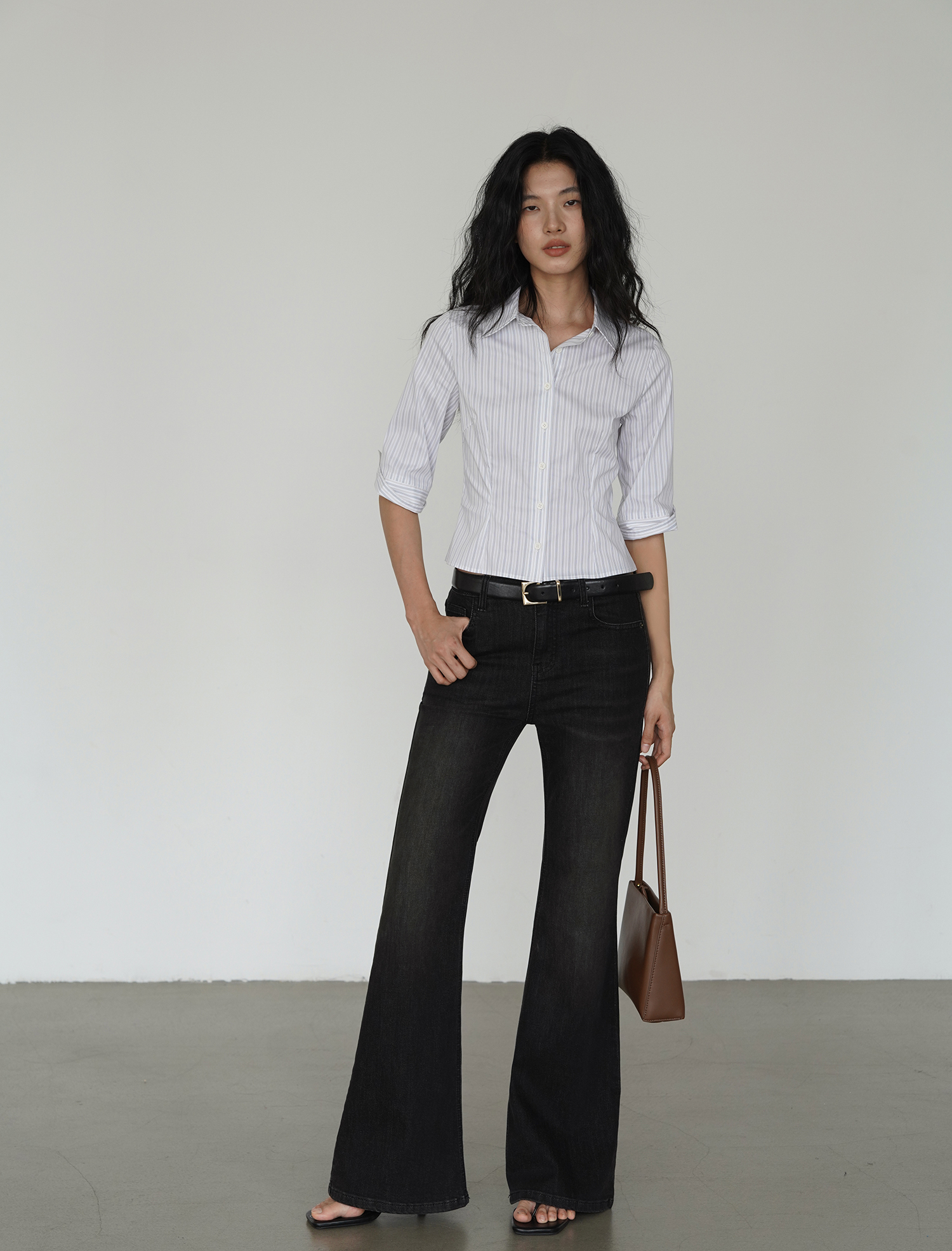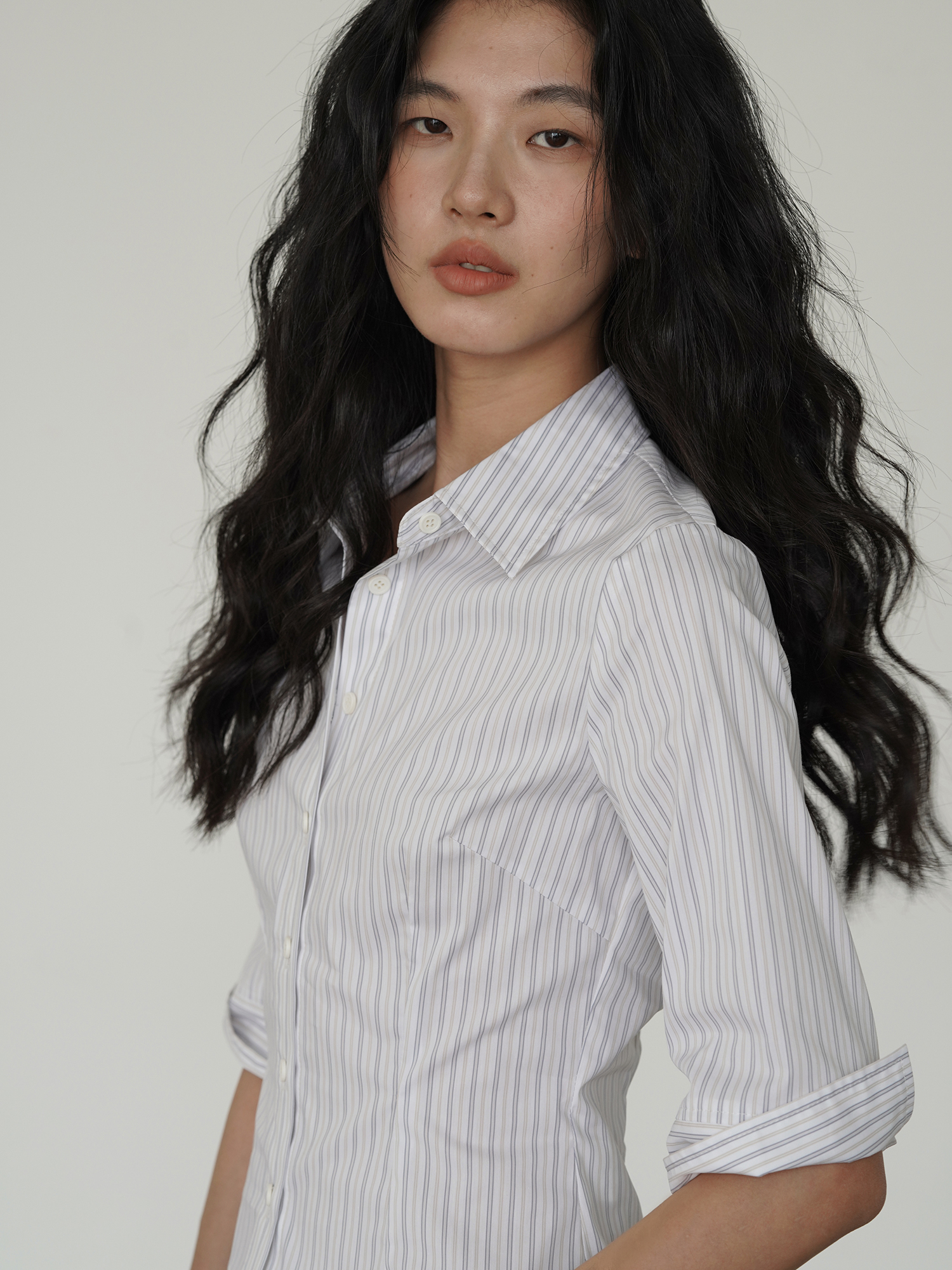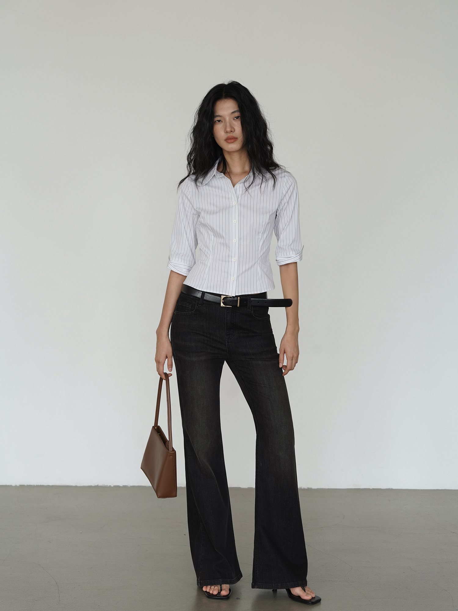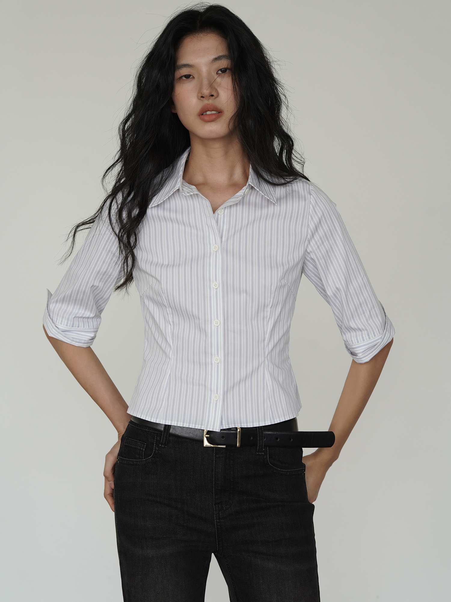 EIGHTHMONTH Striped Waist Mid-sleeved Shirt