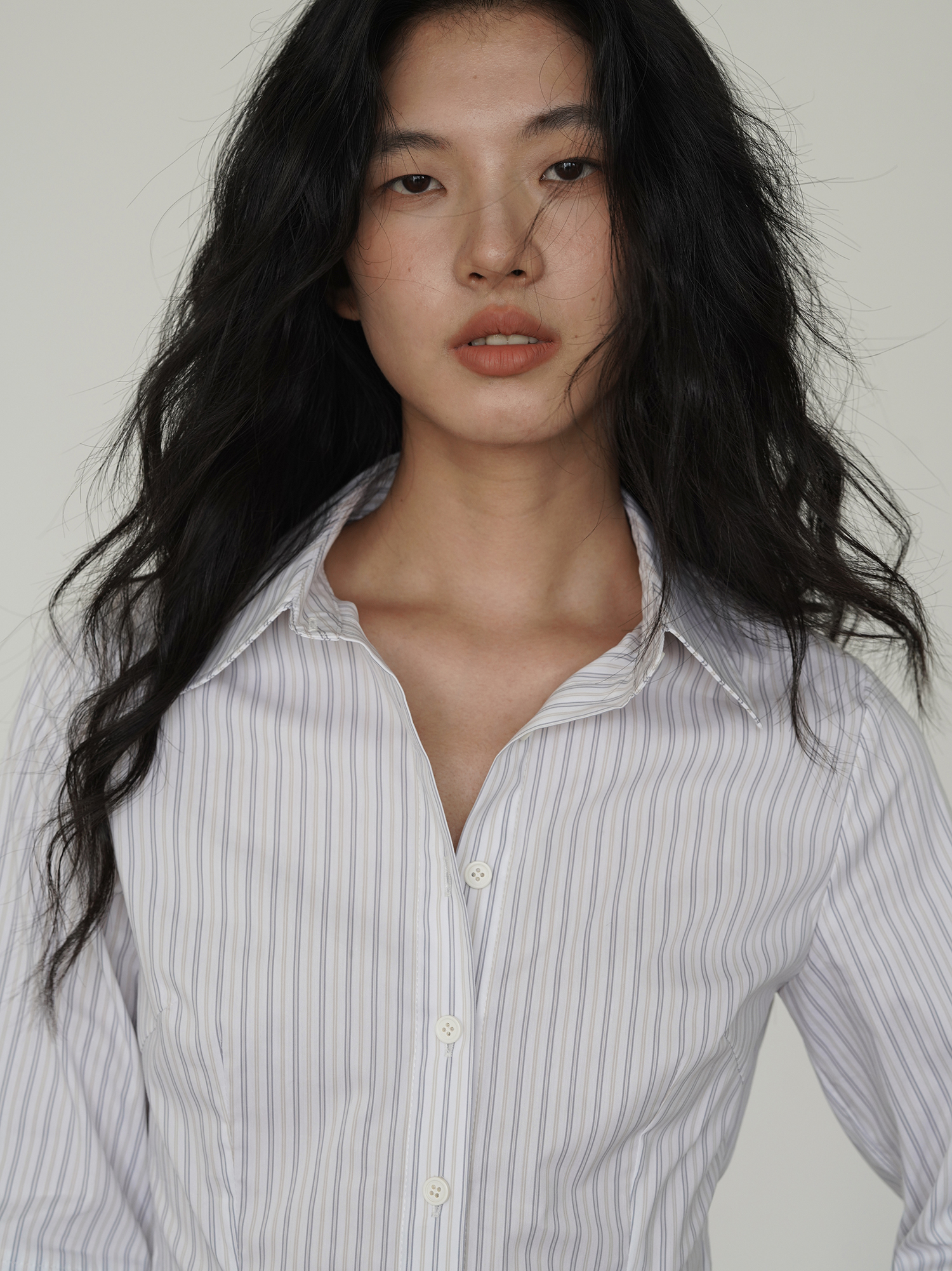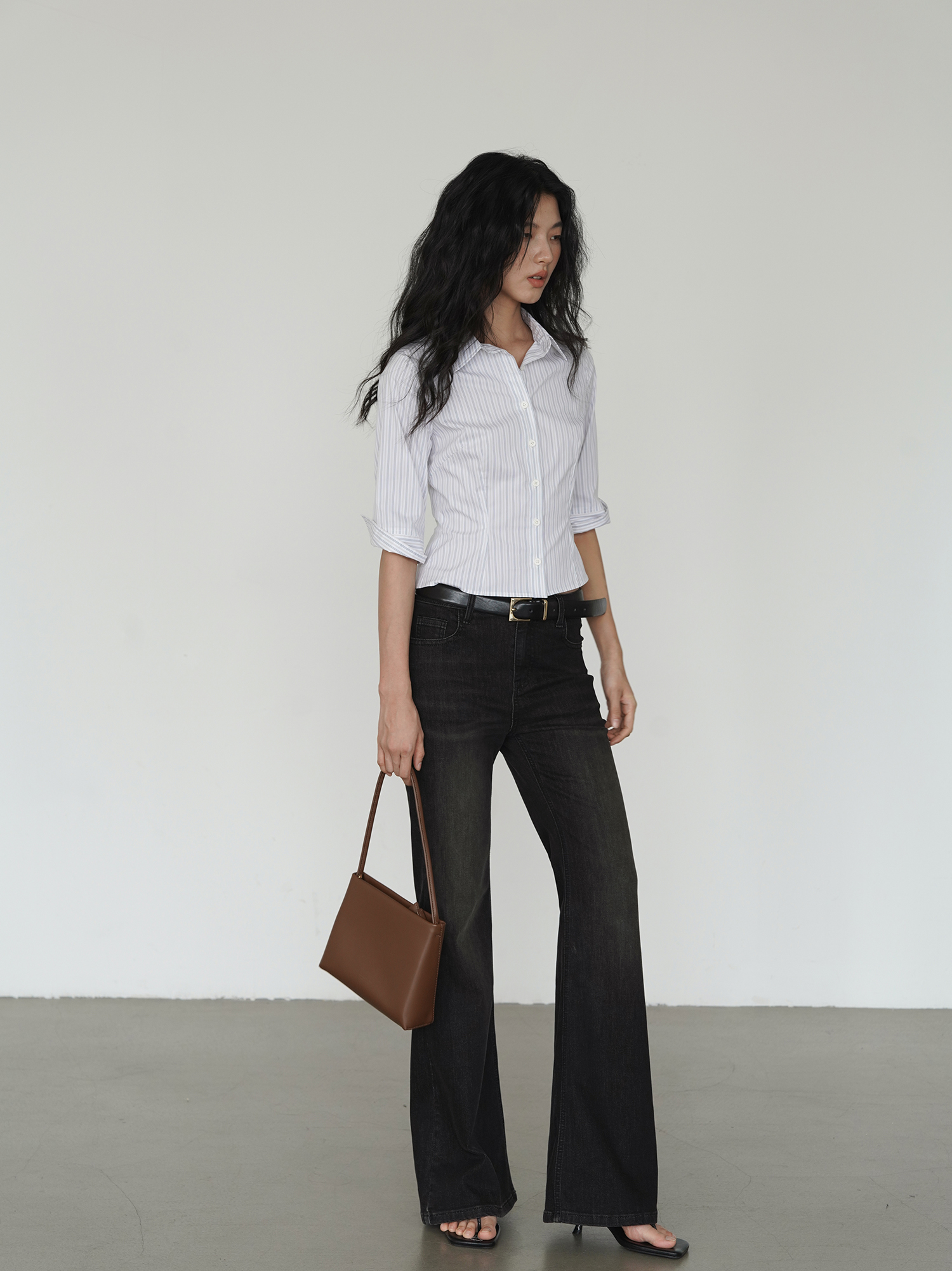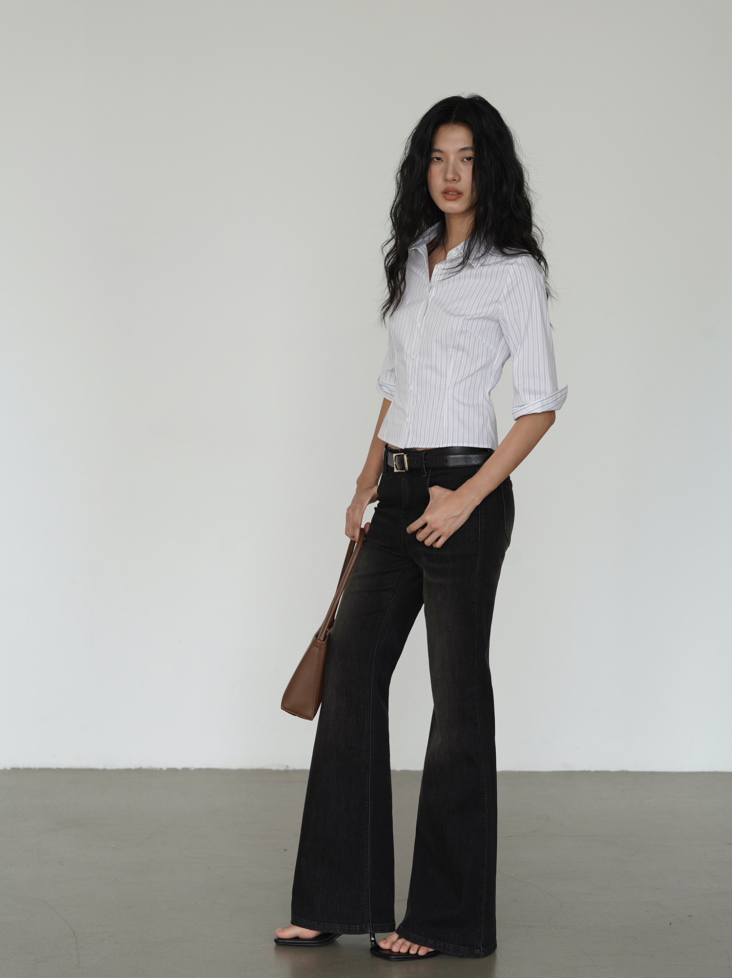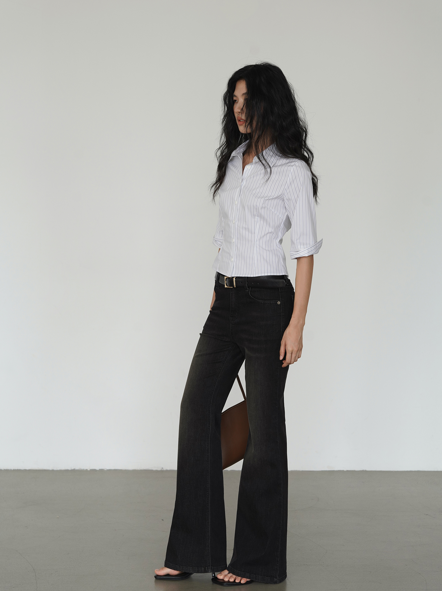 EIGHTHMONTH Striped Waist Mid-sleeved Shirt
