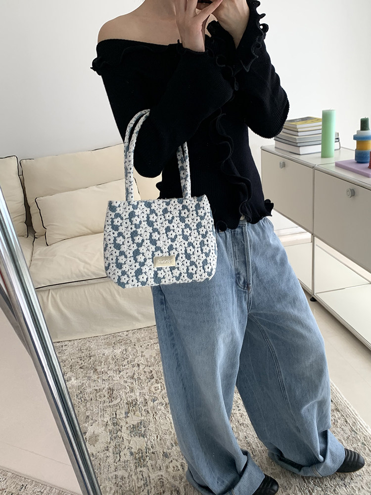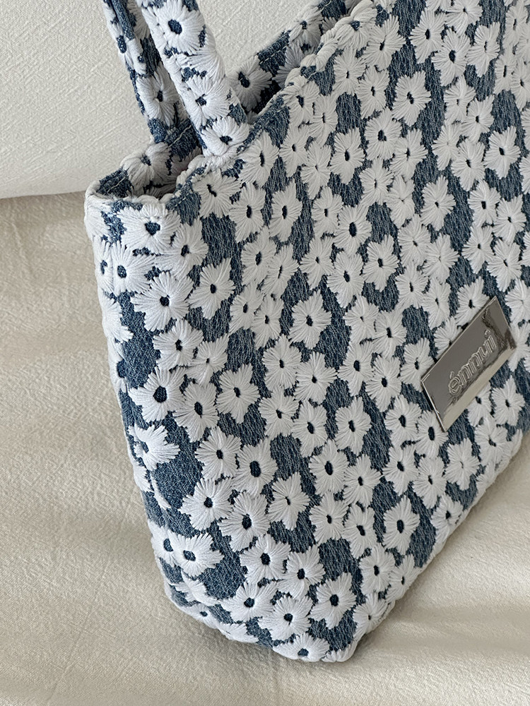 ENNUI Exquisite Three-dimensional Flower Embroidery Tote Shoulder Handbag