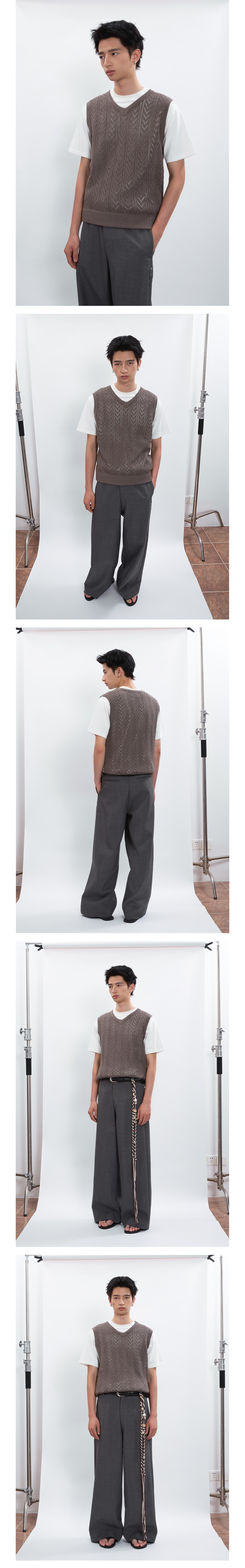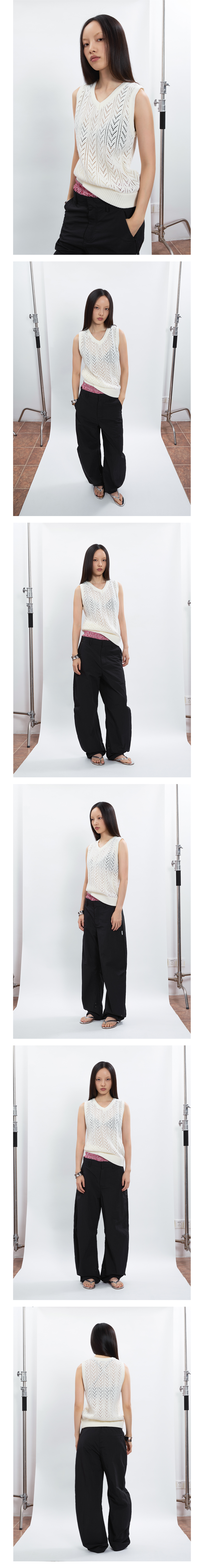 FUNKYFUN Arrow-shaped Hollow-knit V-neck Pullover Vest