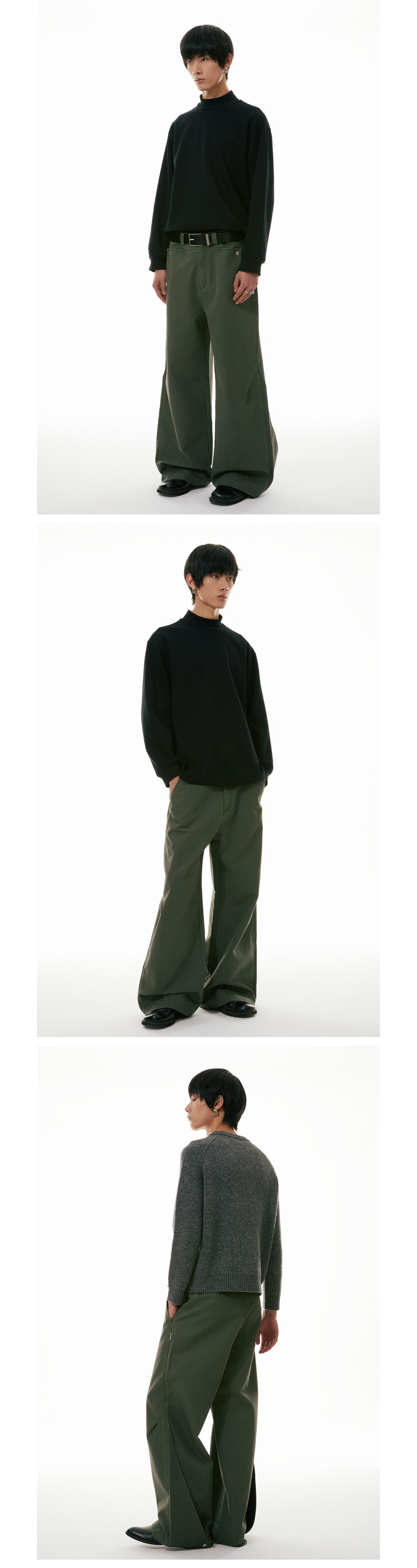 FUNKYFUN Bead Sail Wide-leg Straight Tooling Slacks