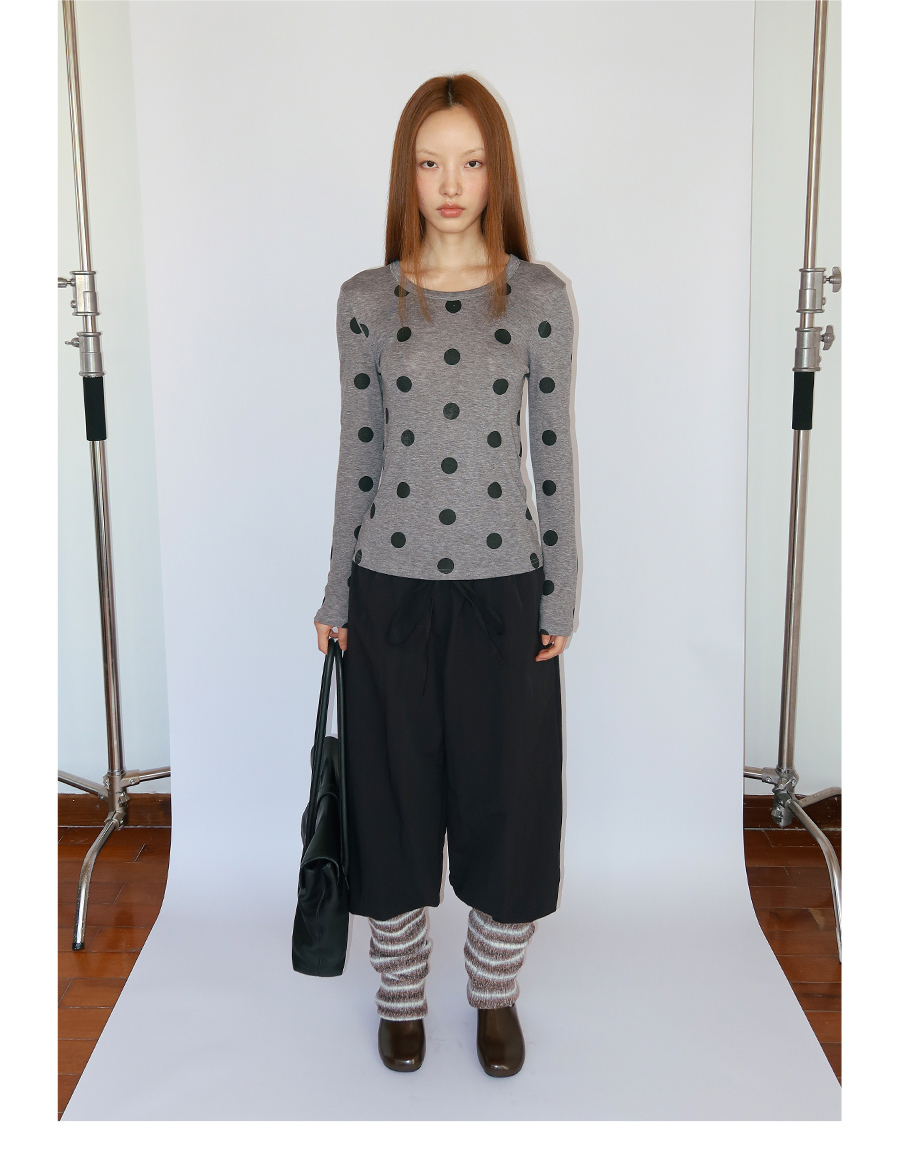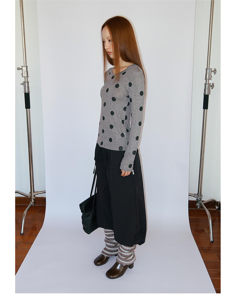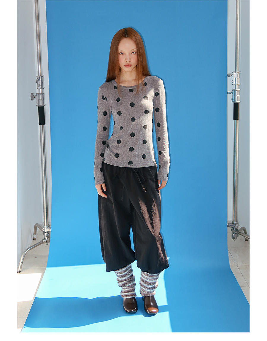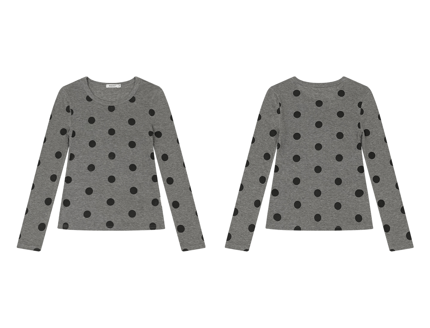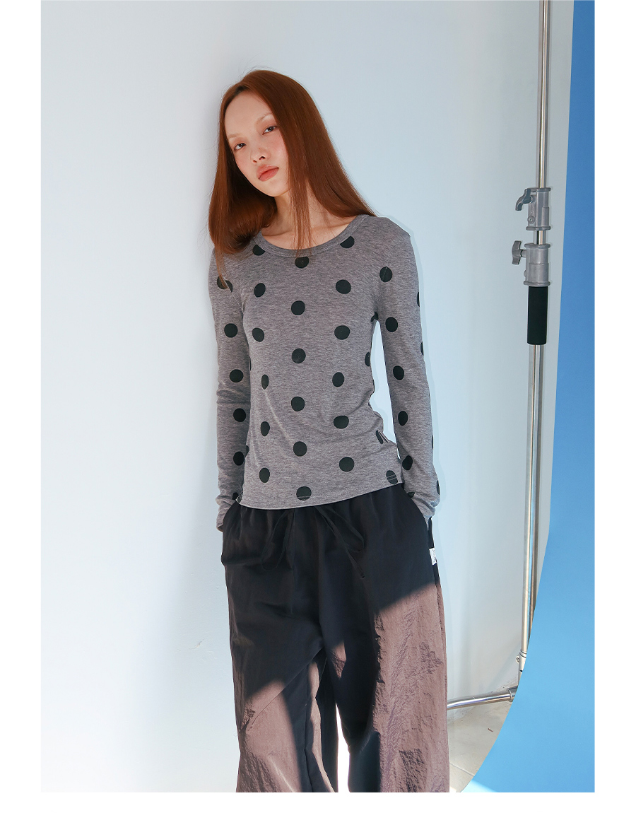 FUNKYFUN Full Printed Polka Dot Printed Elastic Front Shoulder Long Sleeve
