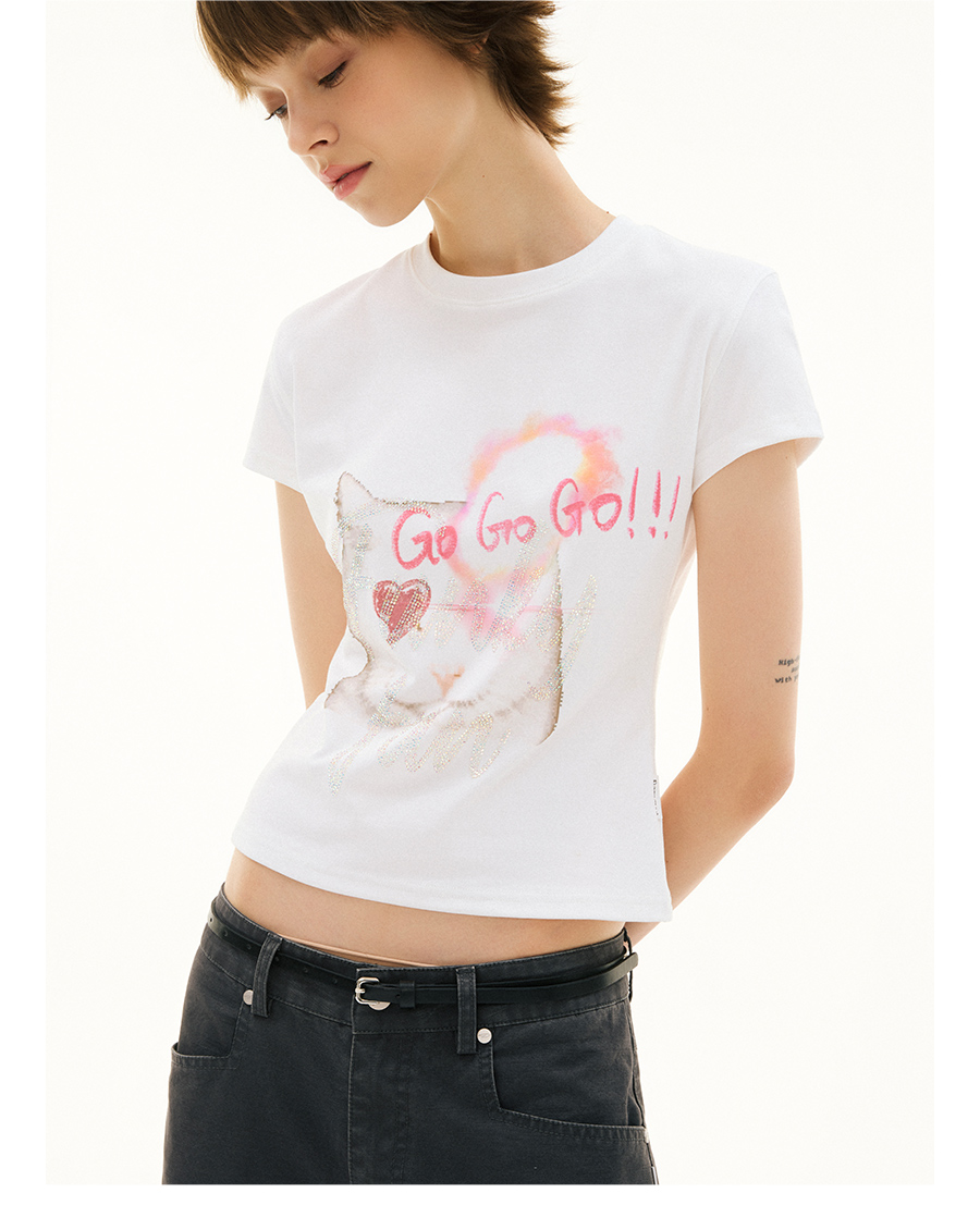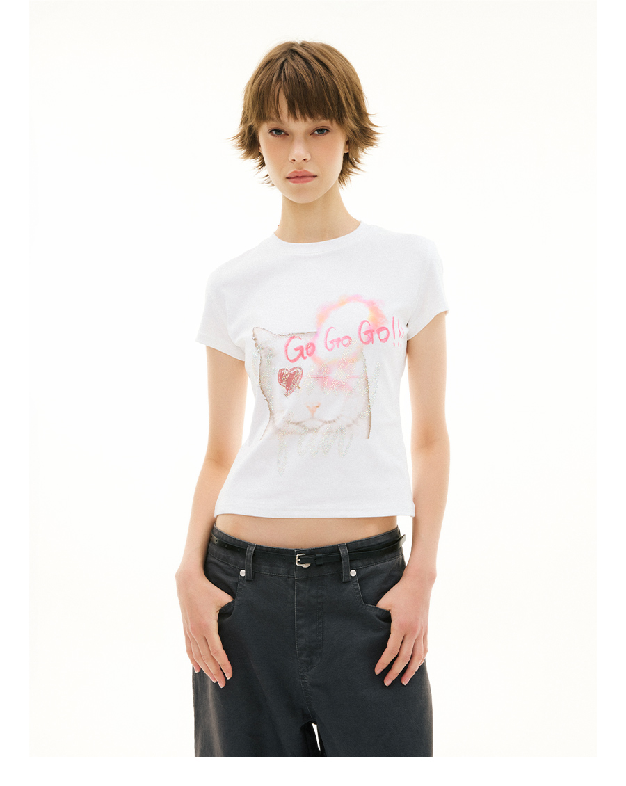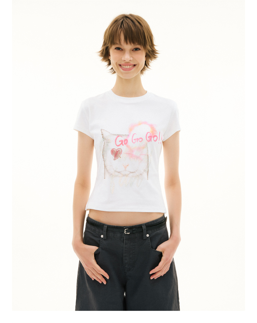 FUNKYFUN Kitten Color Hot Diamond Small Version Elastic Tee