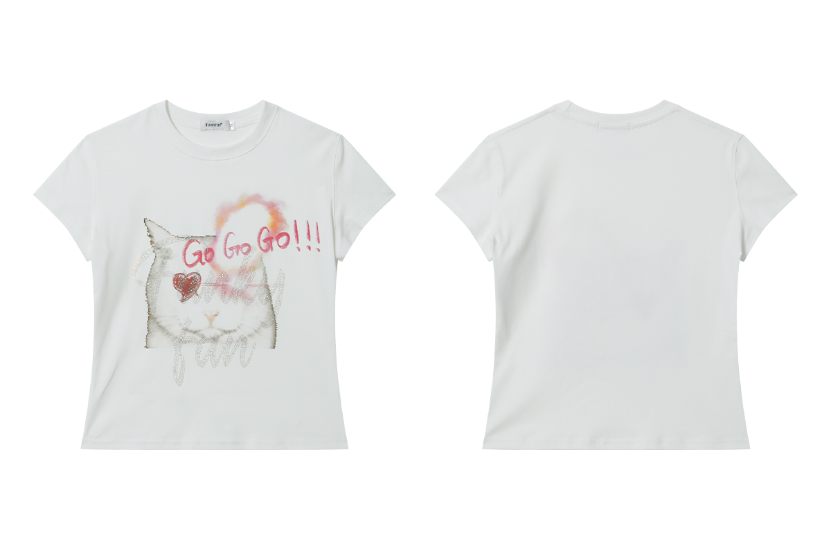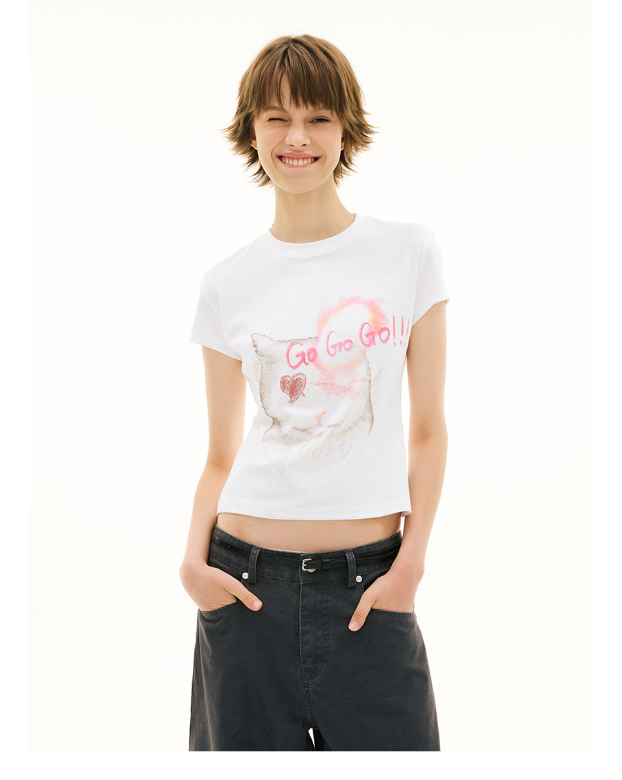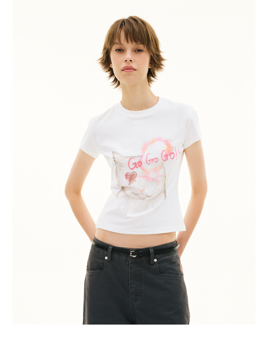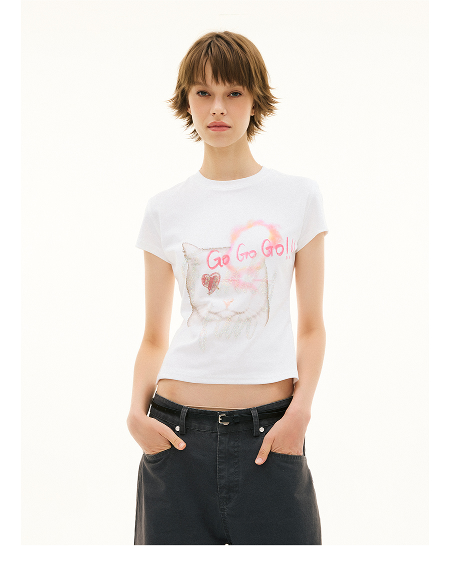 FUNKYFUN Kitten Color Hot Diamond Small Version Elastic Tee