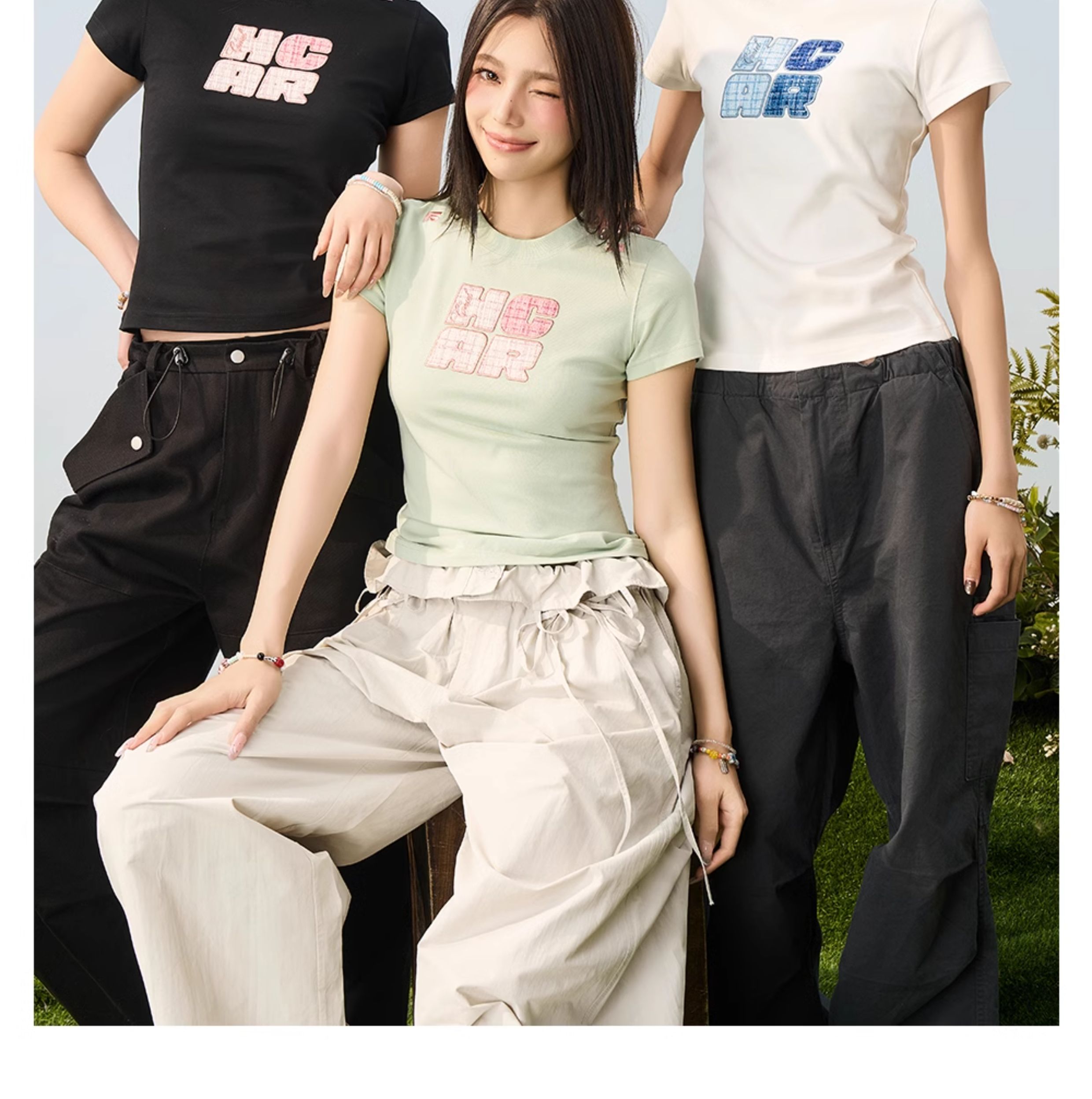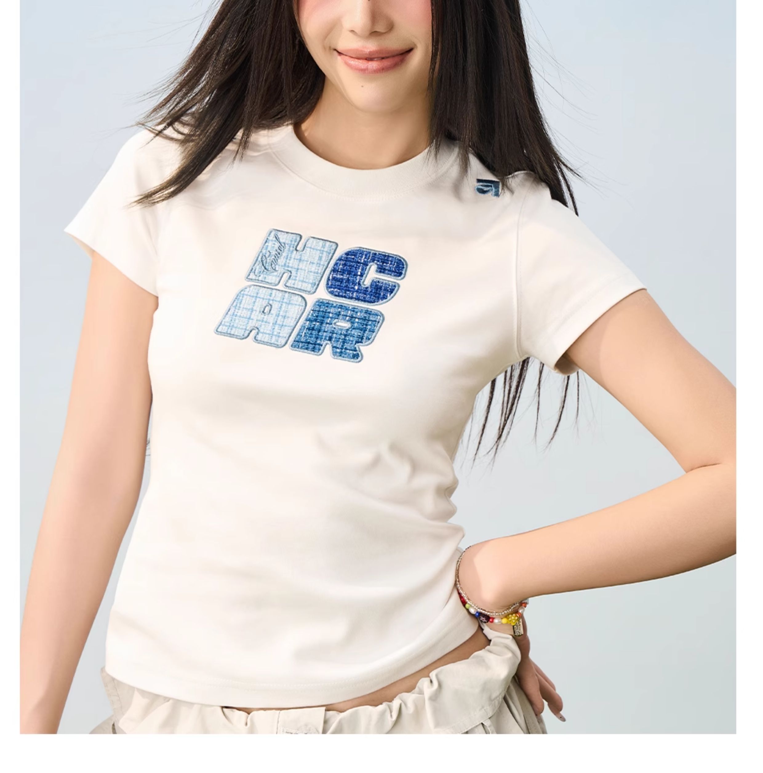 HACR small fragrant wind sticker elastic slim tee