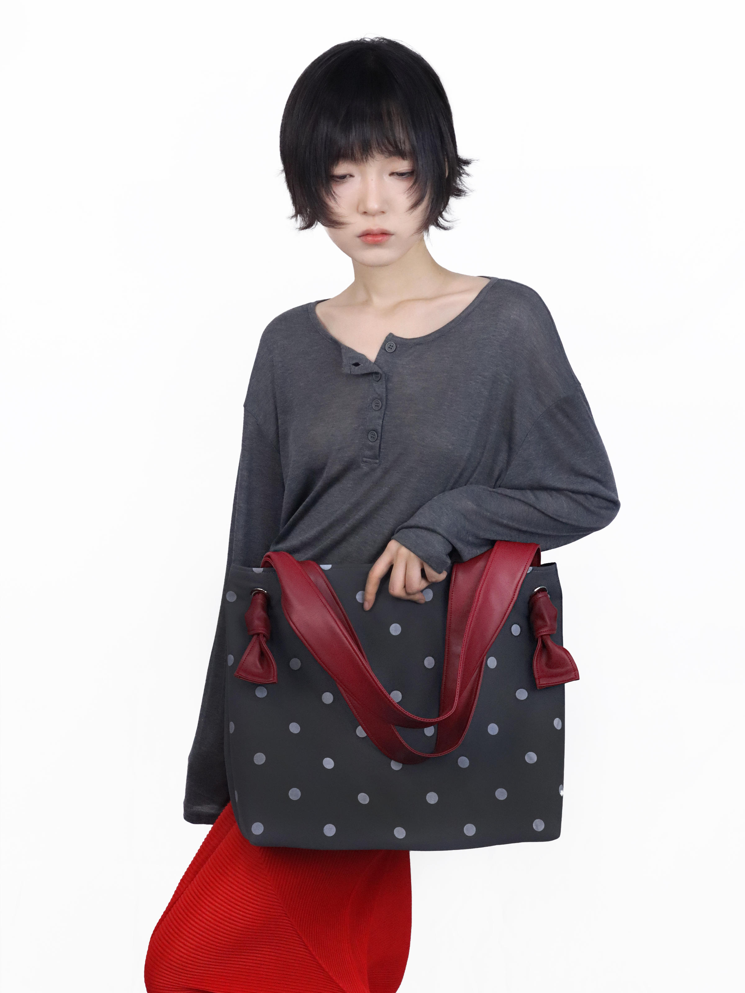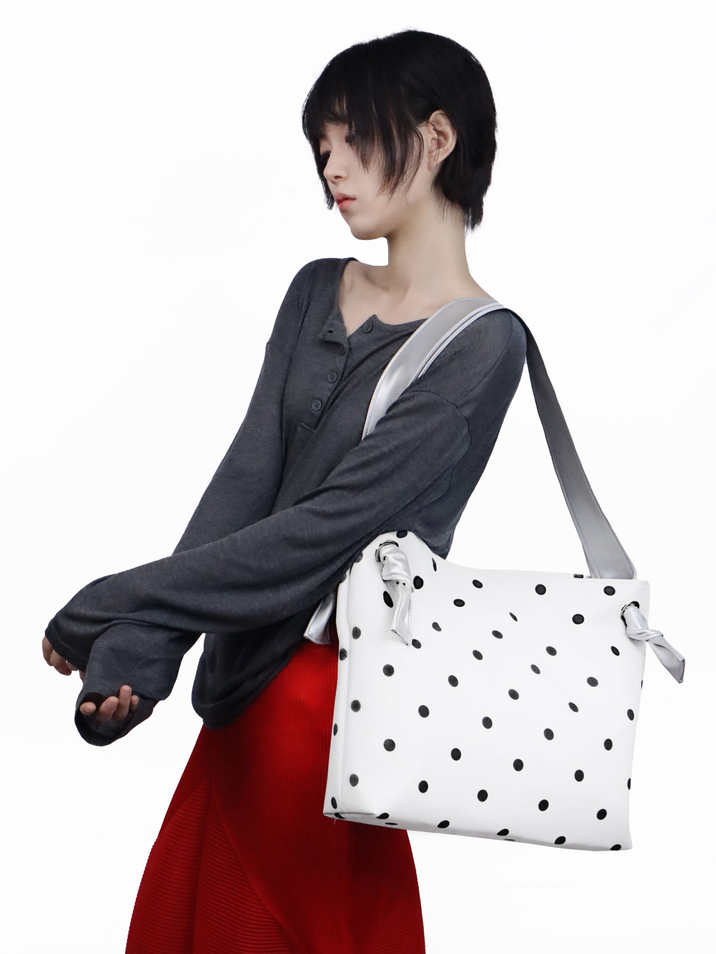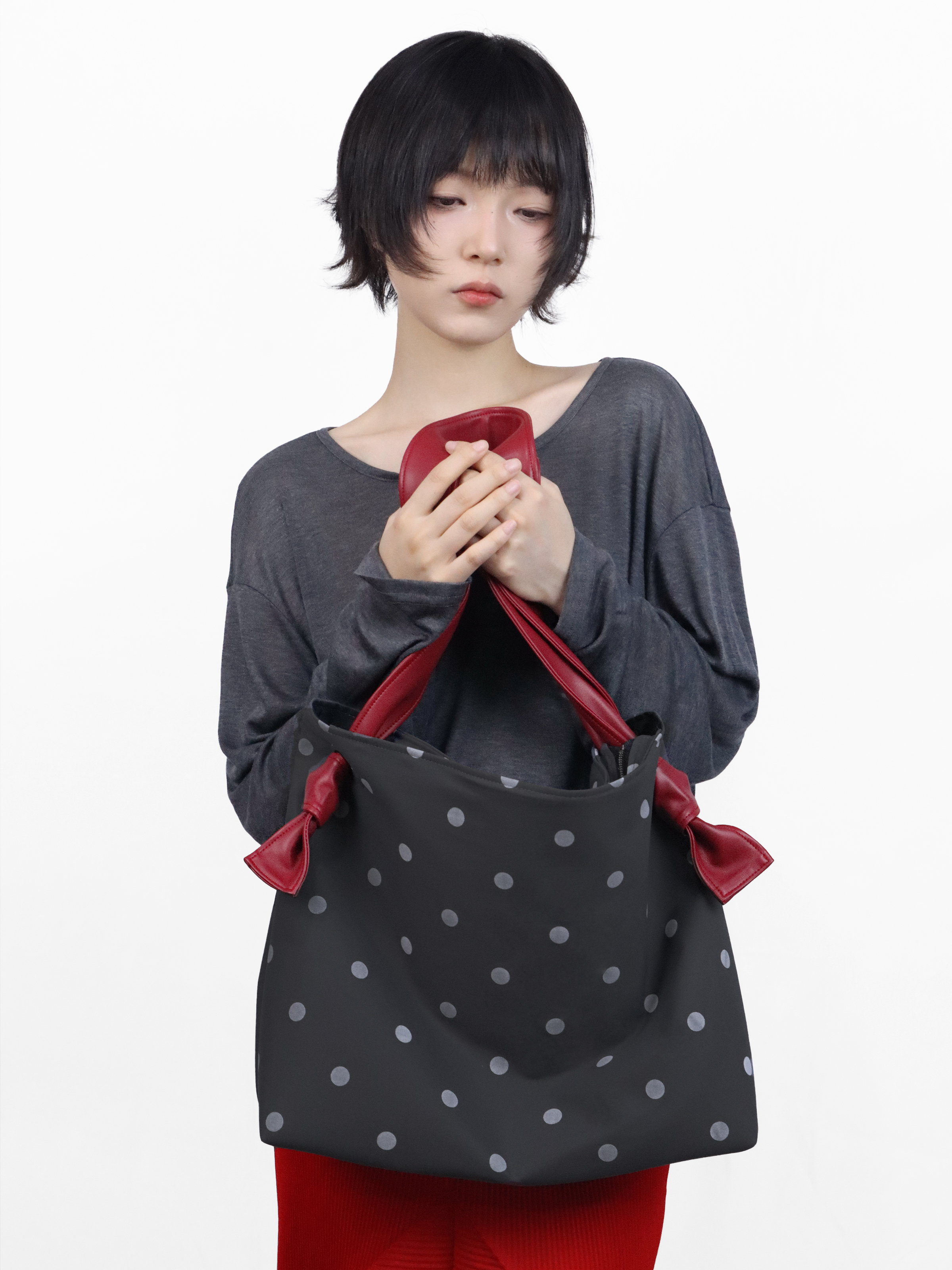 Heelwood Contrast Polka Dot Shoulder Tote Bag