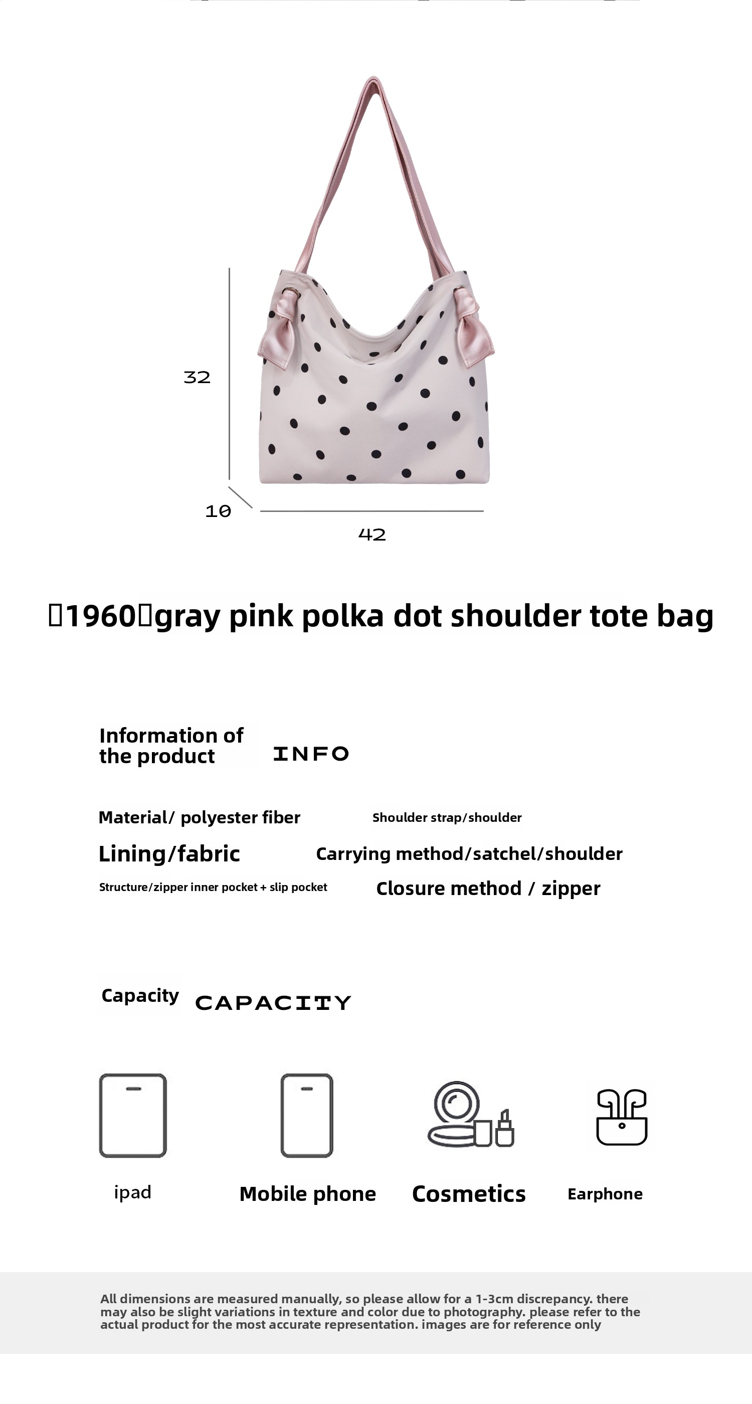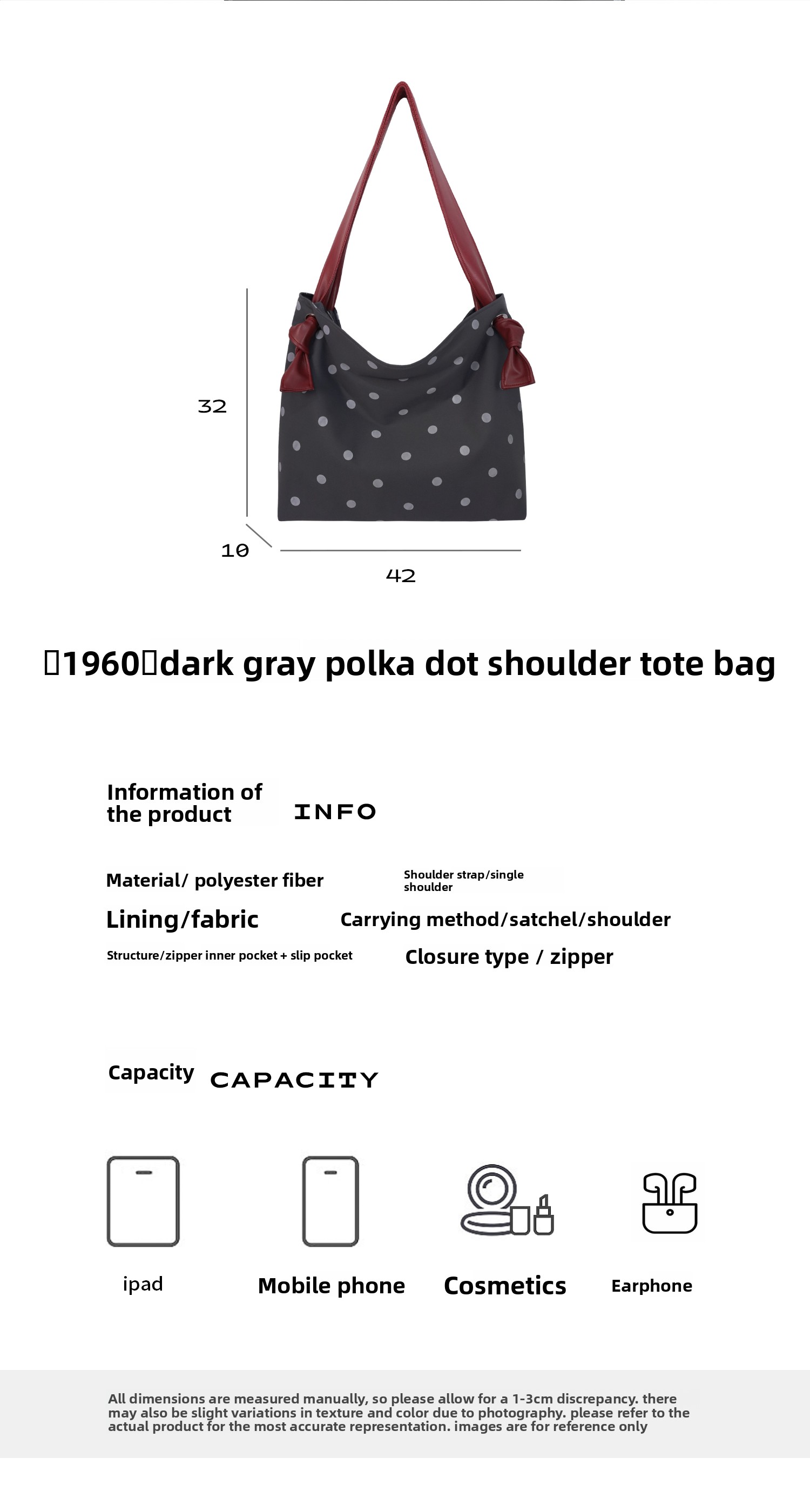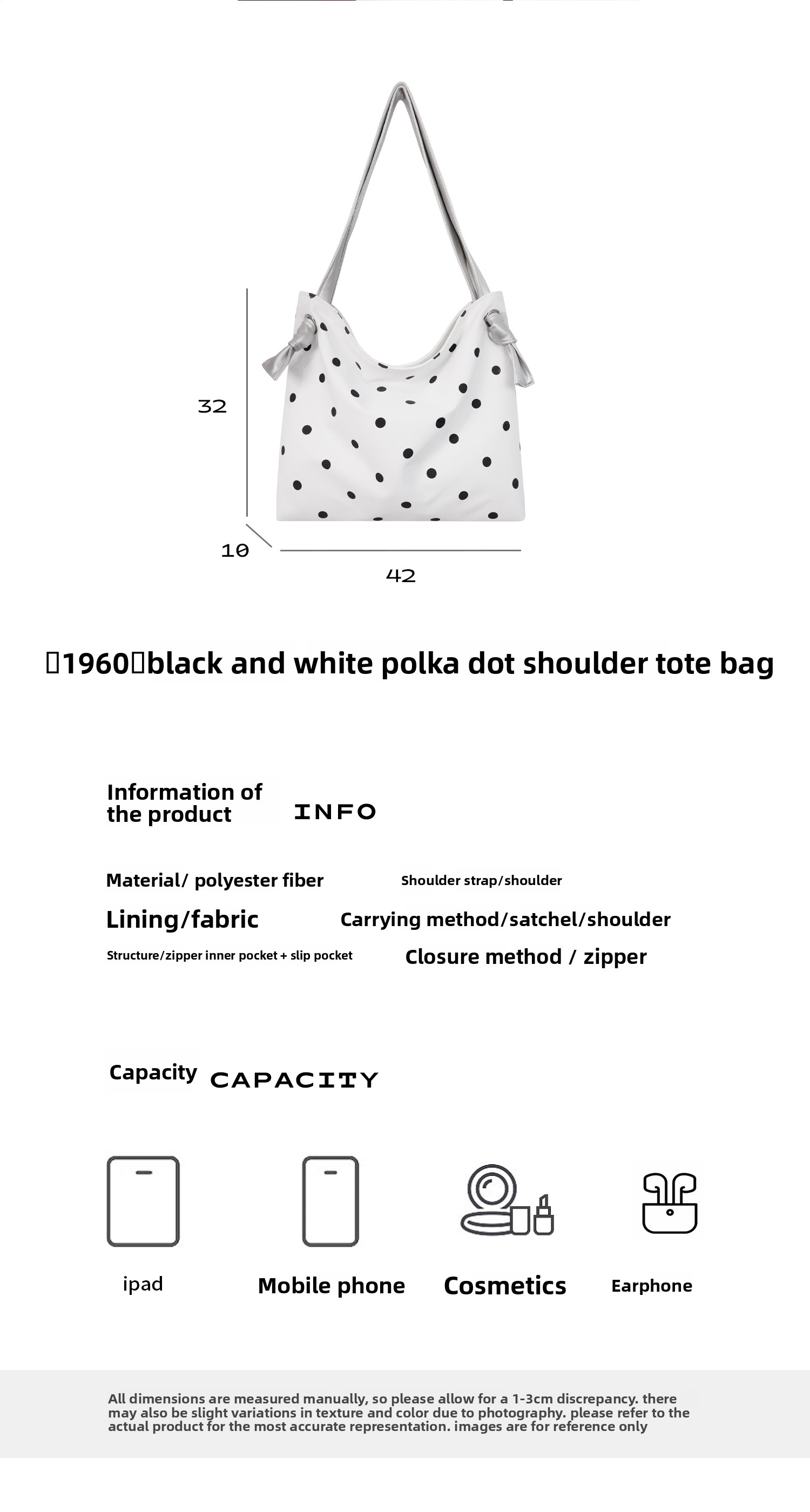 Heelwood Contrast Polka Dot Shoulder Tote Bag