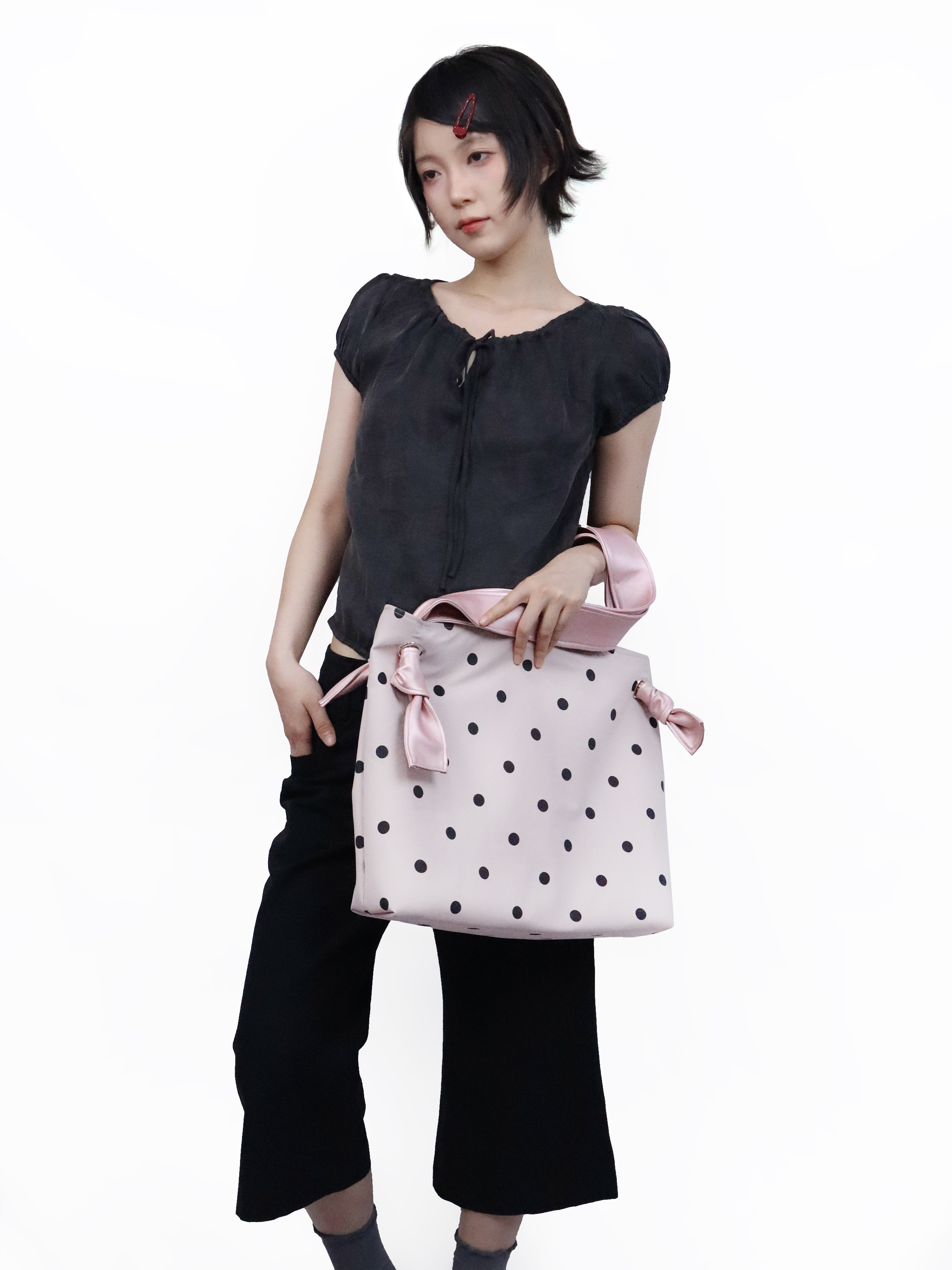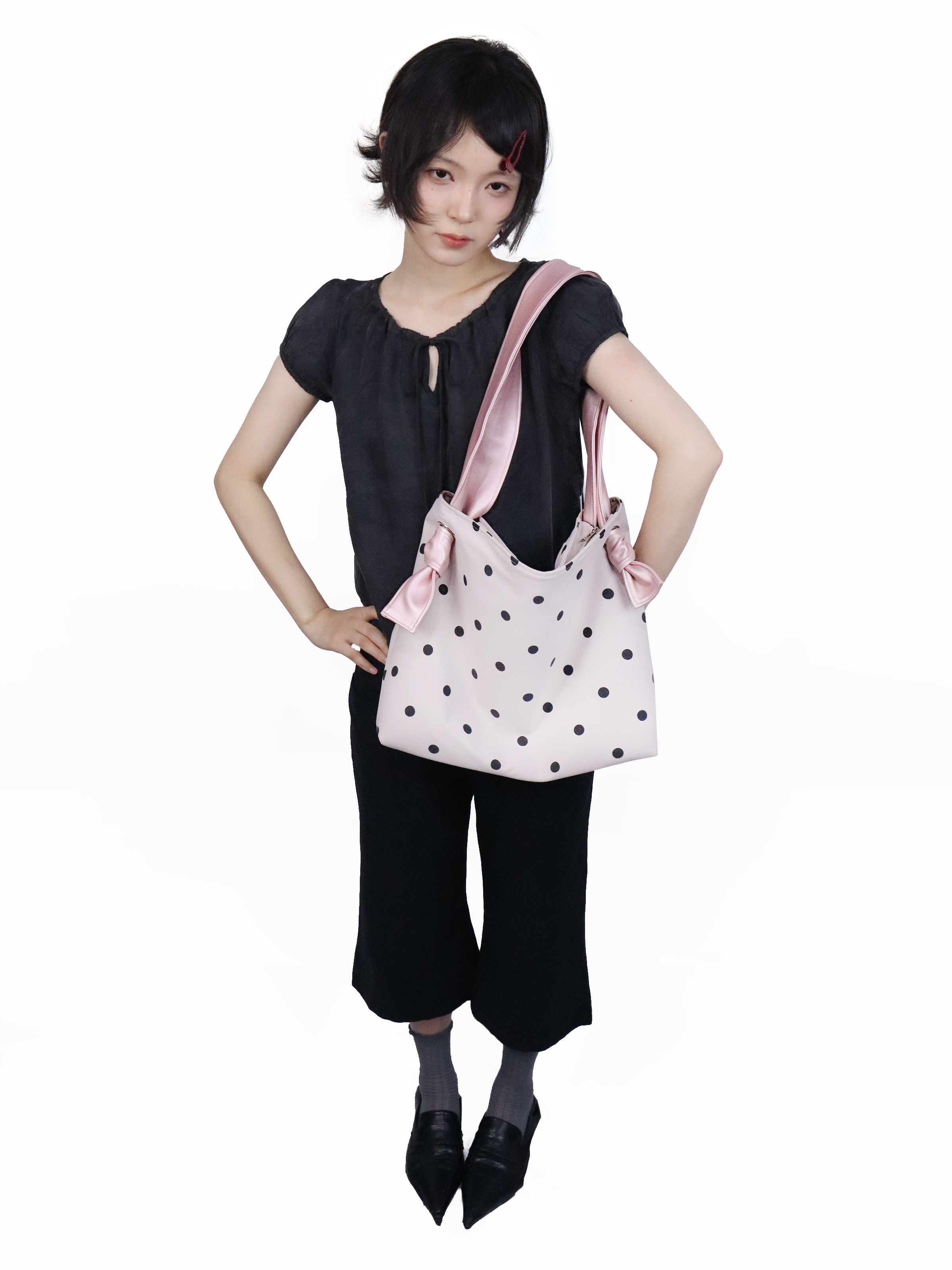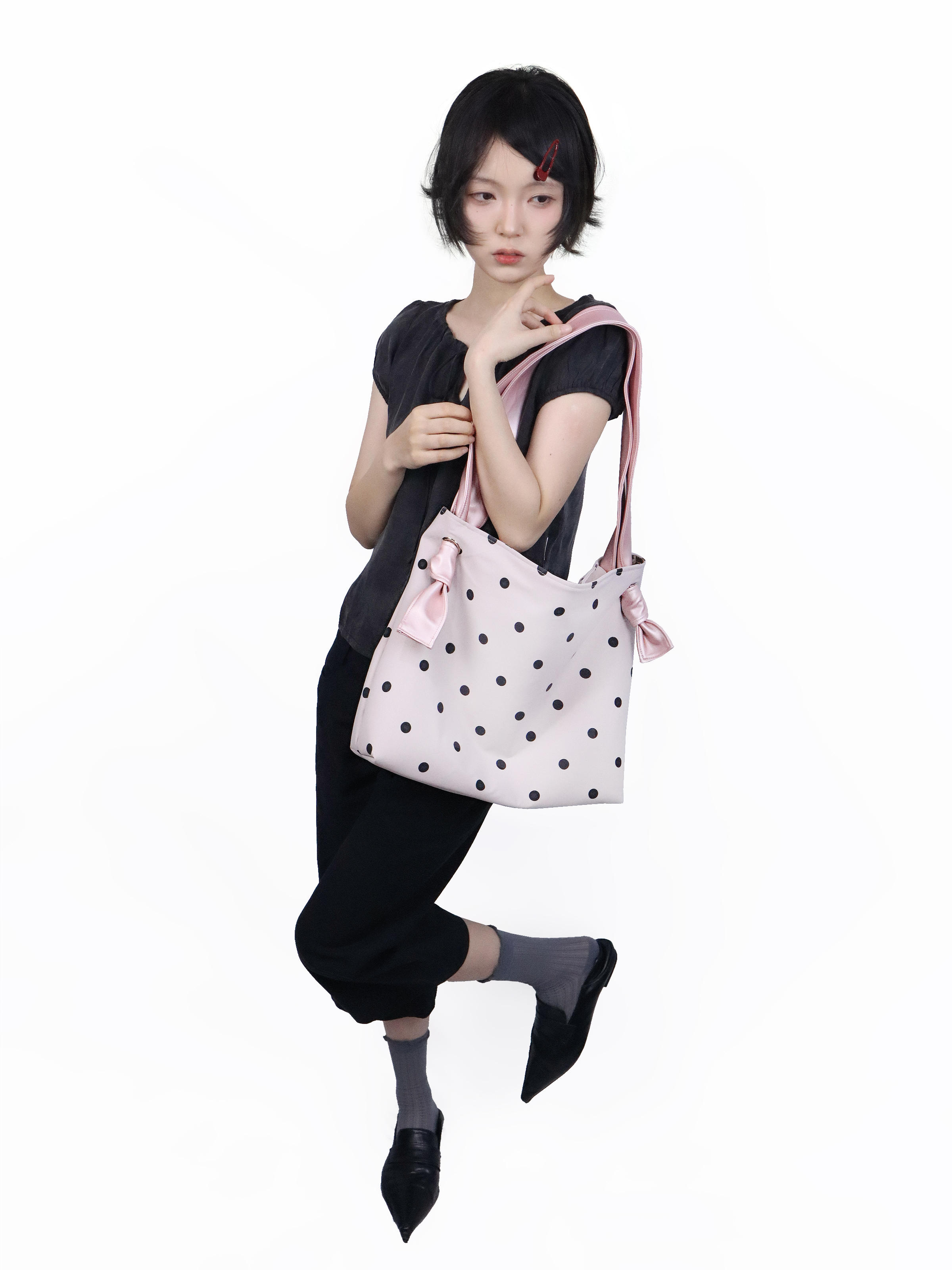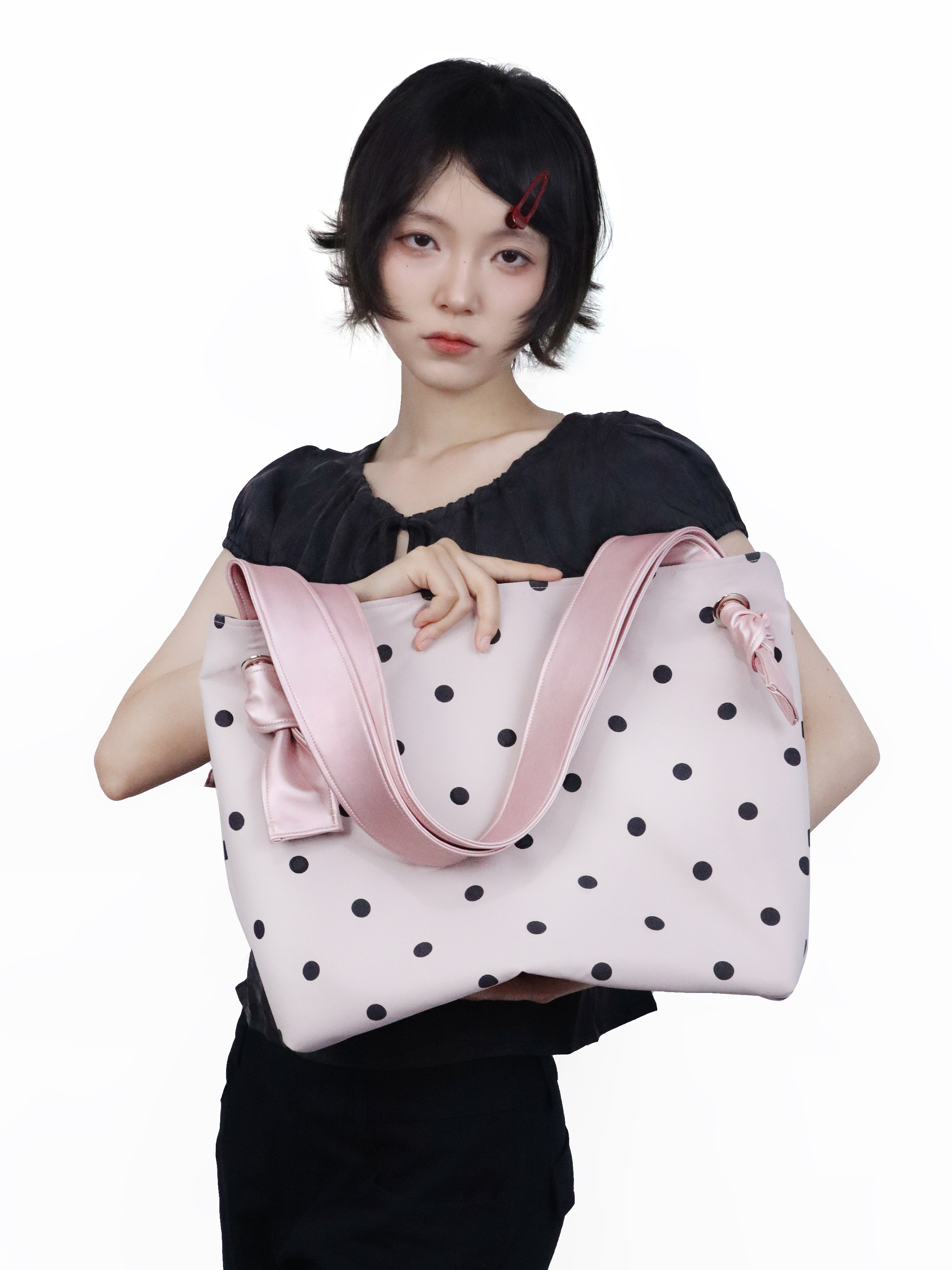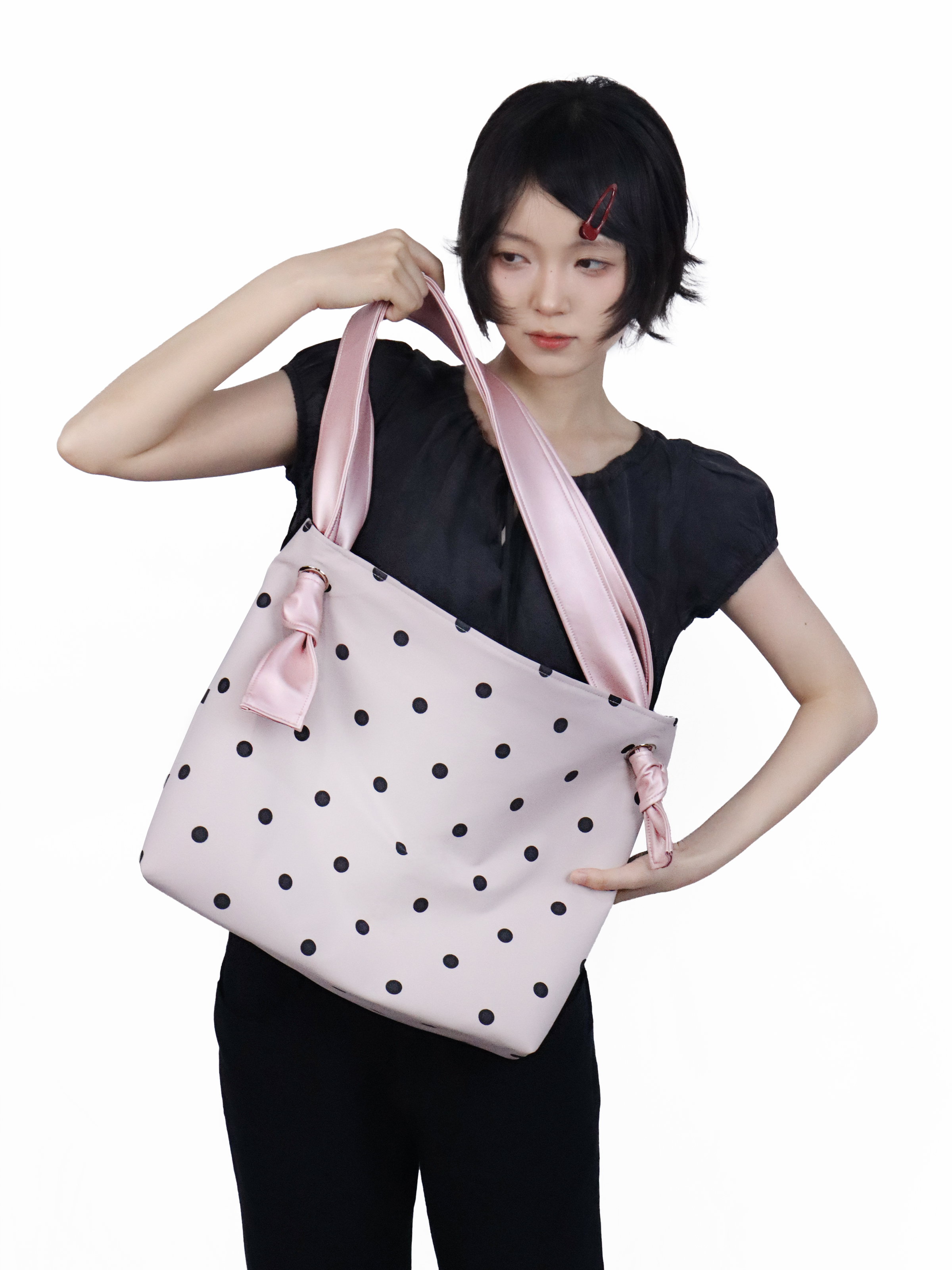 Heelwood Large Capacity Contrast Color Polka Dot Shoulder Tote Bag