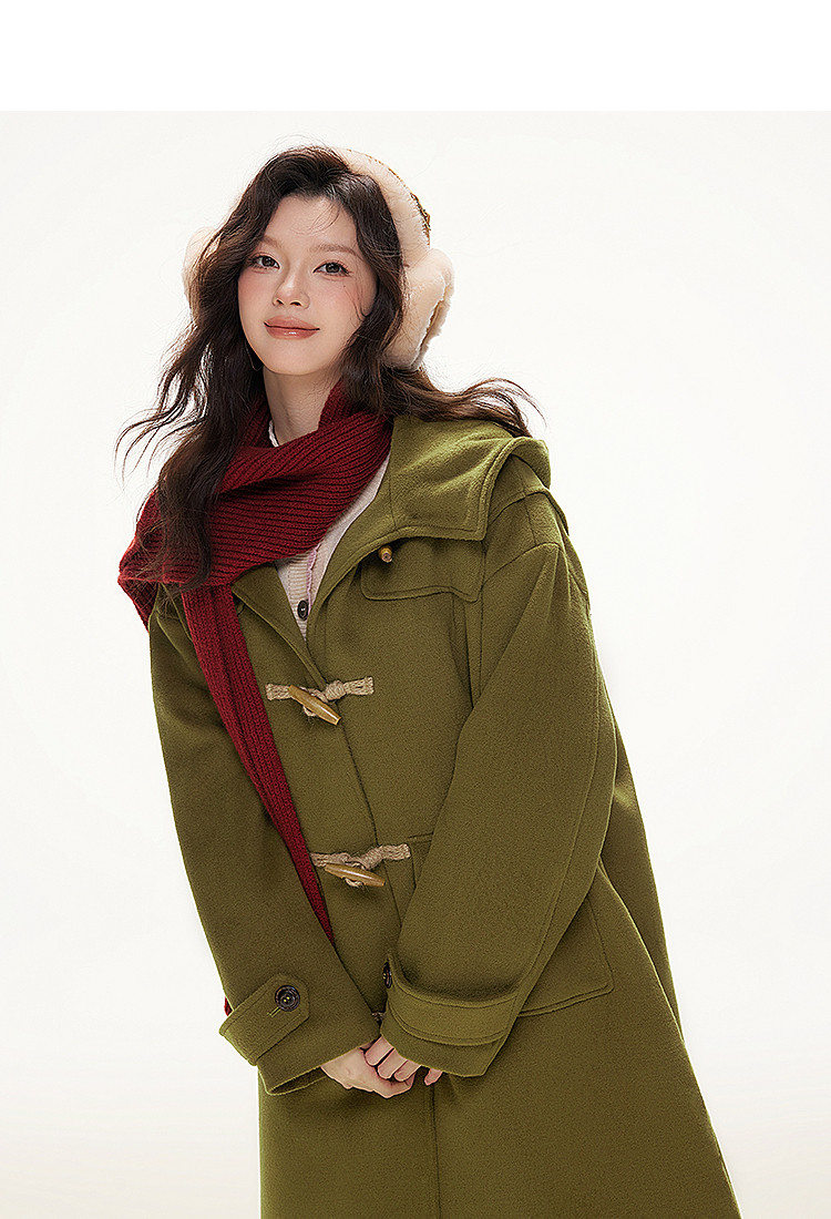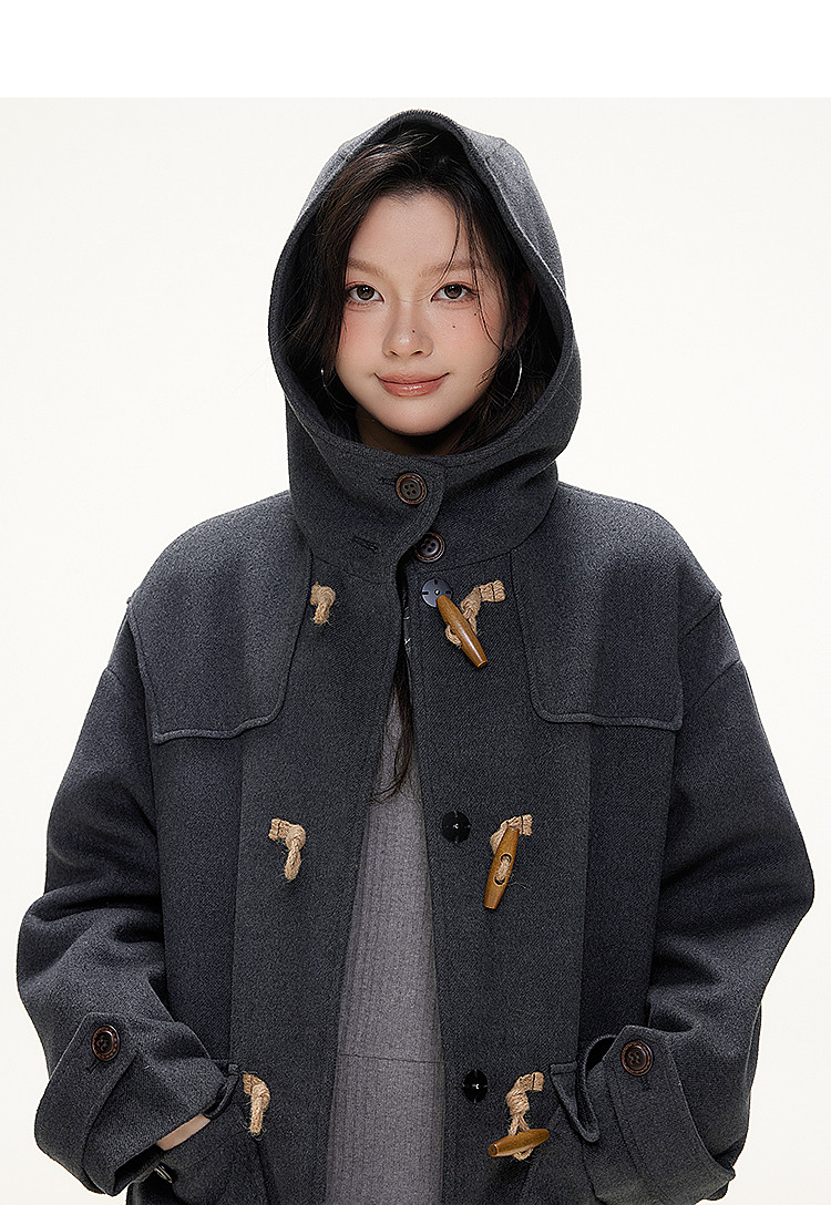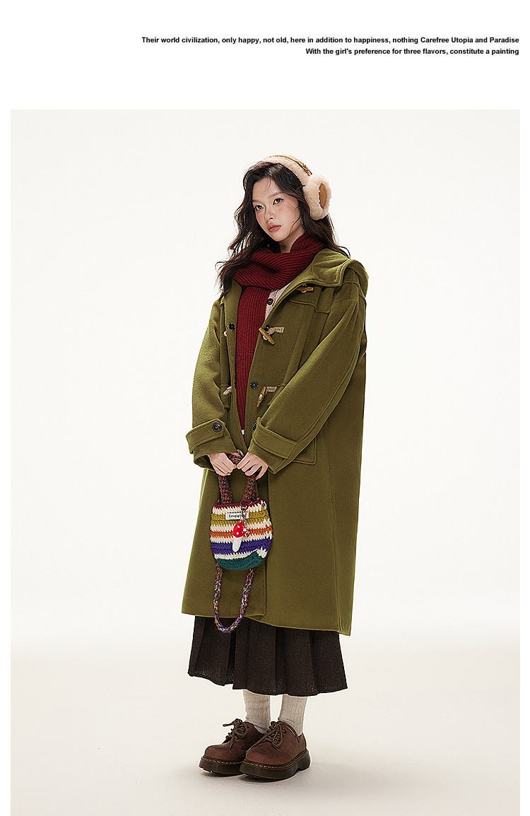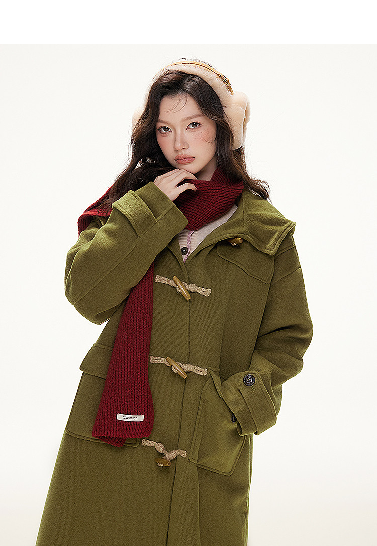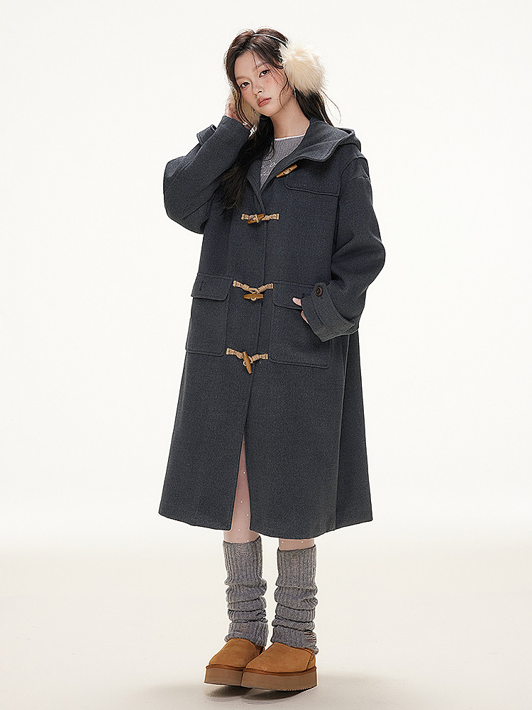 Imone Retro Horn Buckle Casual Medium and Long Woolen Jacket