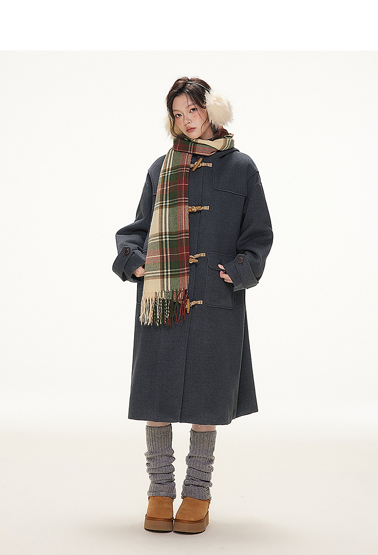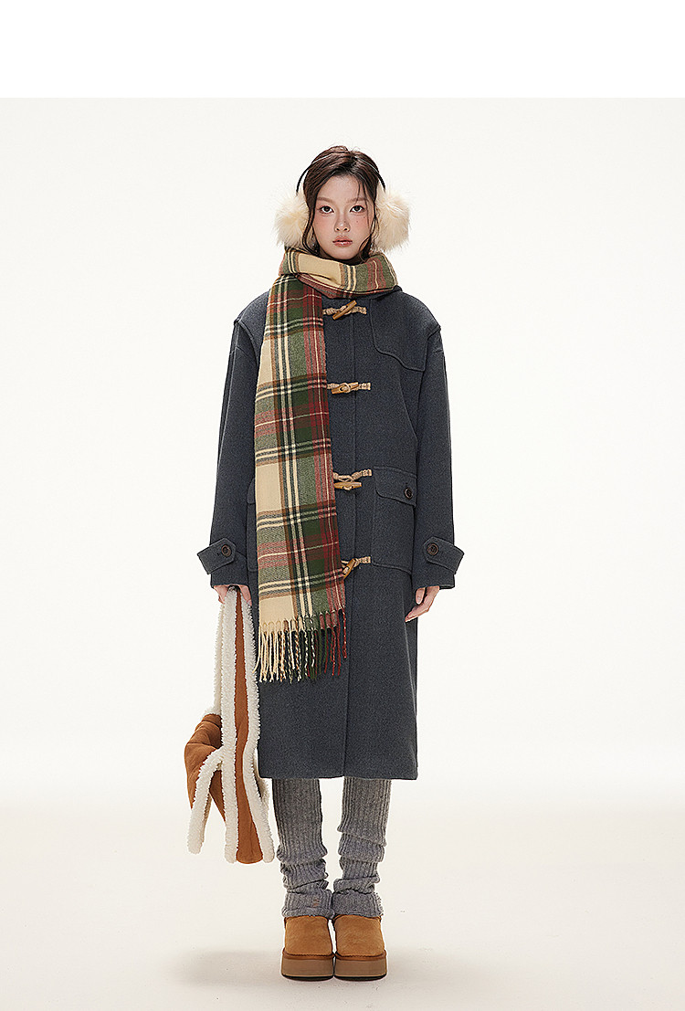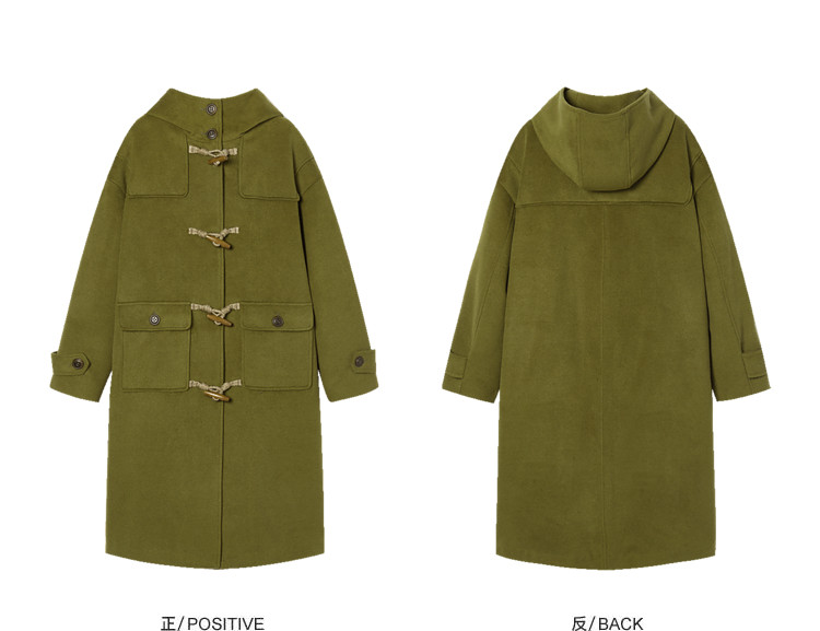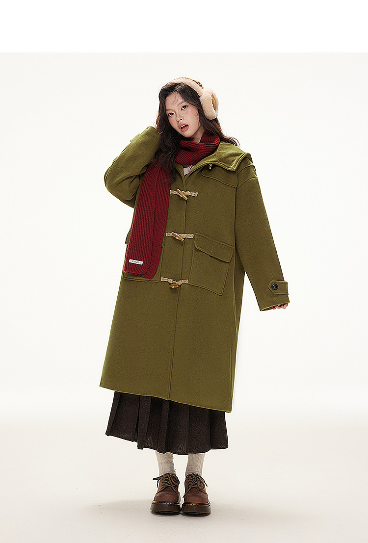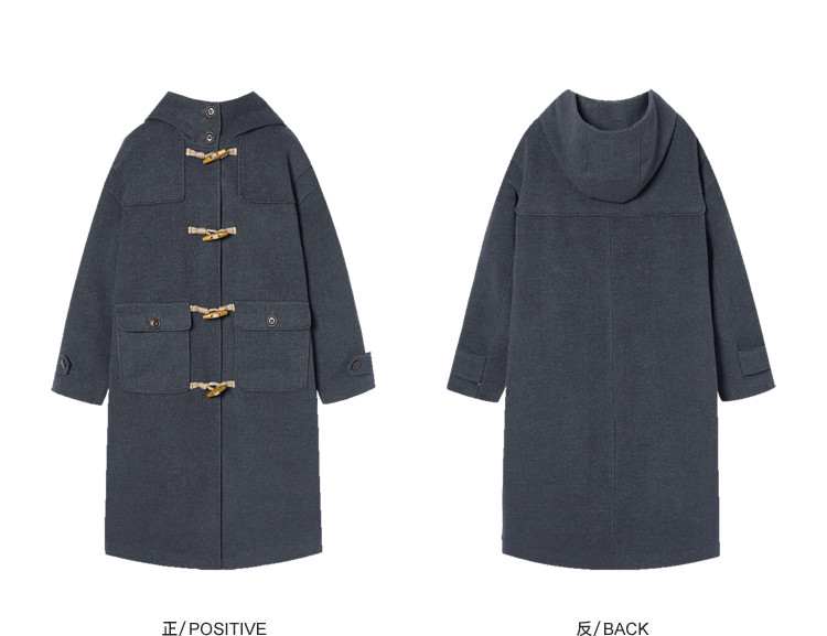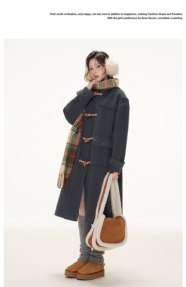 Imone Retro Horn Buckle Casual Medium and Long Woolen Jacket