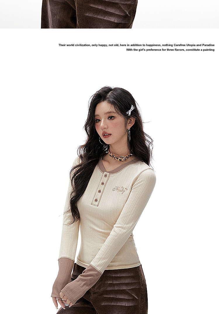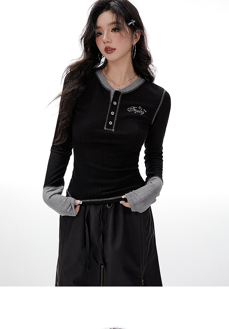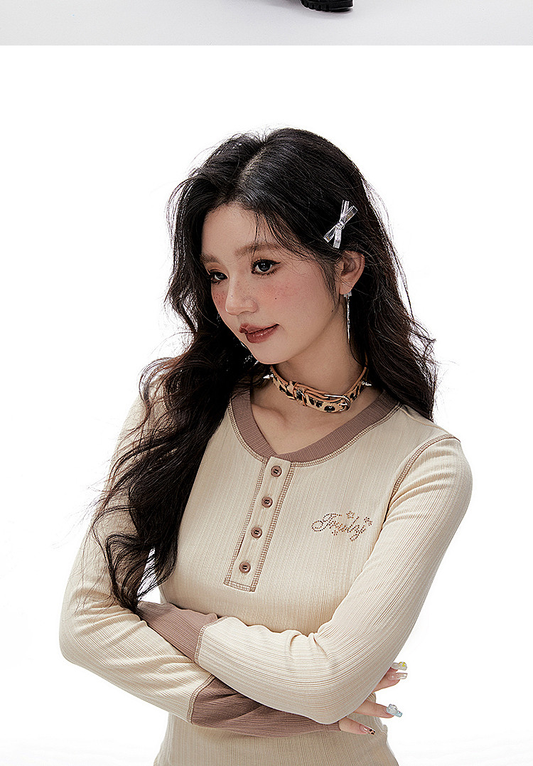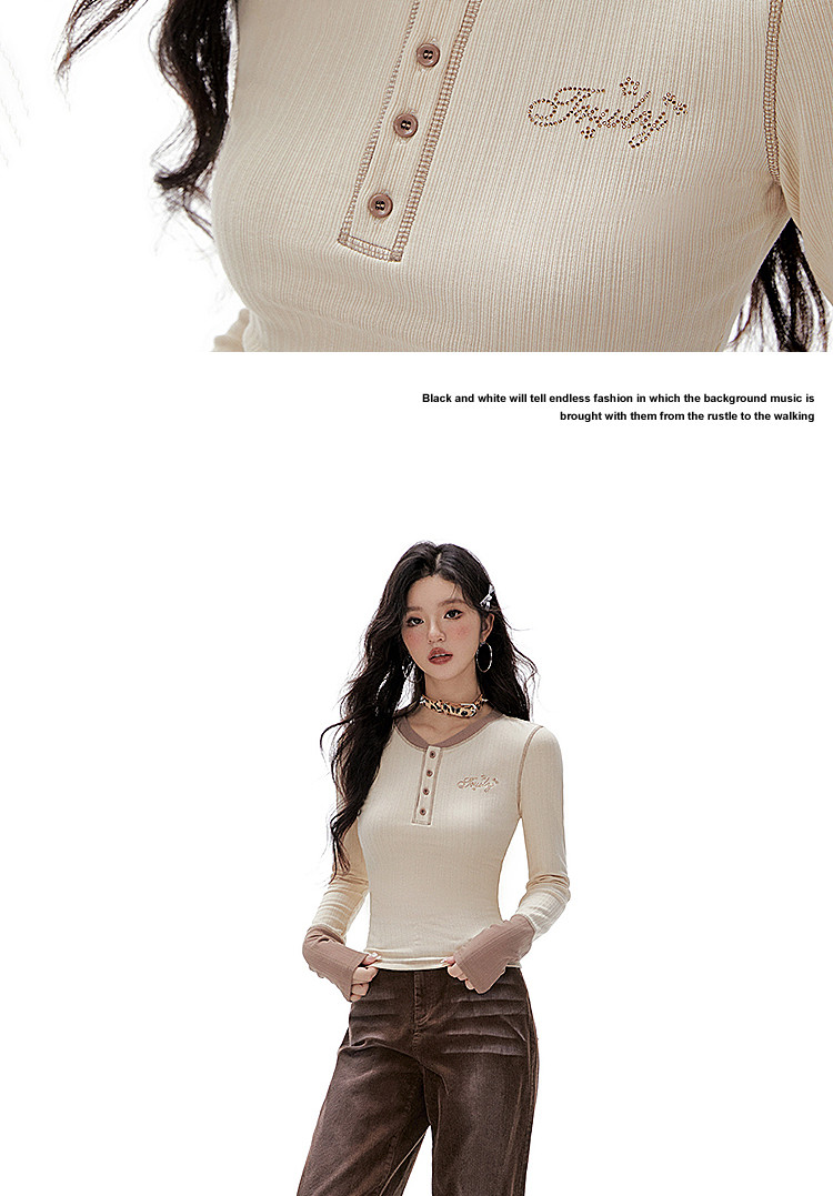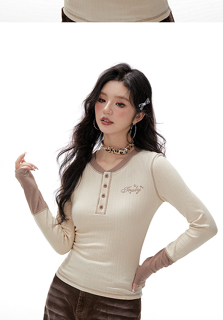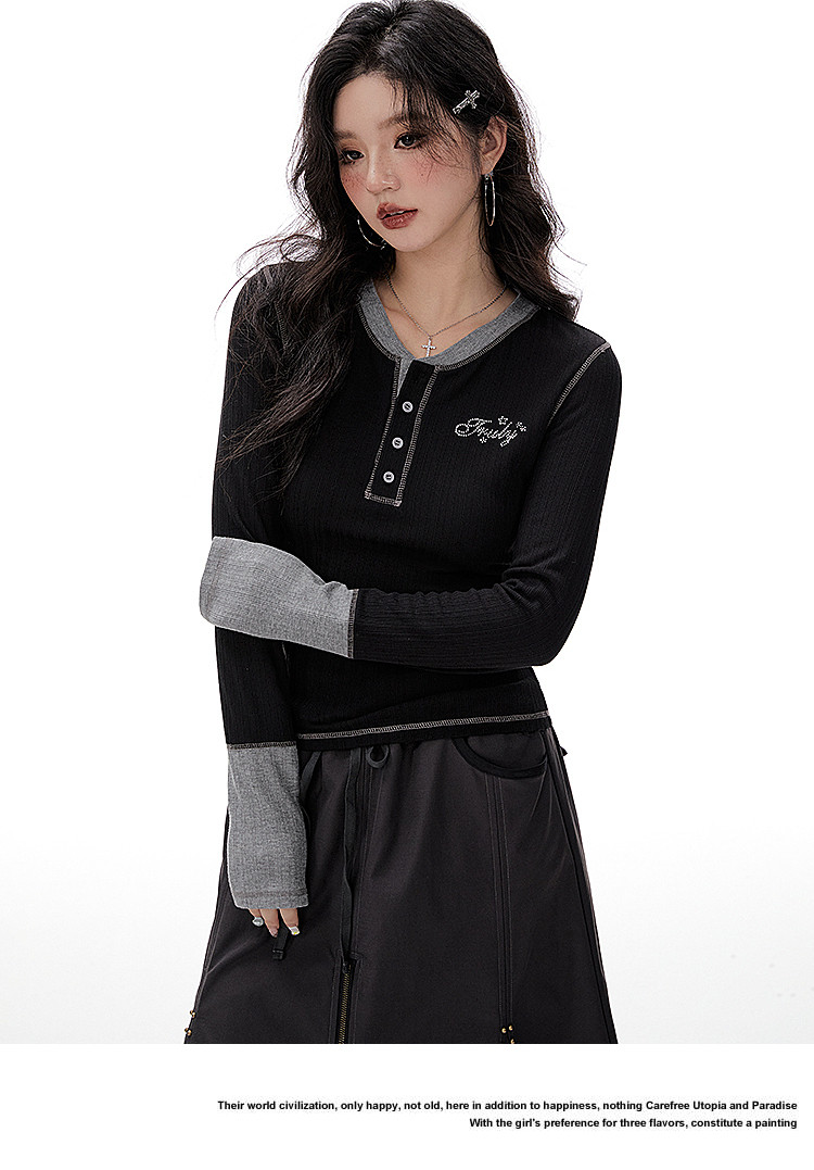 Imone Retro Letter Hot Diamond Contrasting Fake Two Long Sleeves