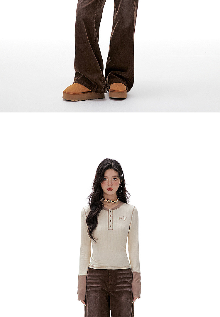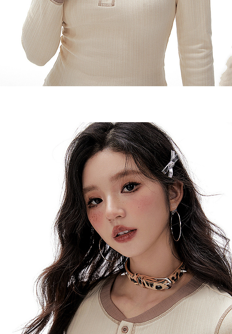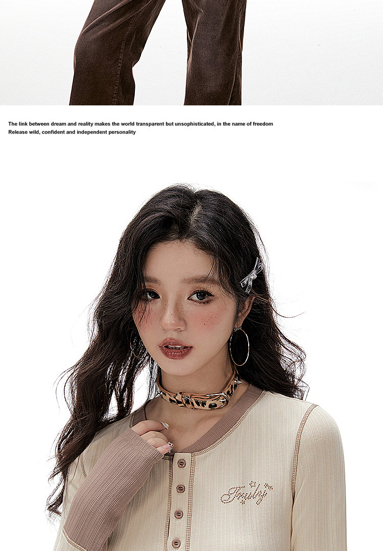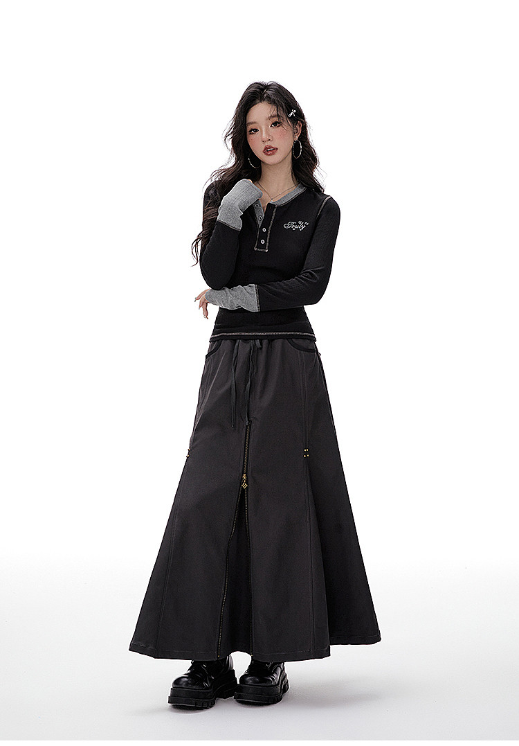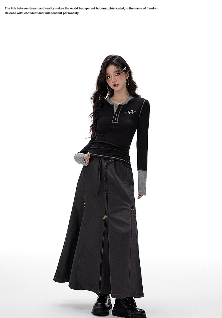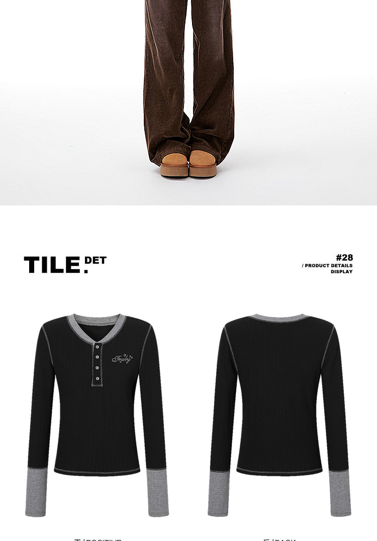 Imone Retro Letter Hot Diamond Contrasting Fake Two Long Sleeves