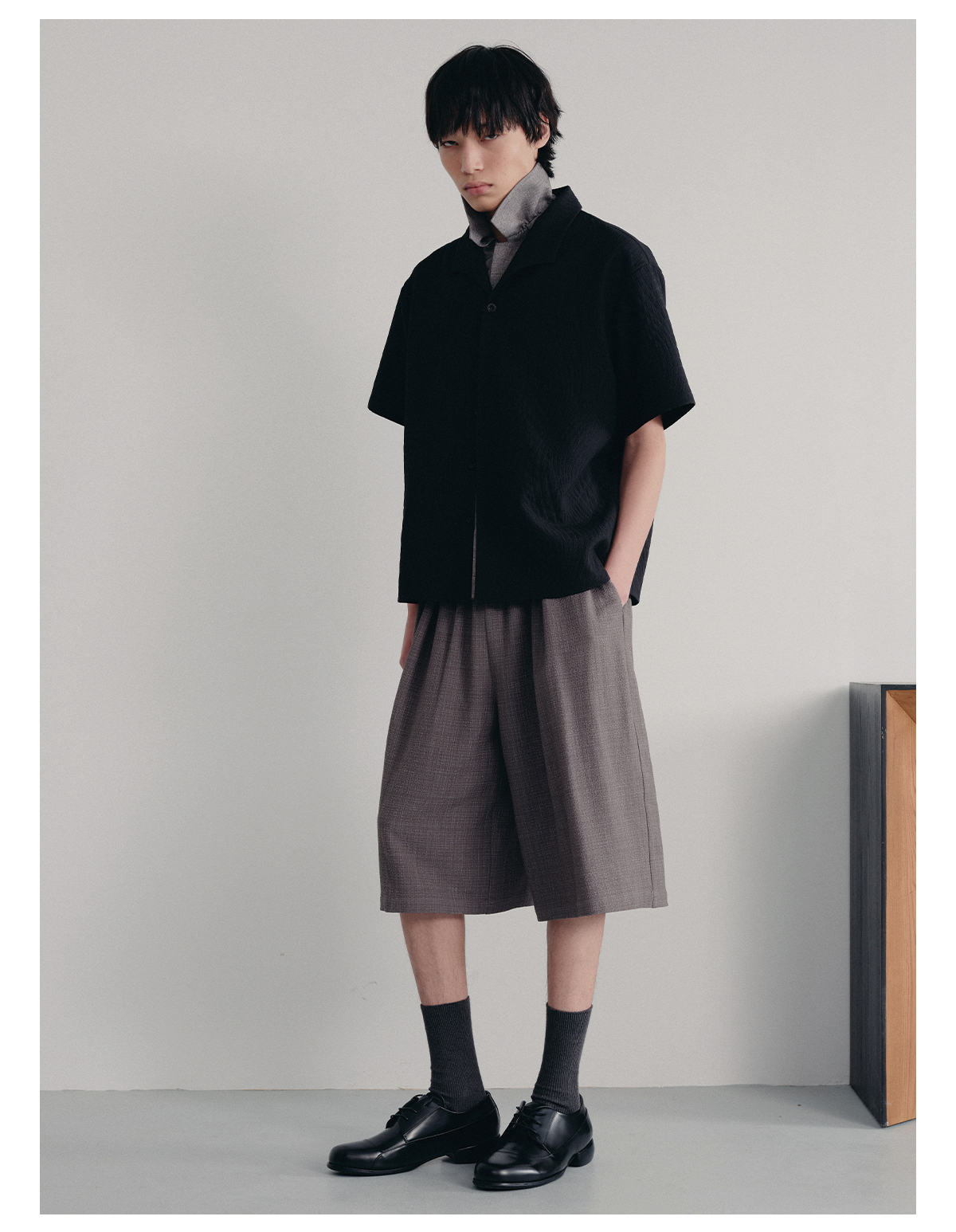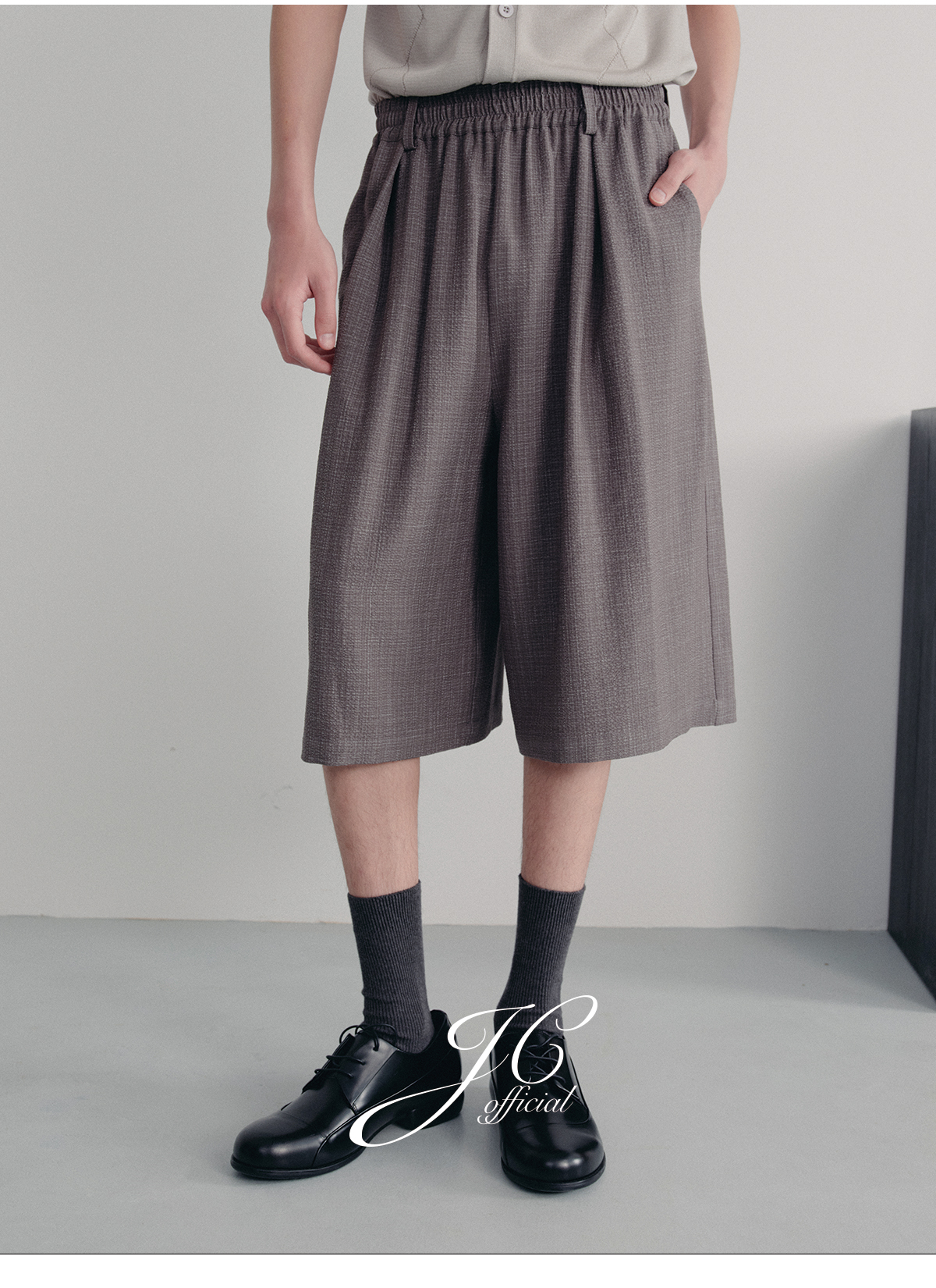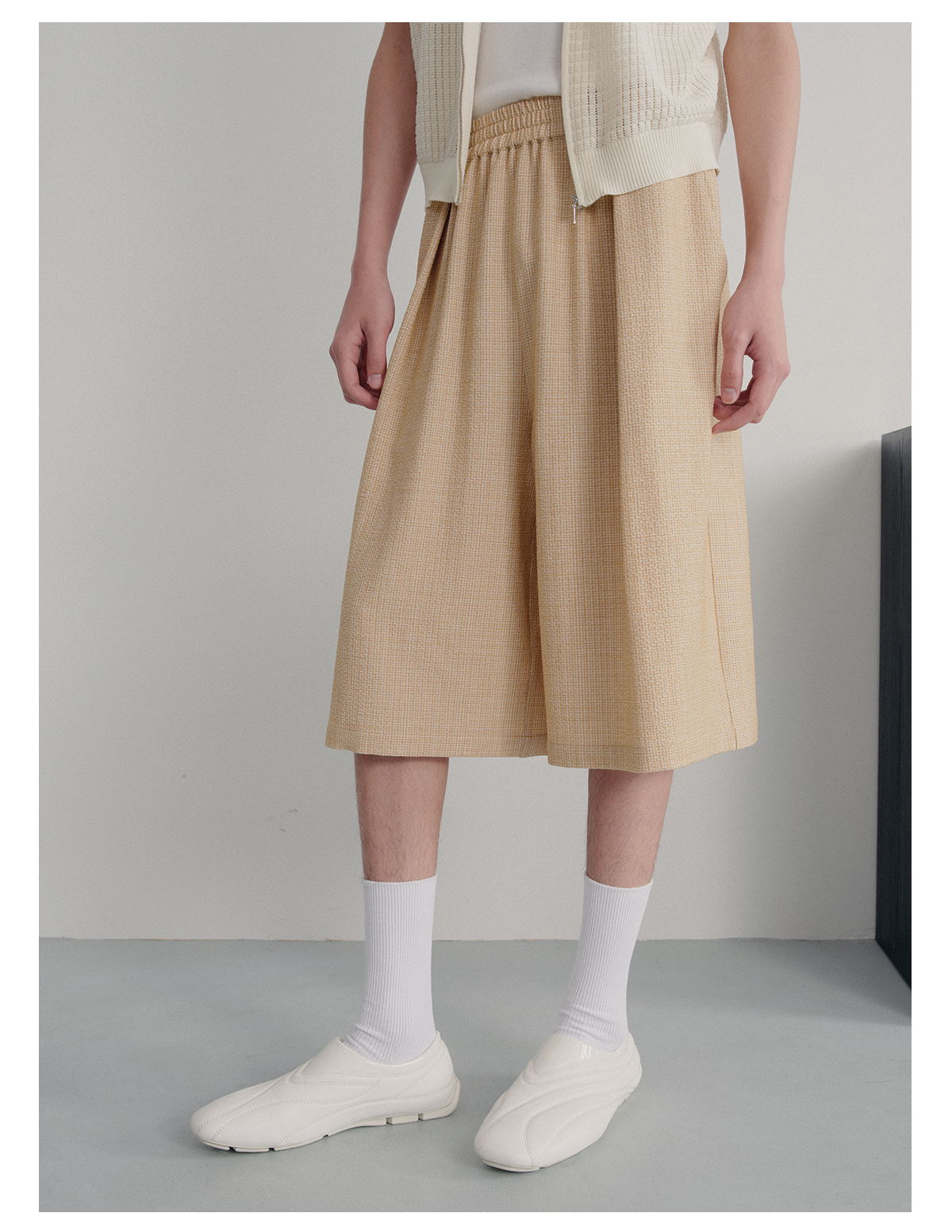 JCAESAR Bubble Pleated Plaid Casual Shorts