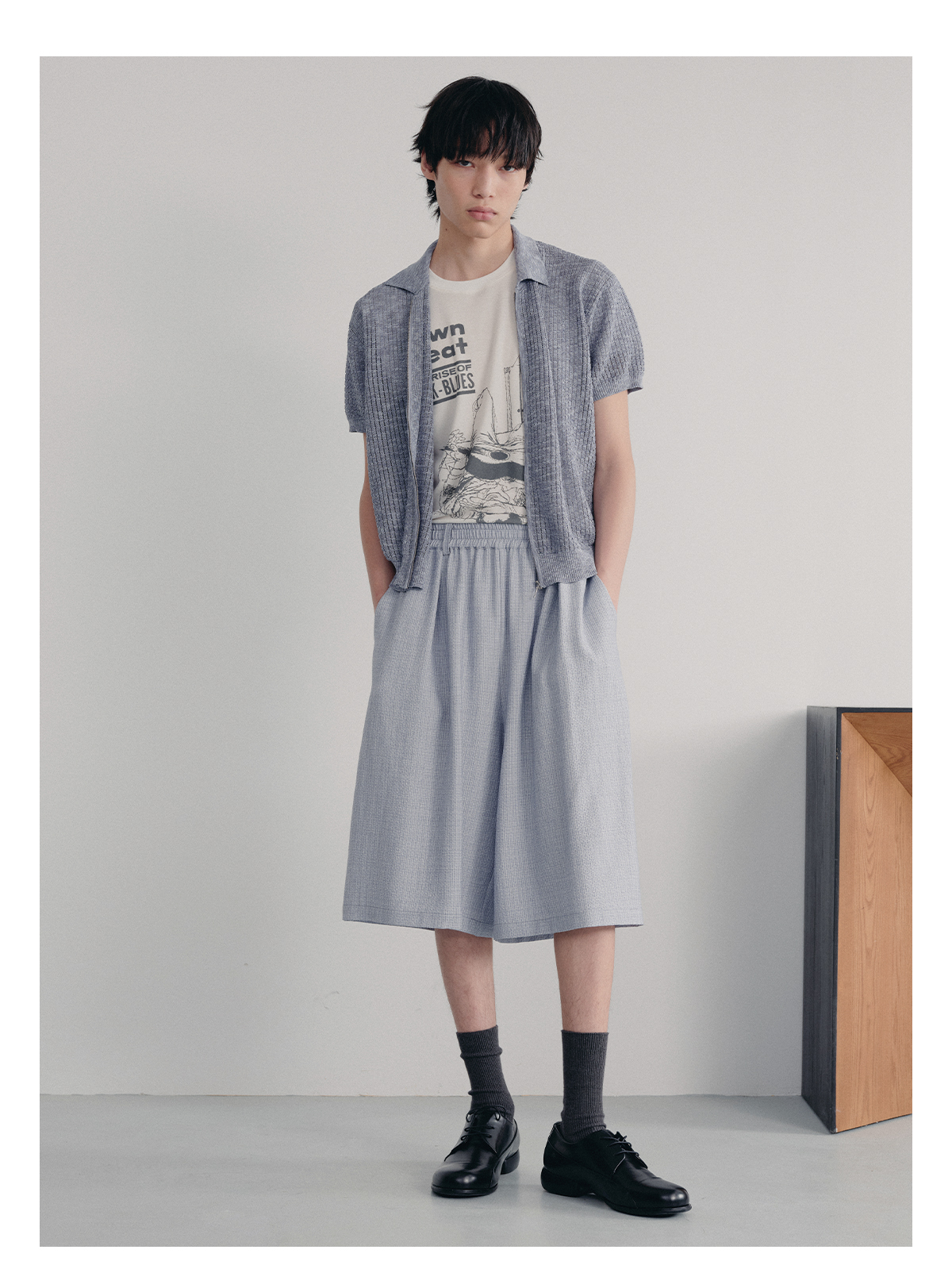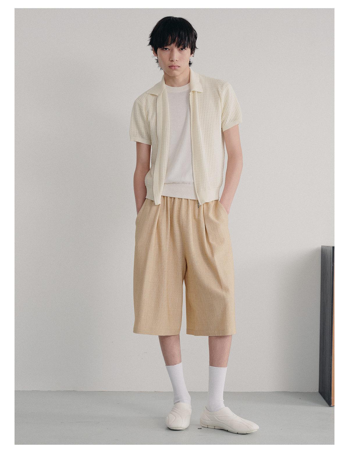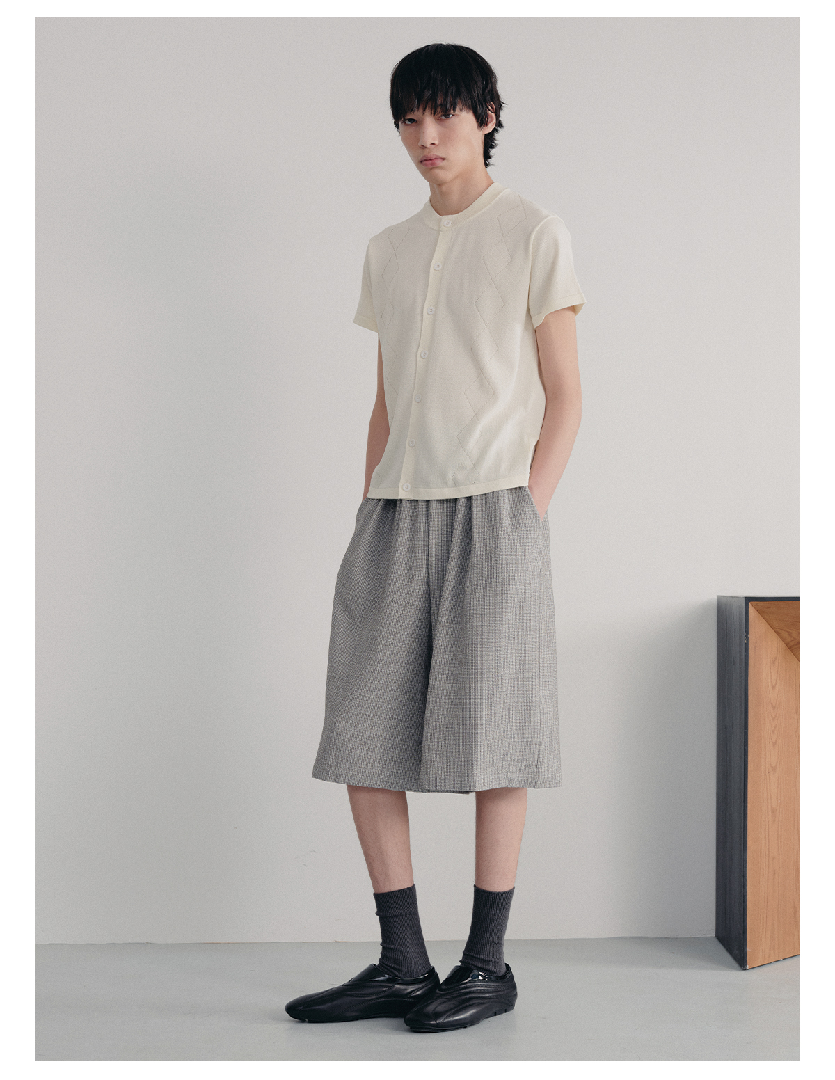 JCAESAR Bubble Pleated Plaid Casual Shorts