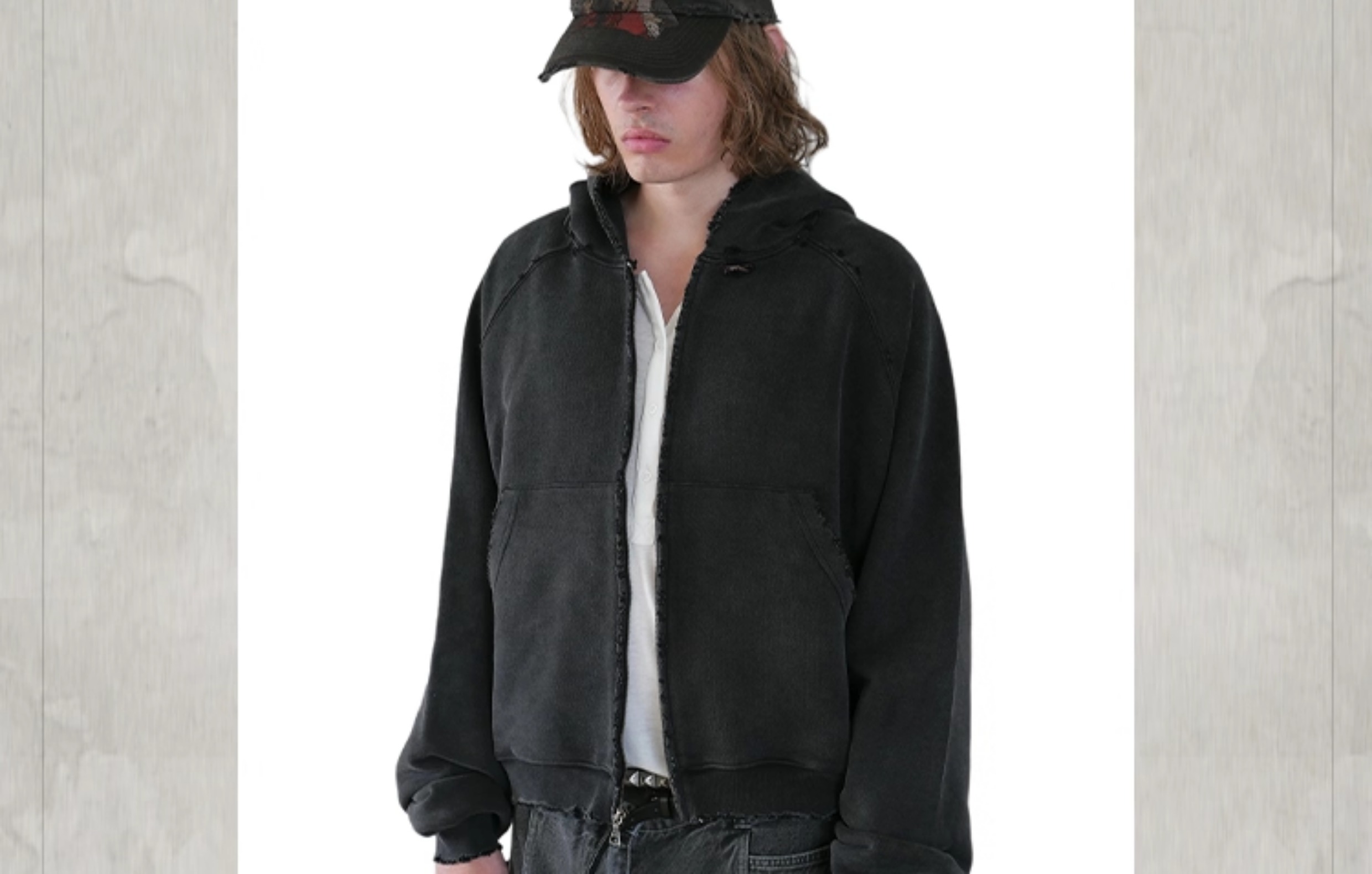 KONOOT Short and Wide Cut Cardigan Hooded Sweater
