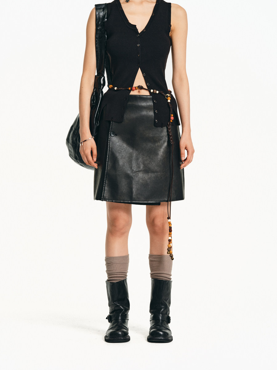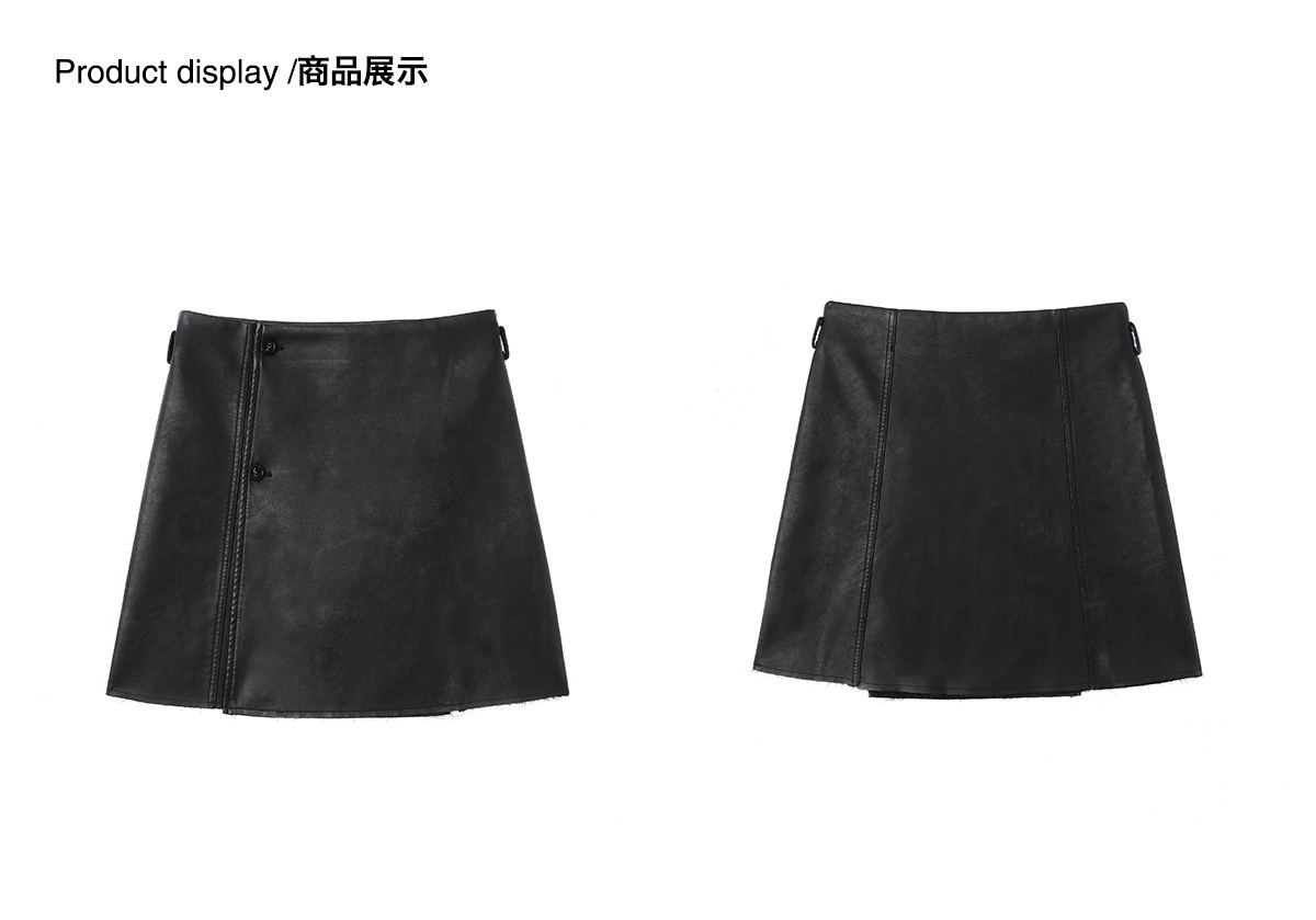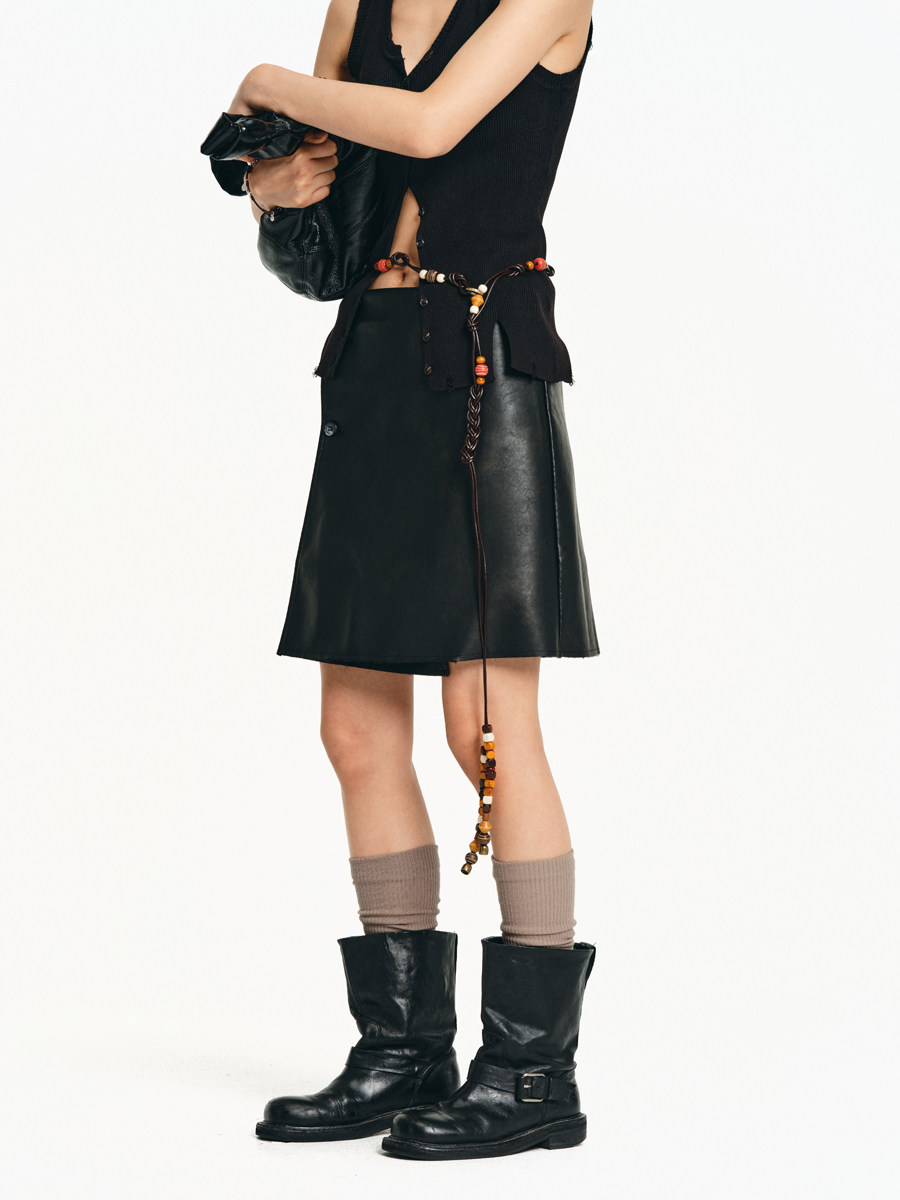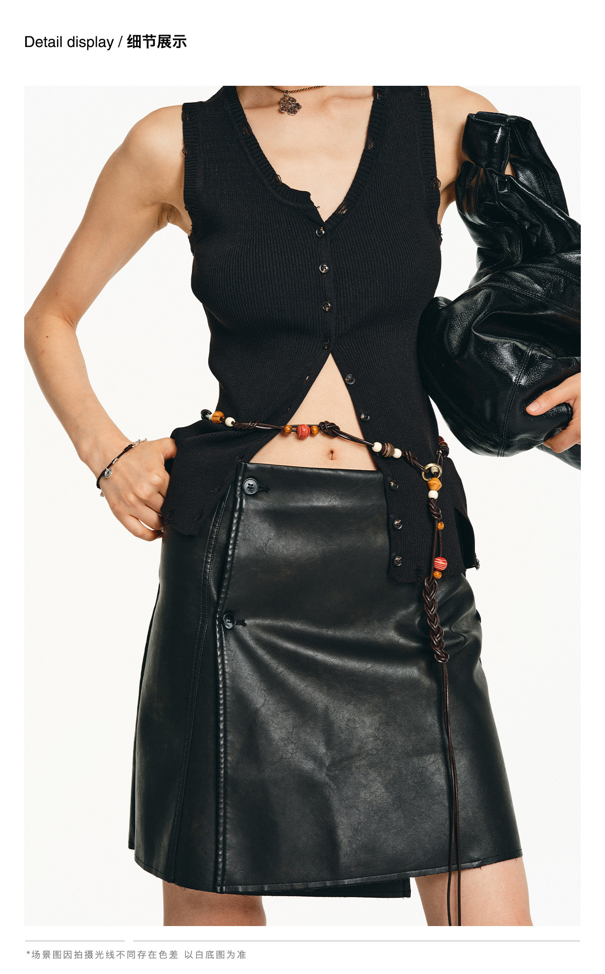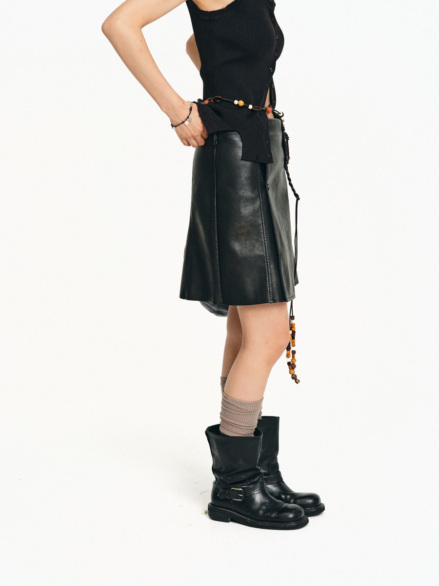 LIMPIDOCULUS Retro Feeling Old Polished Leather Skirt Short Skirt