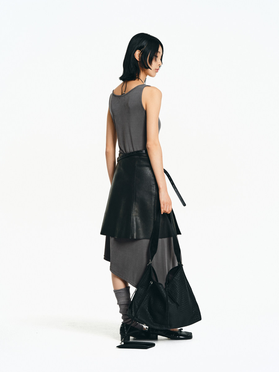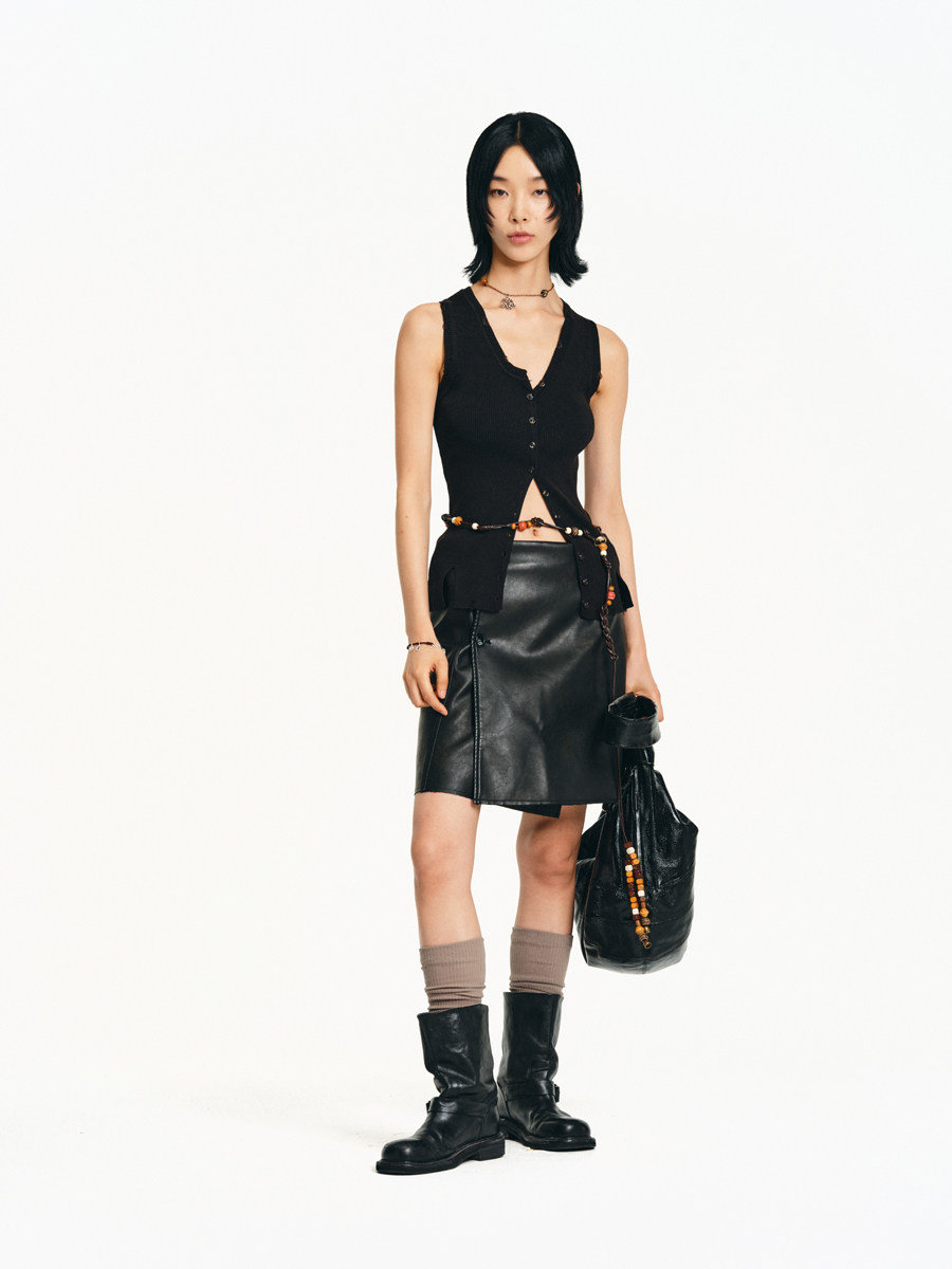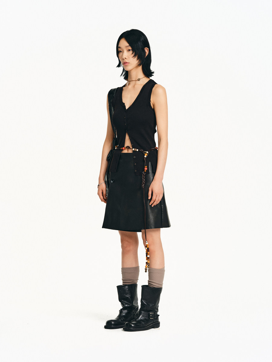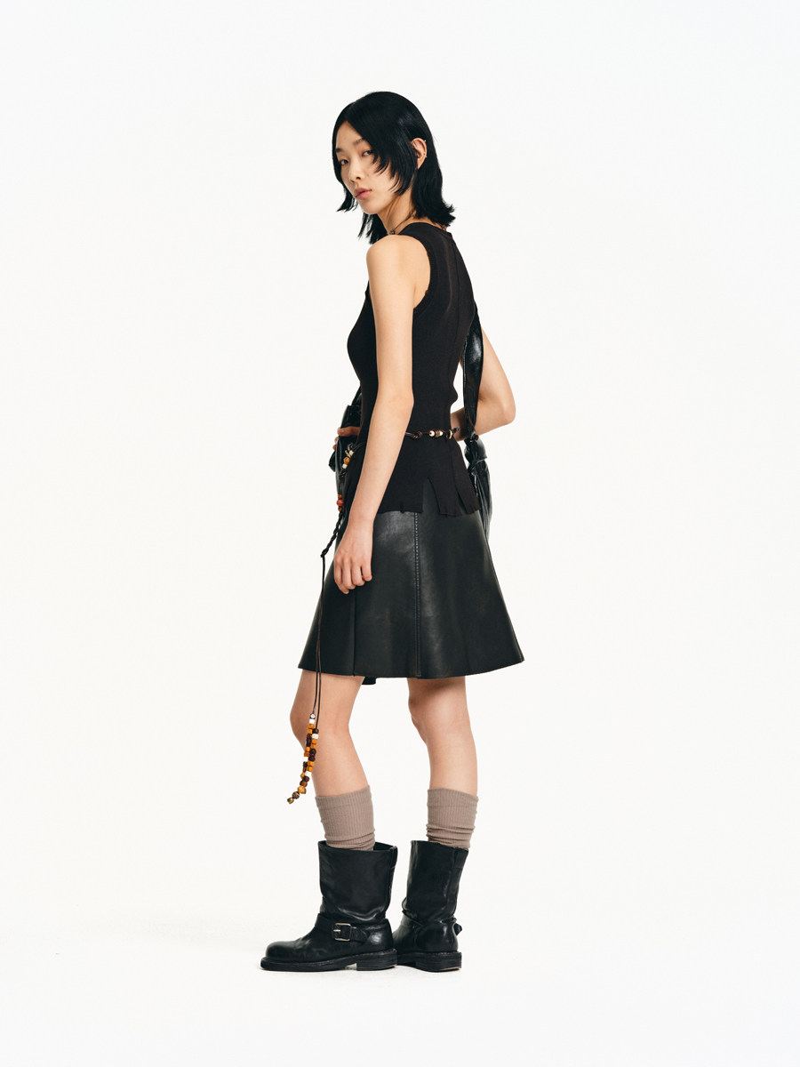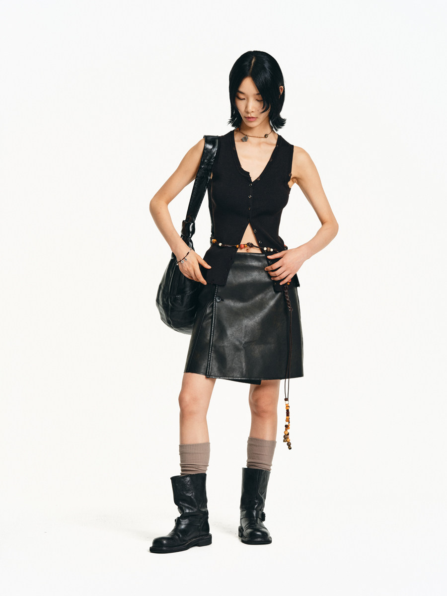LIMPIDOCULUS Retro Feeling Old Polished Leather Skirt Short Skirt
