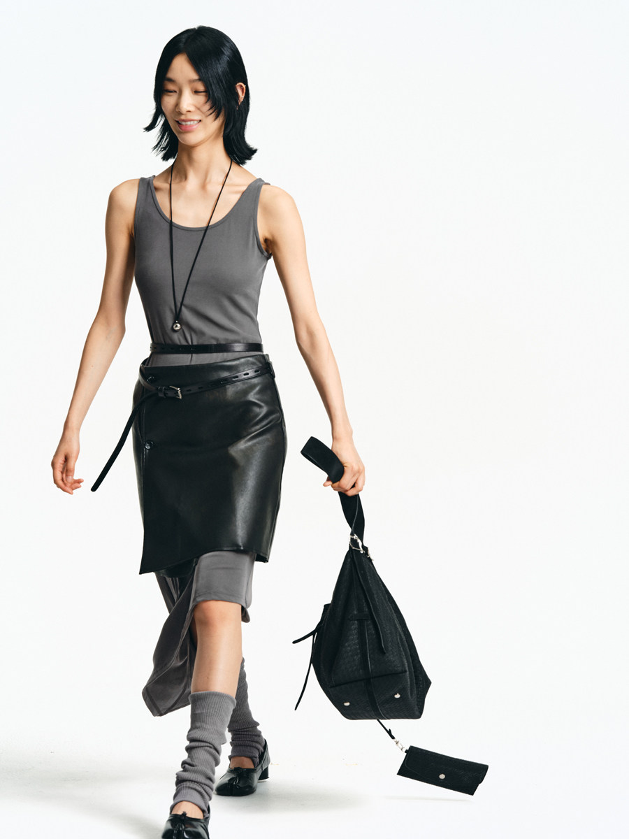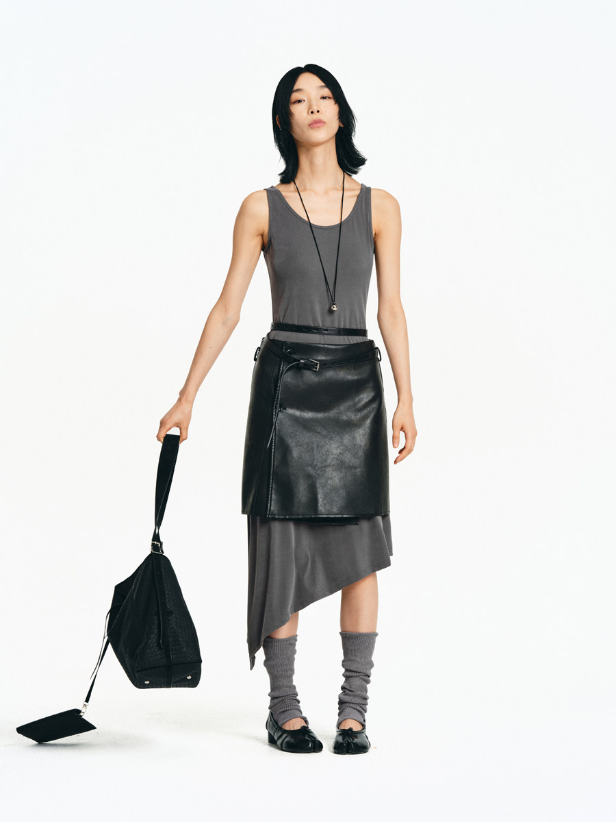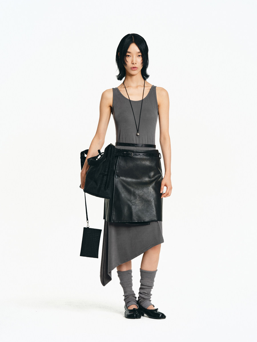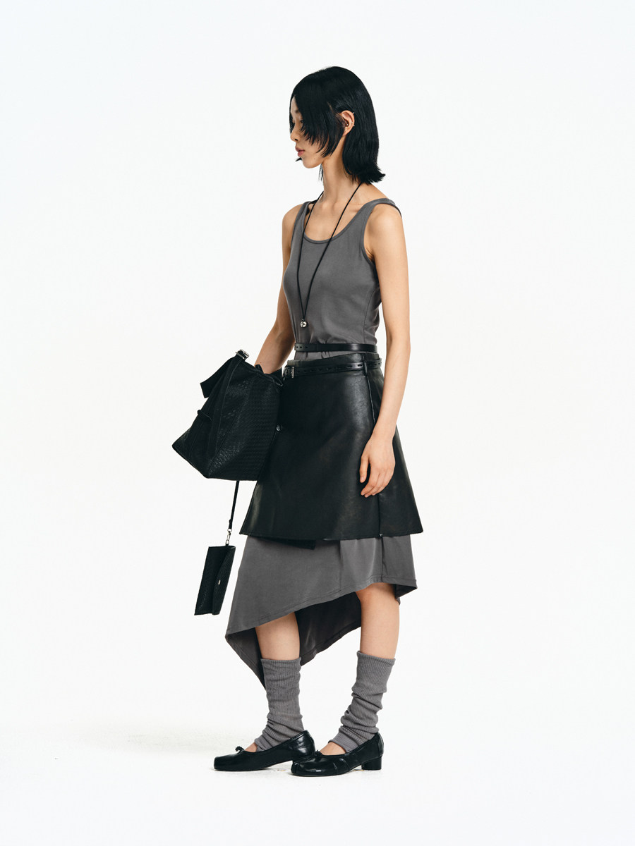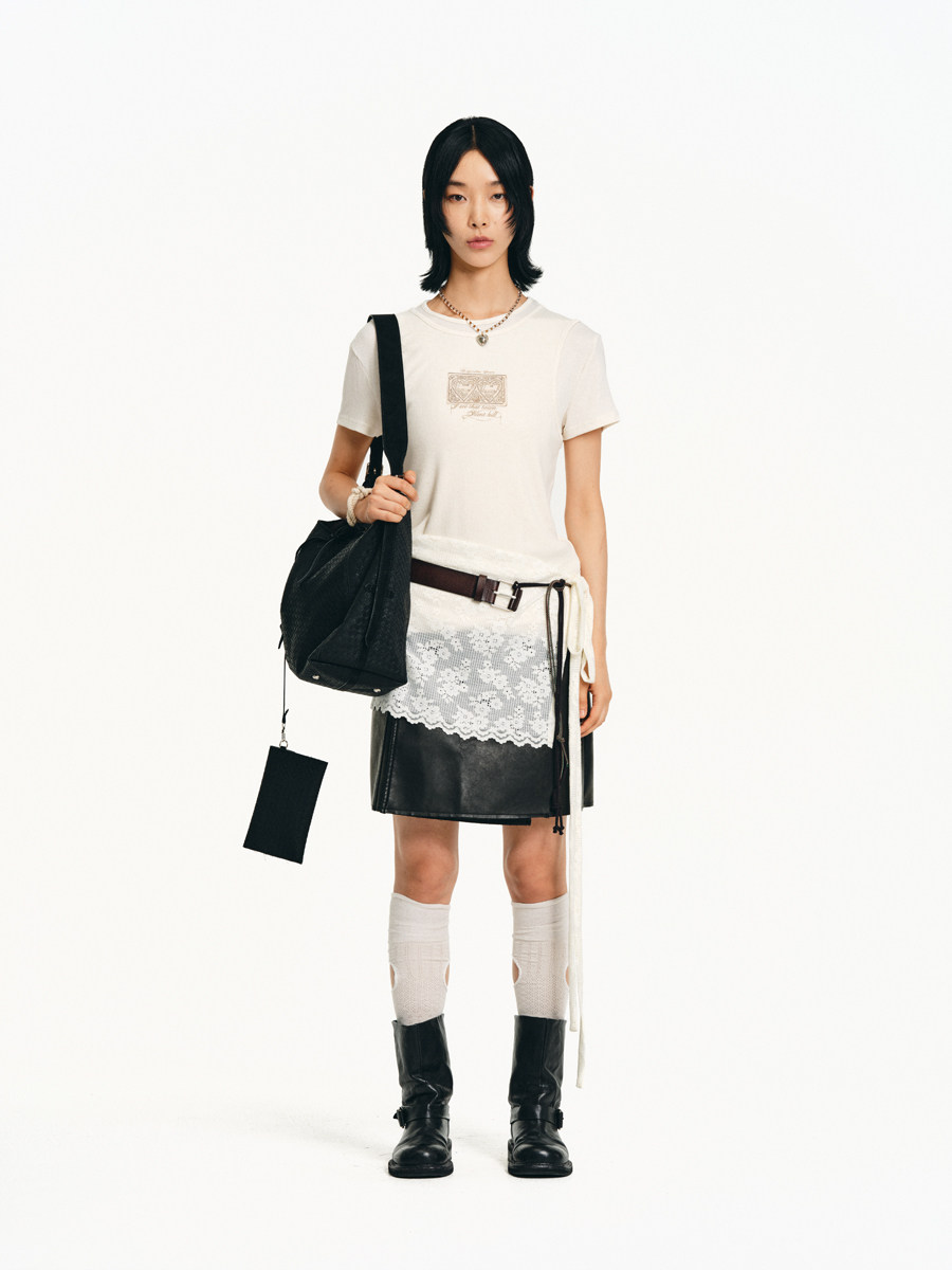 LIMPIDOCULUS Retro Feeling Old Polished Leather Skirt Short Skirt
