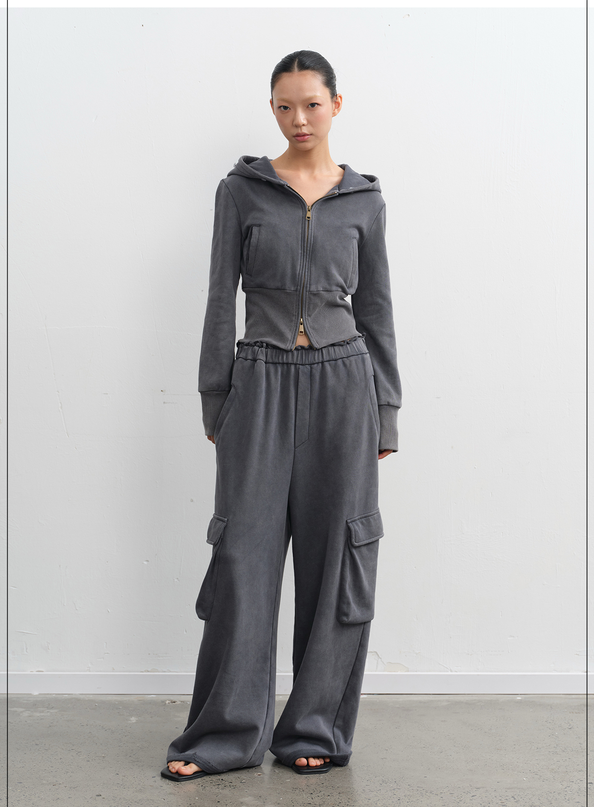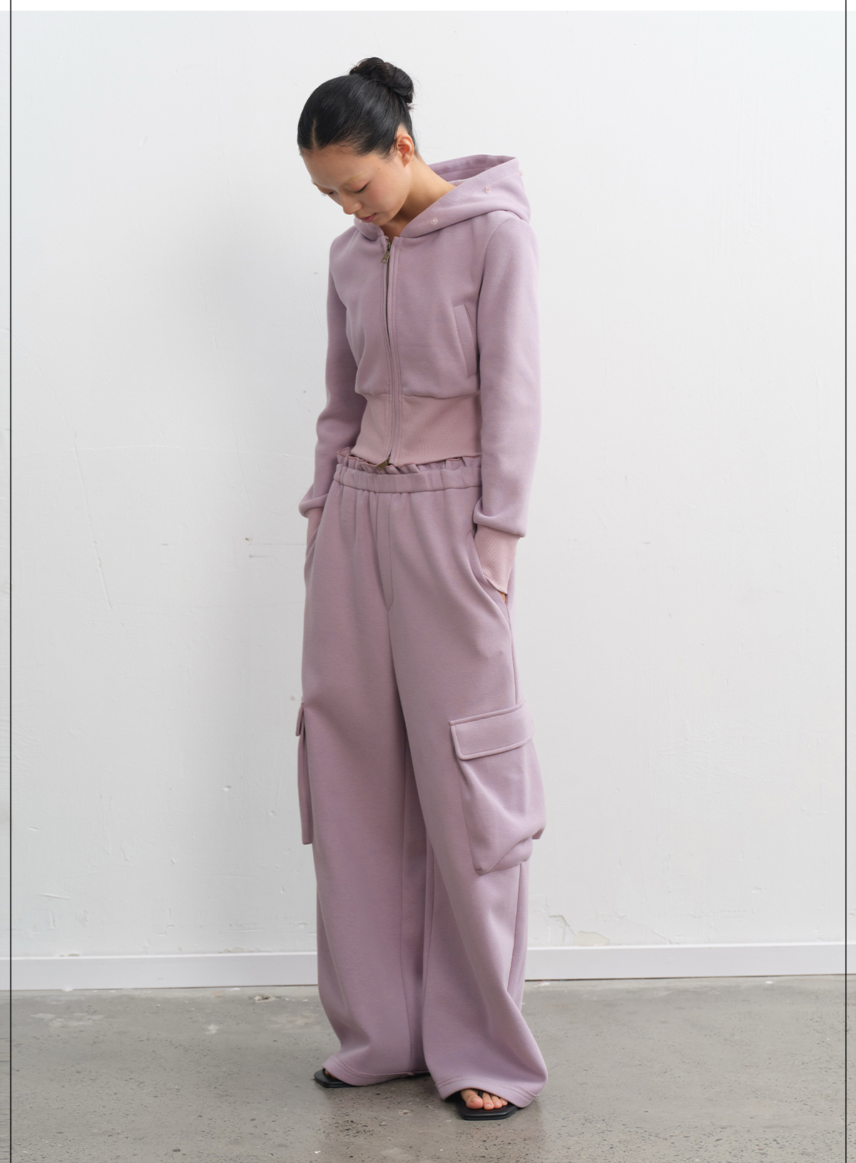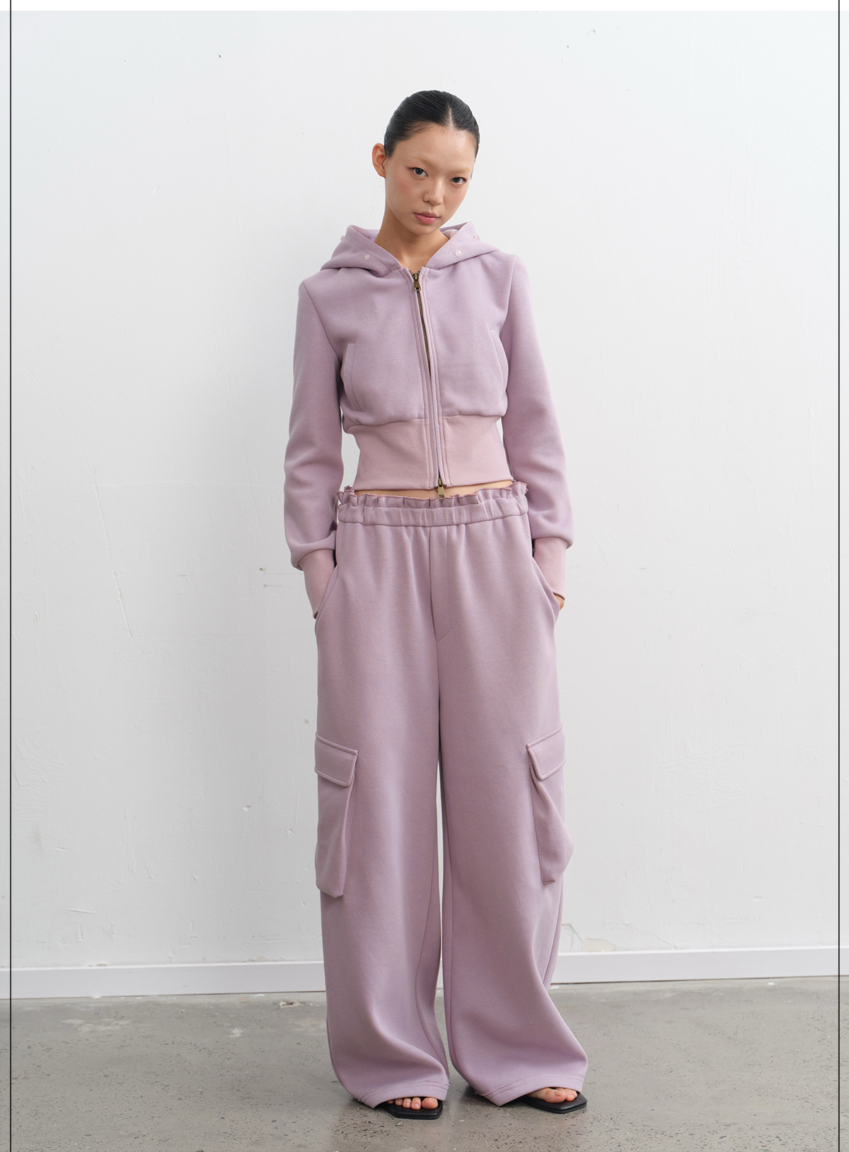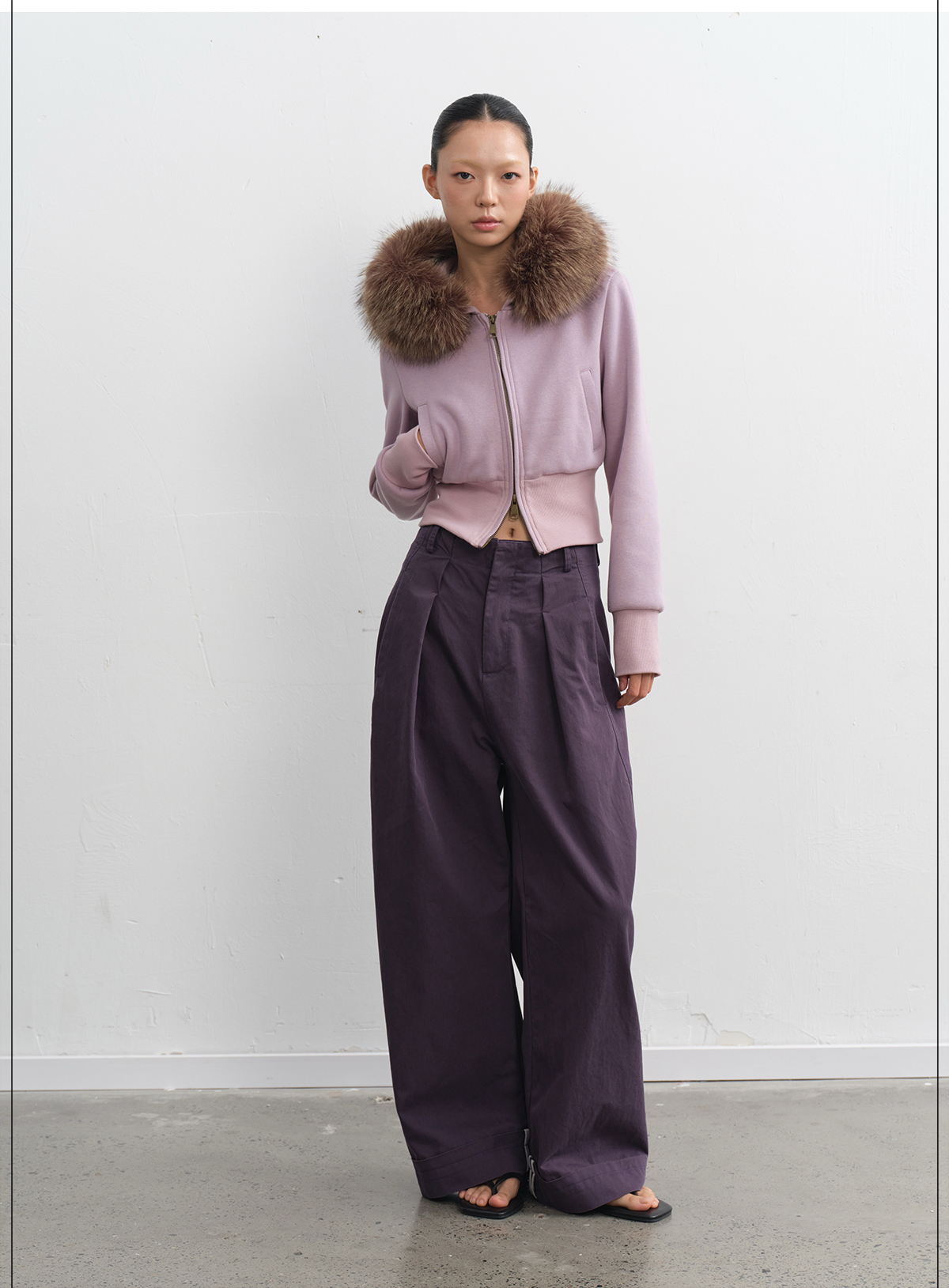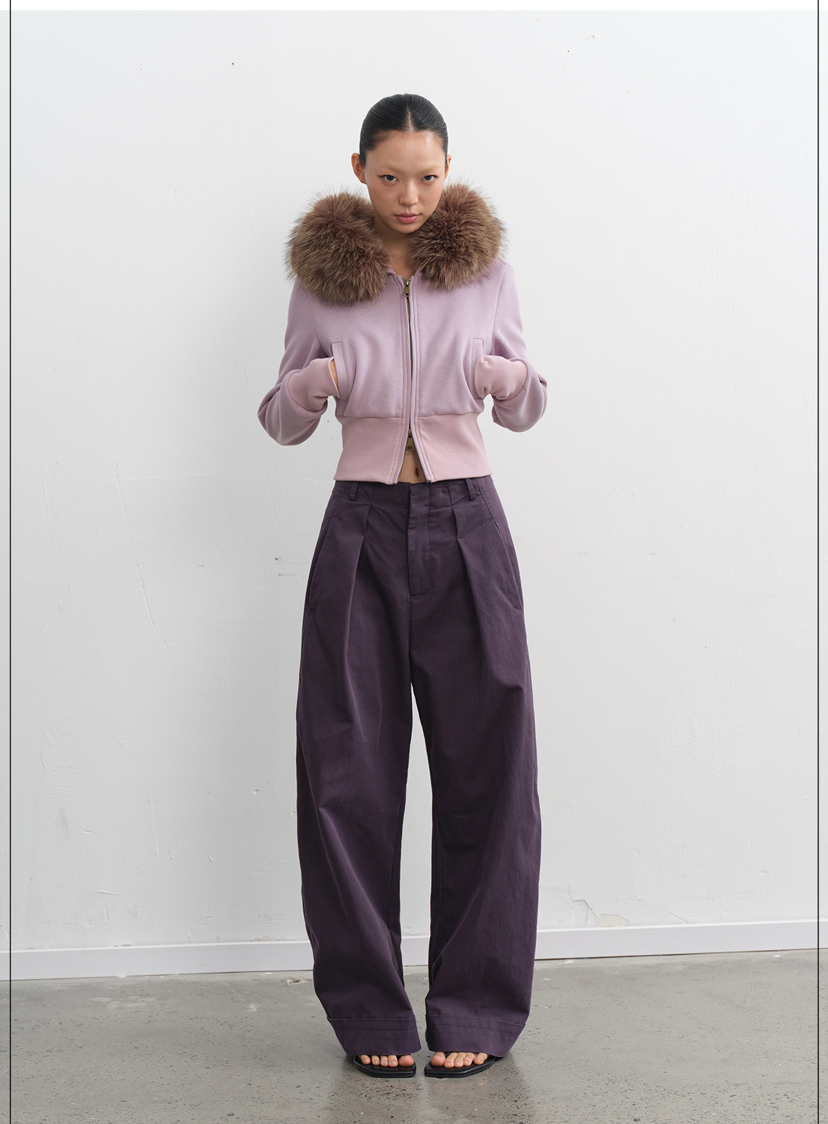 LINY LIBERTY Removable Fur Collar Short Sweater Casual Sweatpants Set