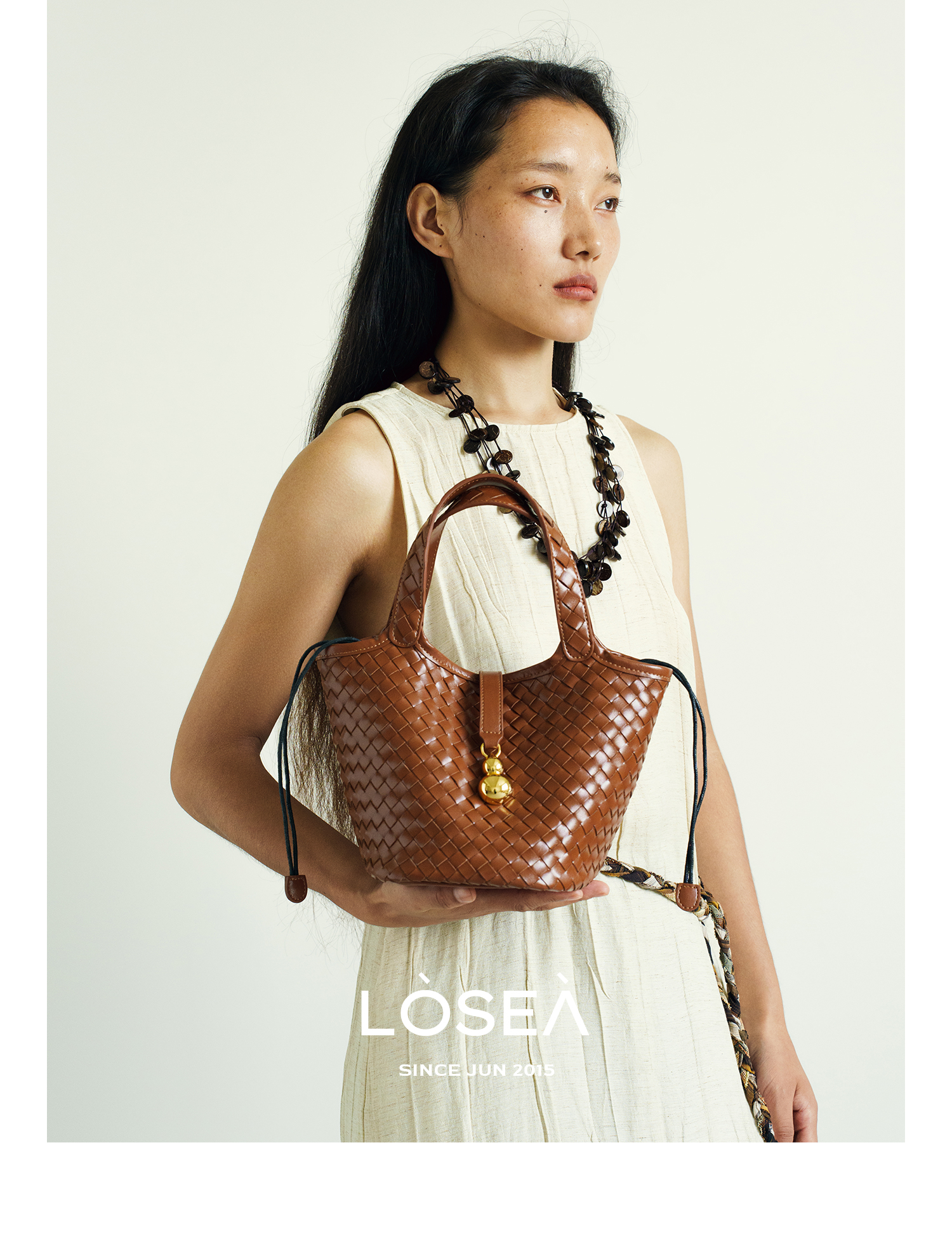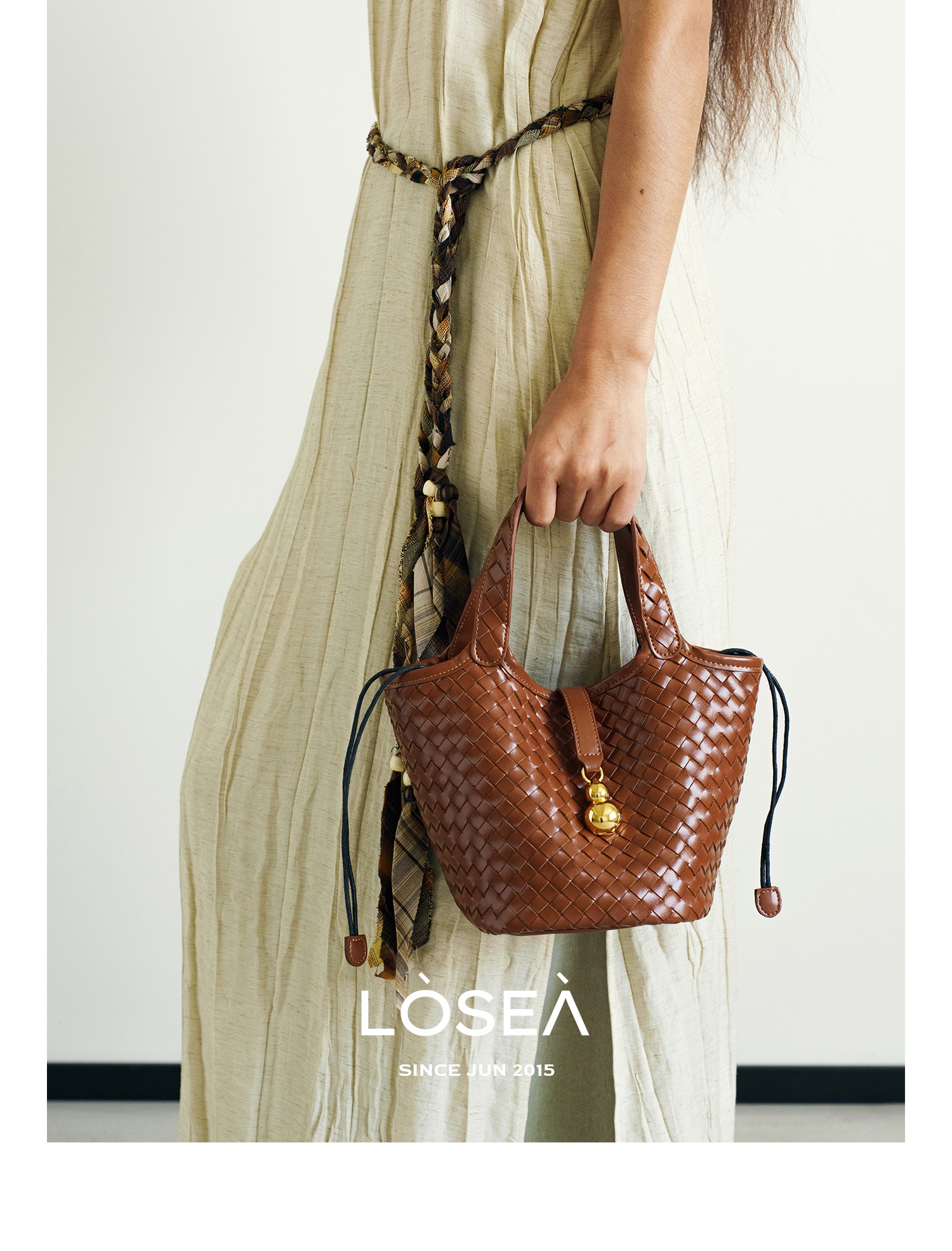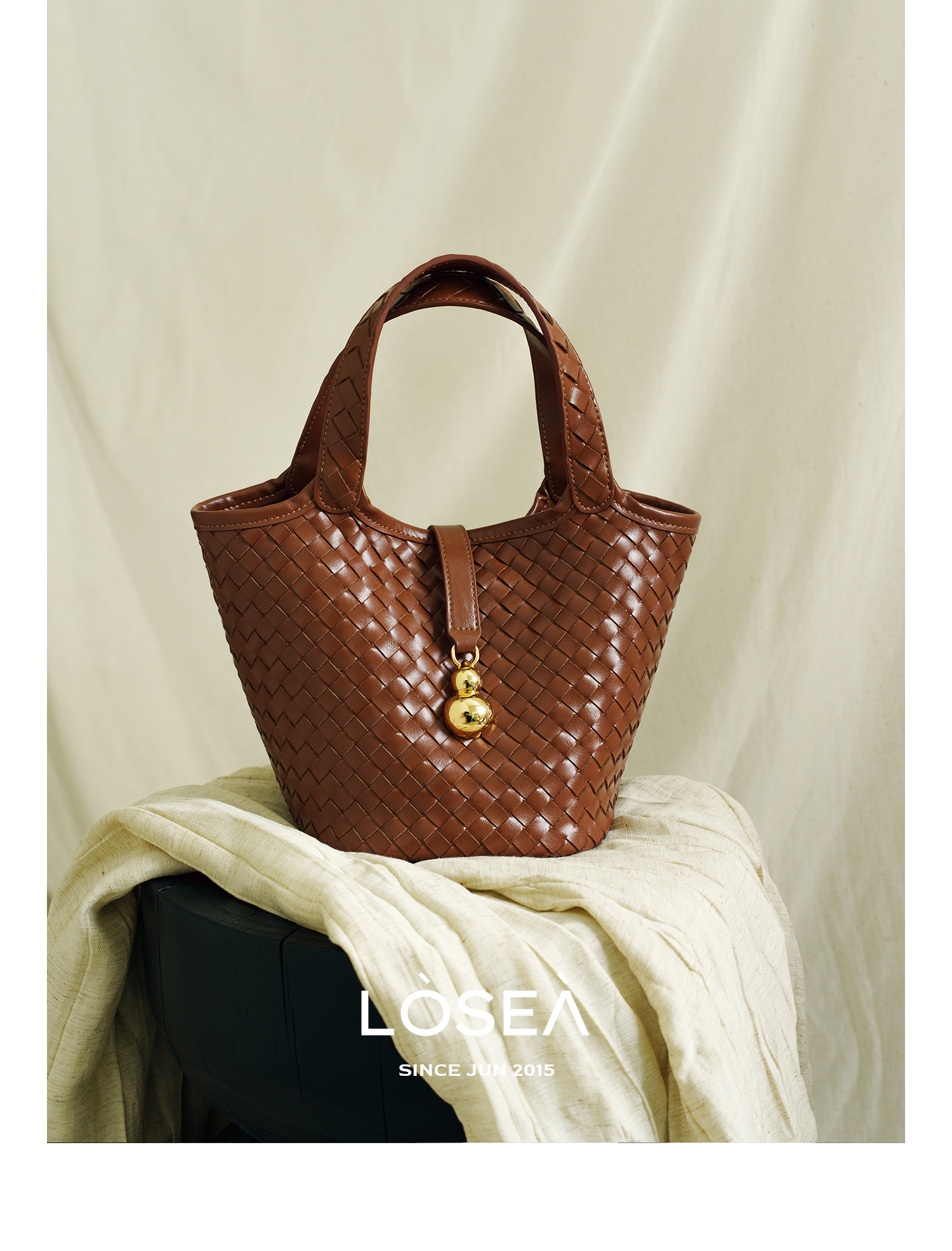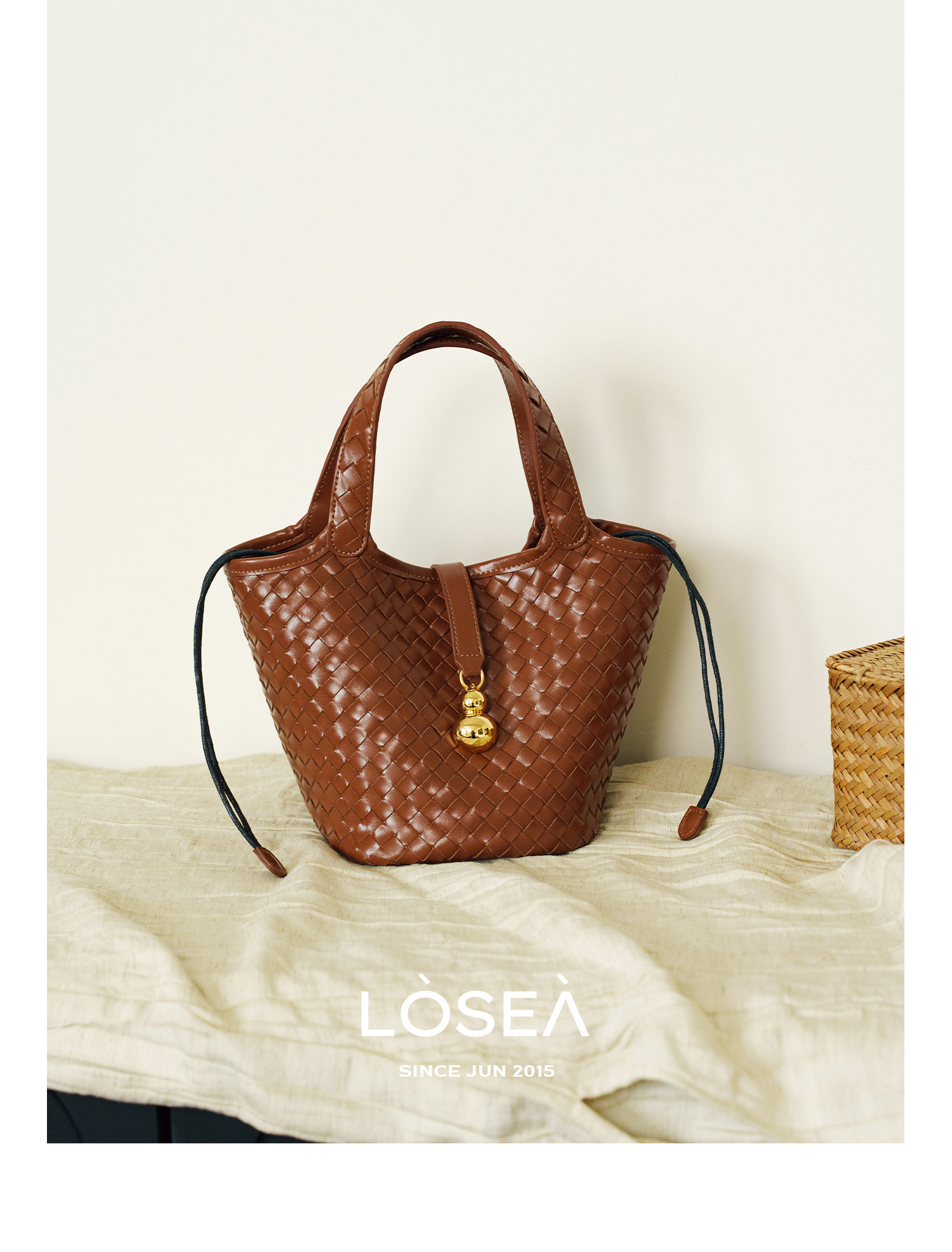 LOSEA Leather Hand-woven Gourd Vegetable Basket Shoulder Bag