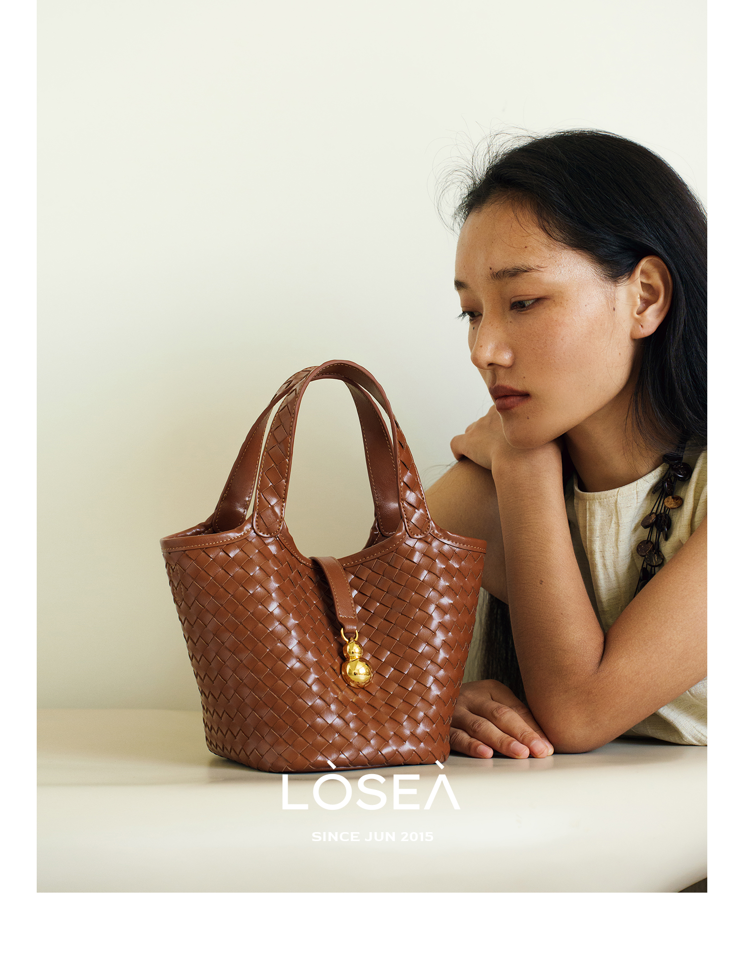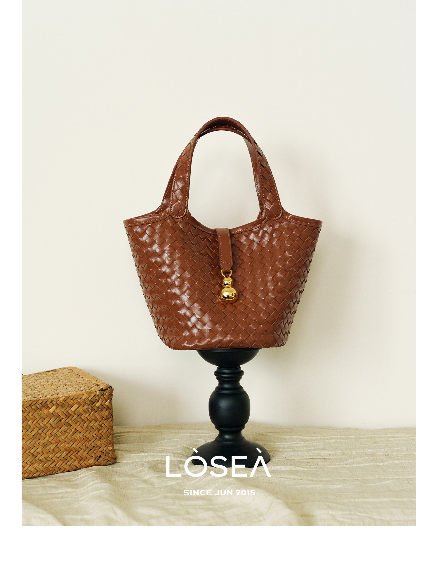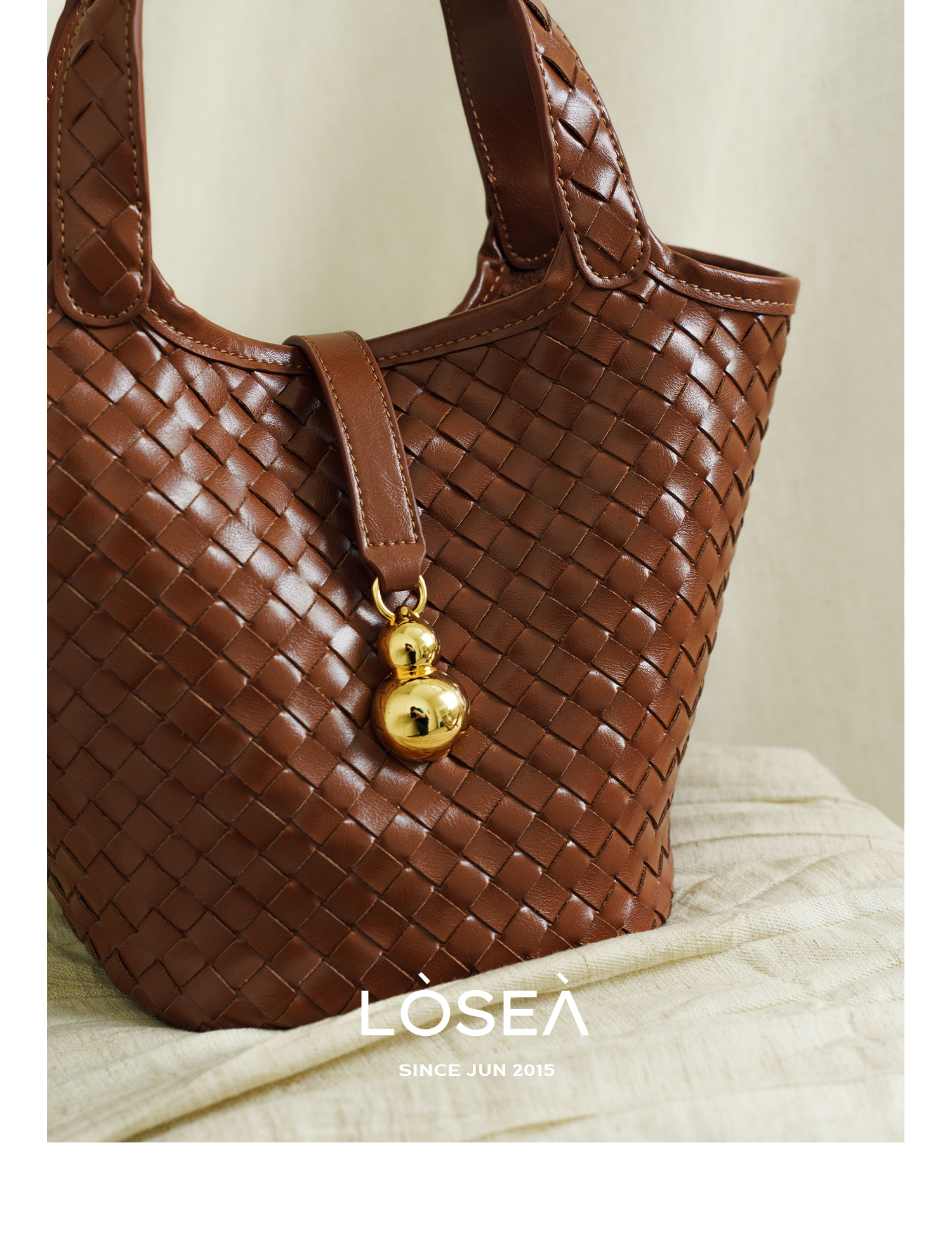 LOSEA Leather Hand-woven Gourd Vegetable Basket Shoulder Bag