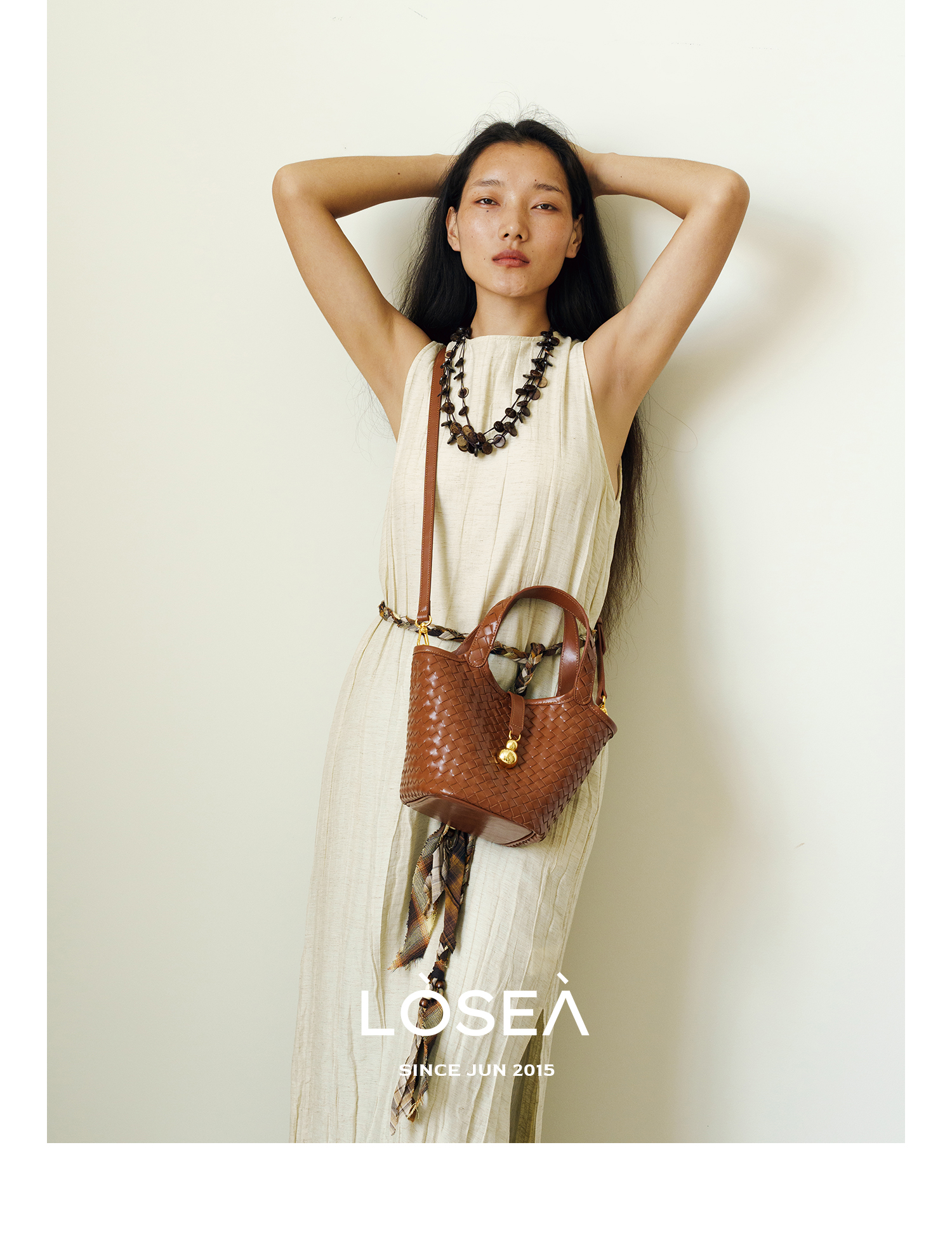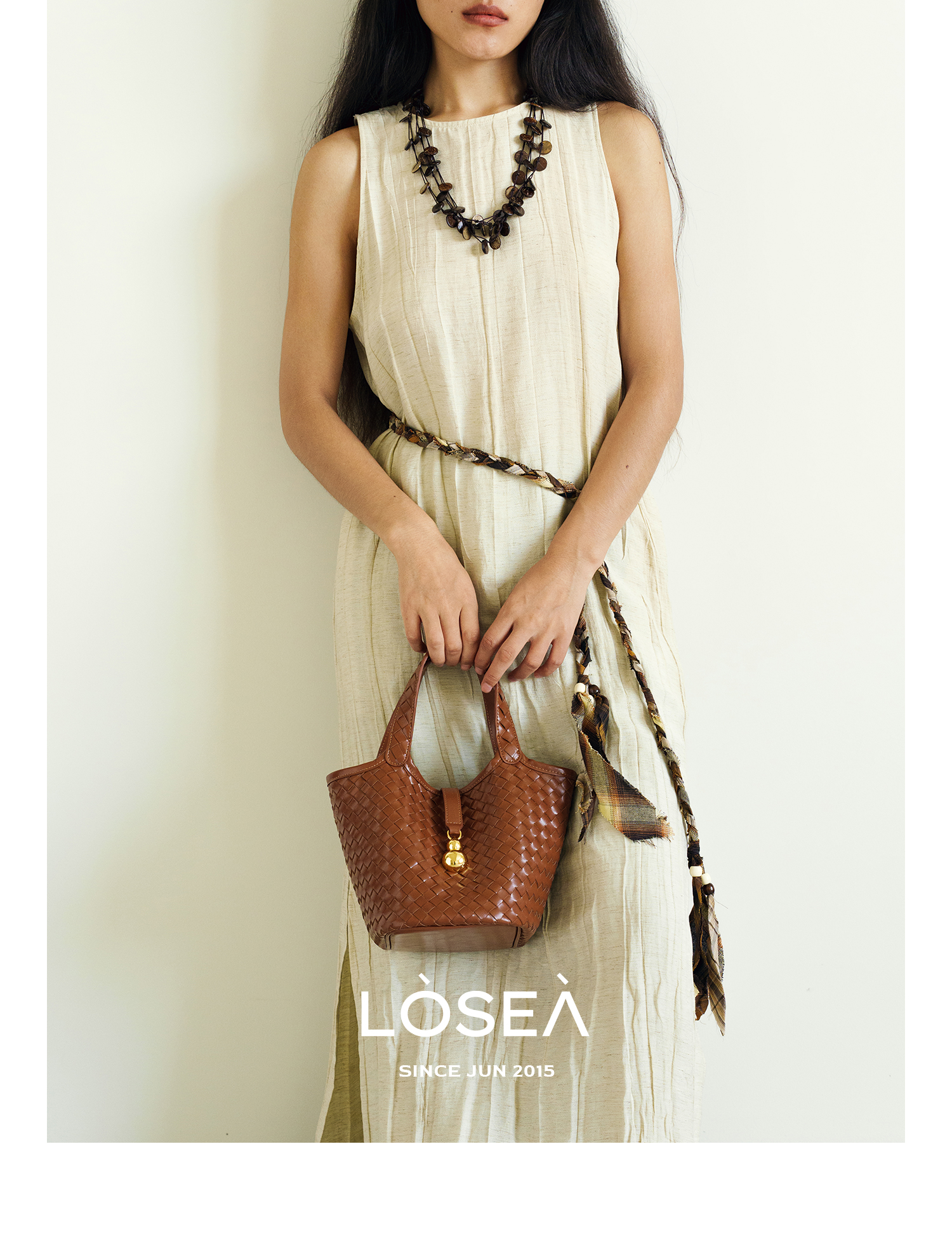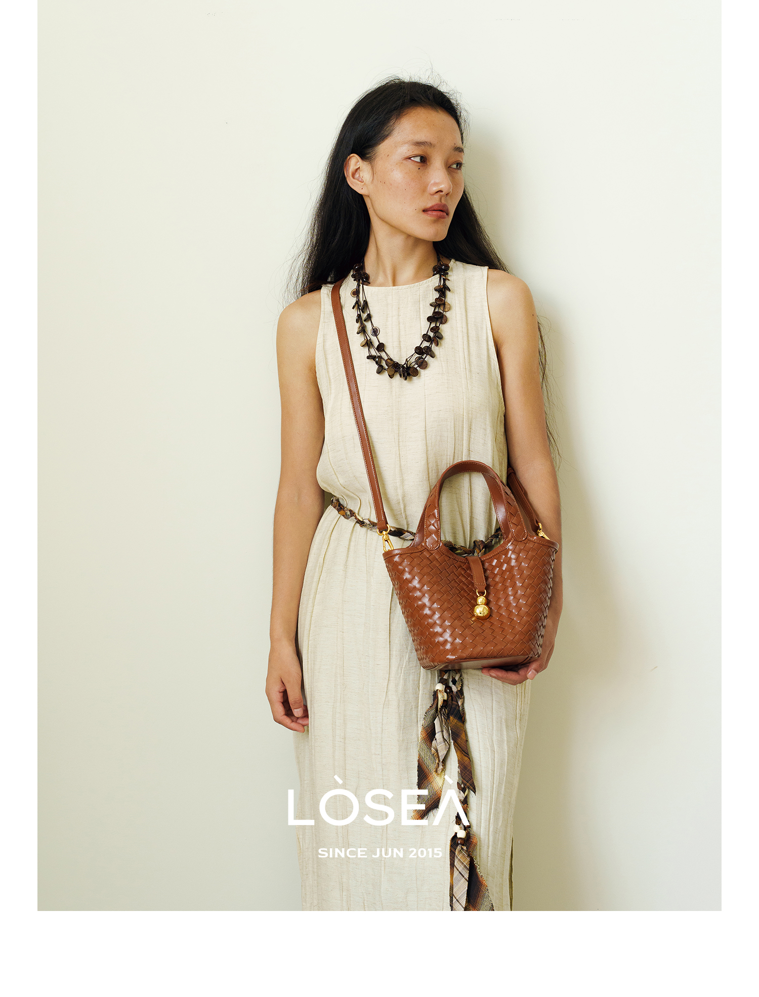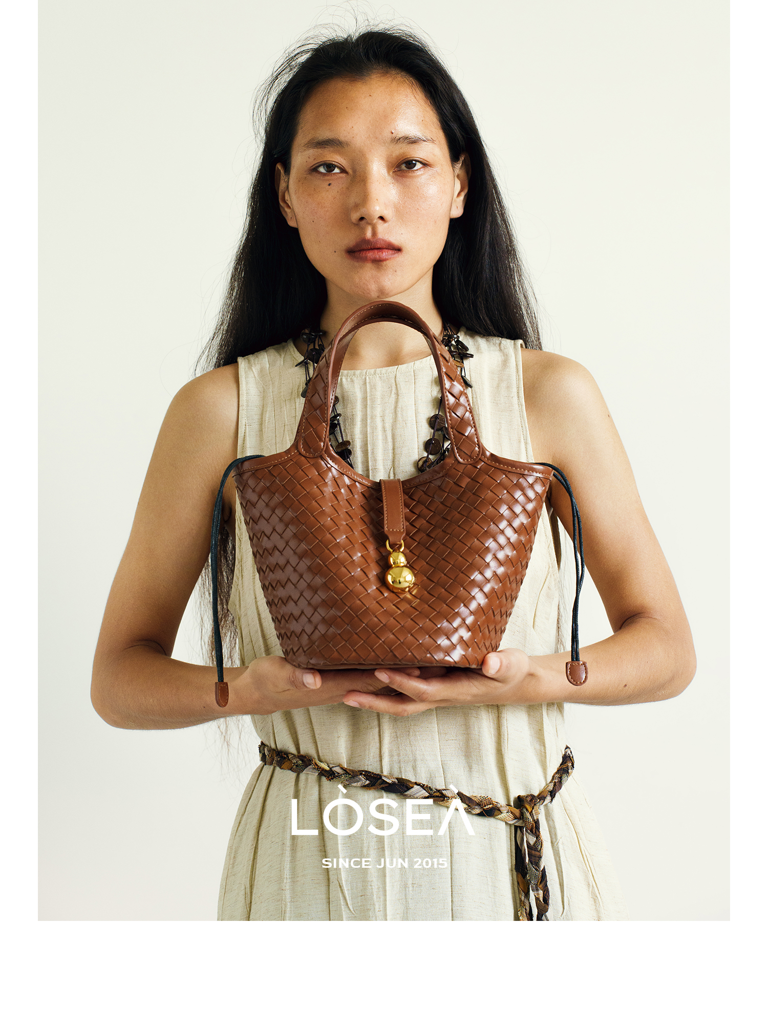 LOSEA Leather Hand-woven Gourd Vegetable Basket Shoulder Bag