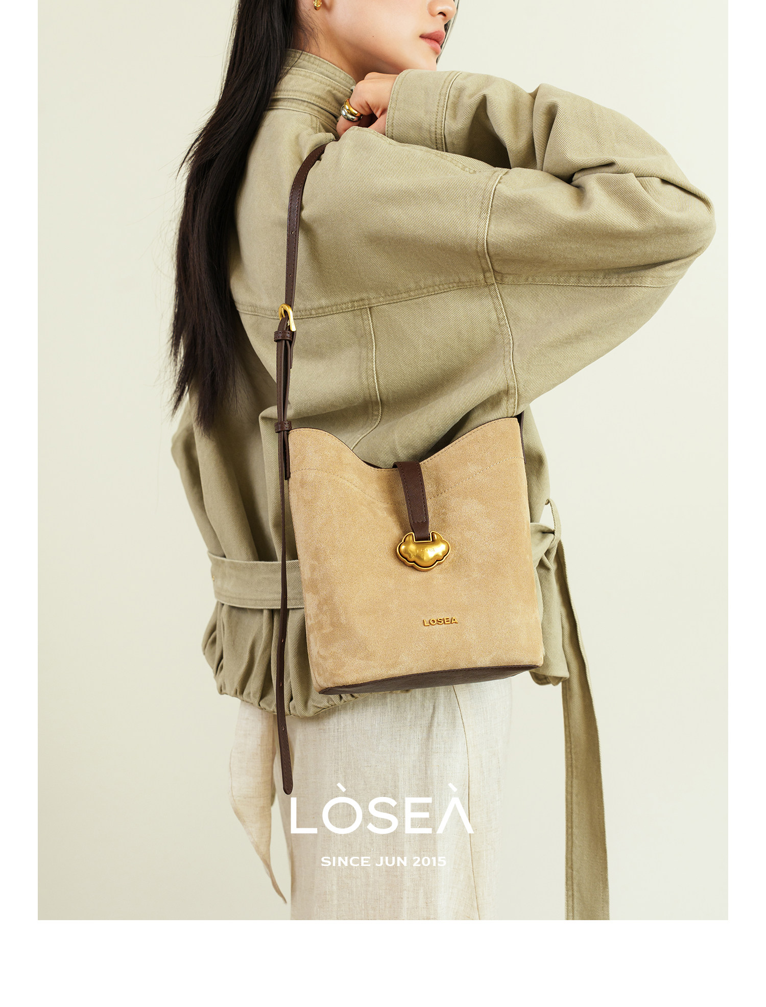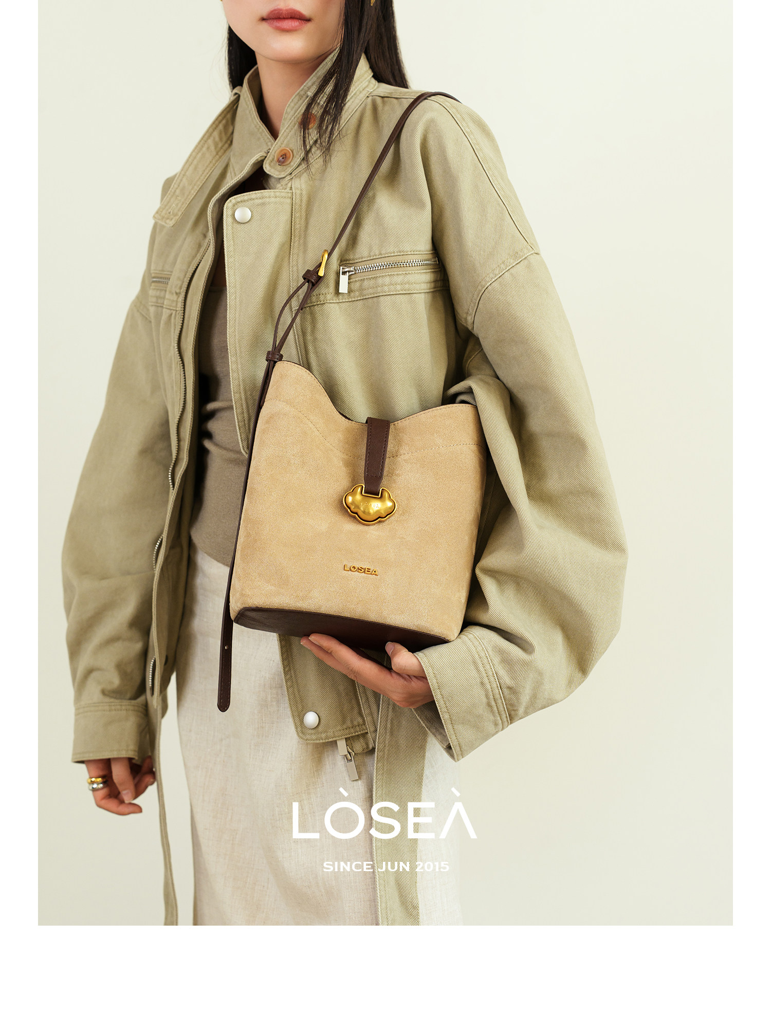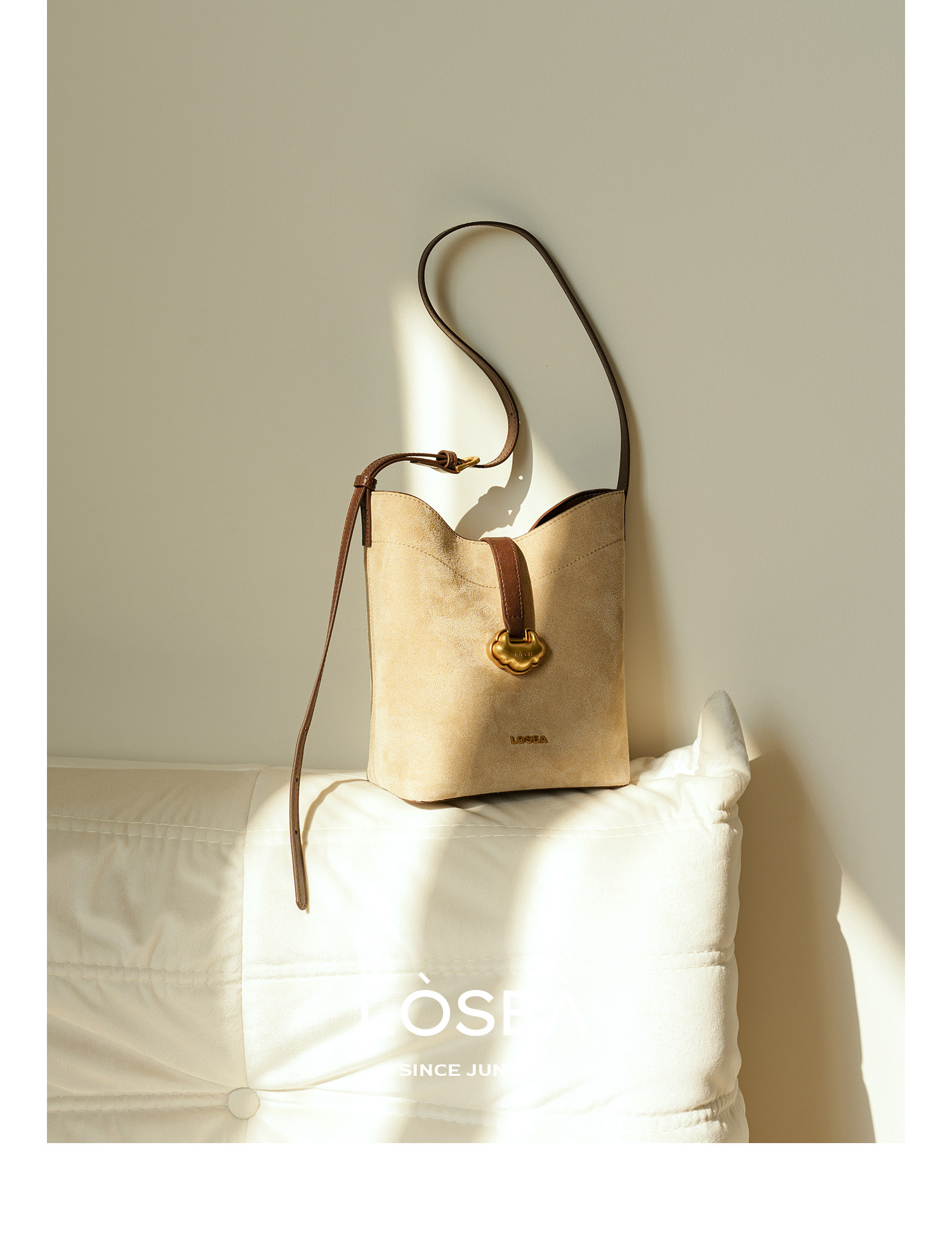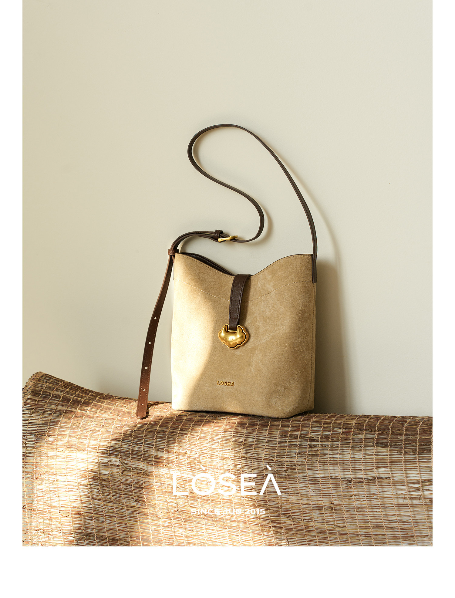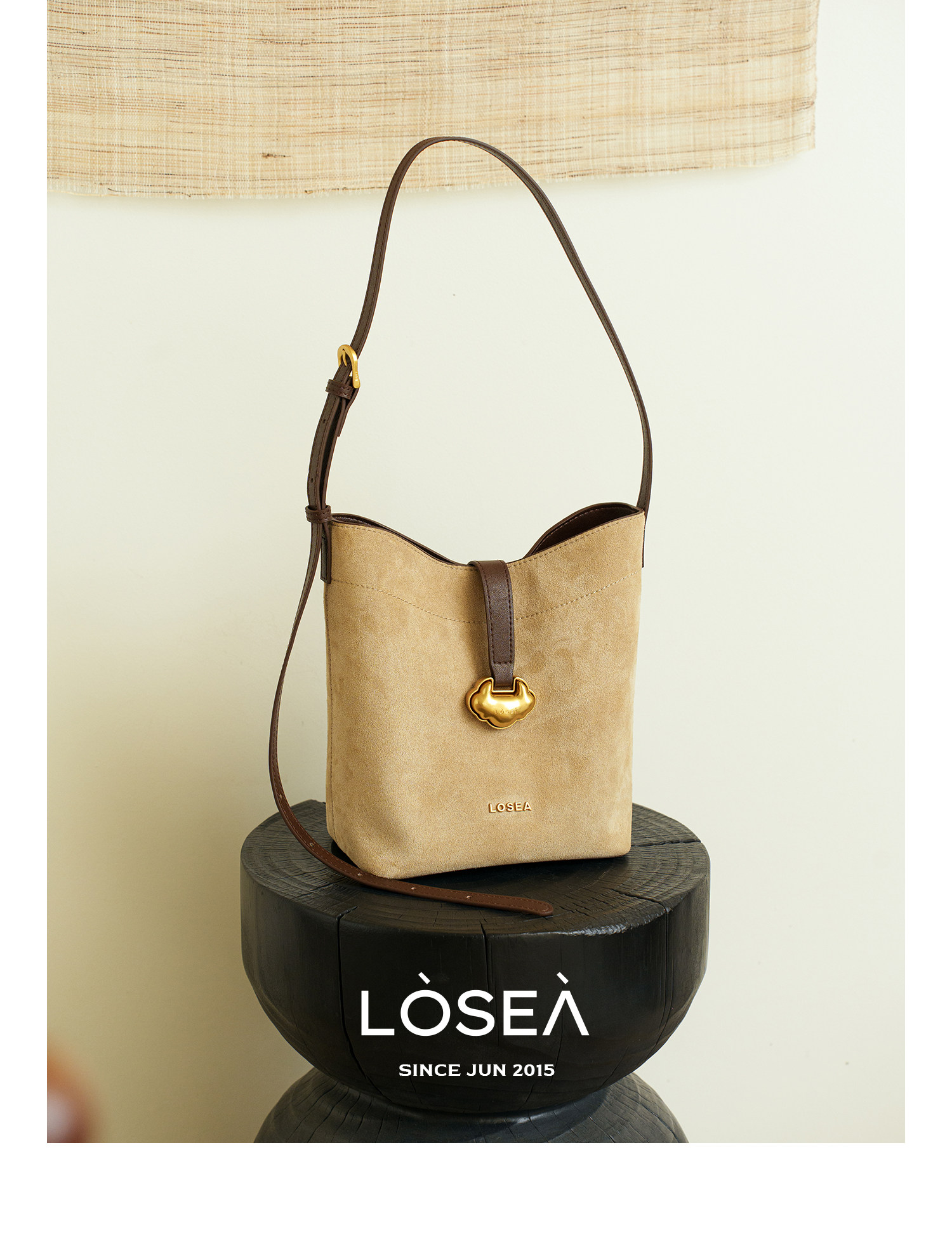 LOSEA Leather Velvet Splicing Bucket Bag
