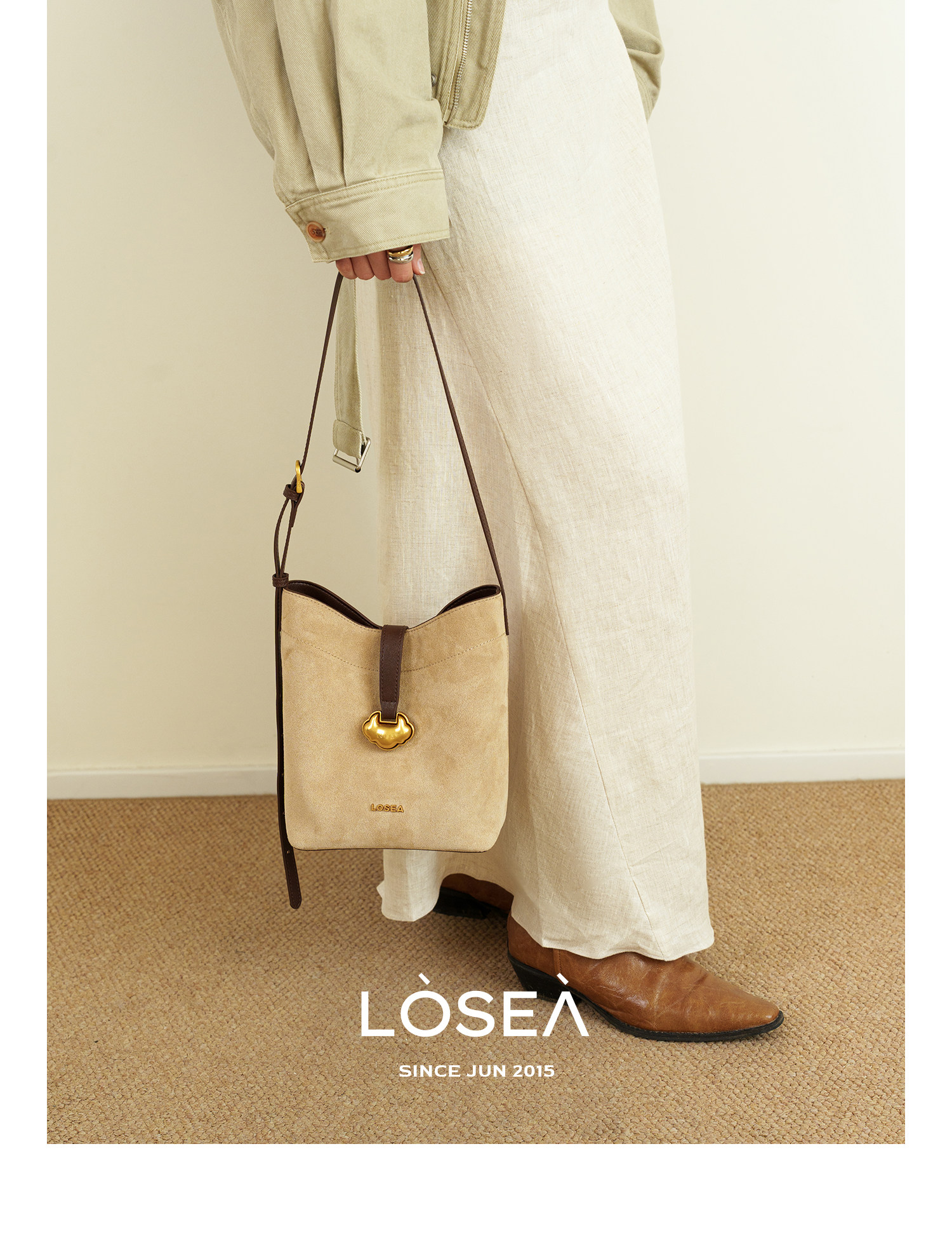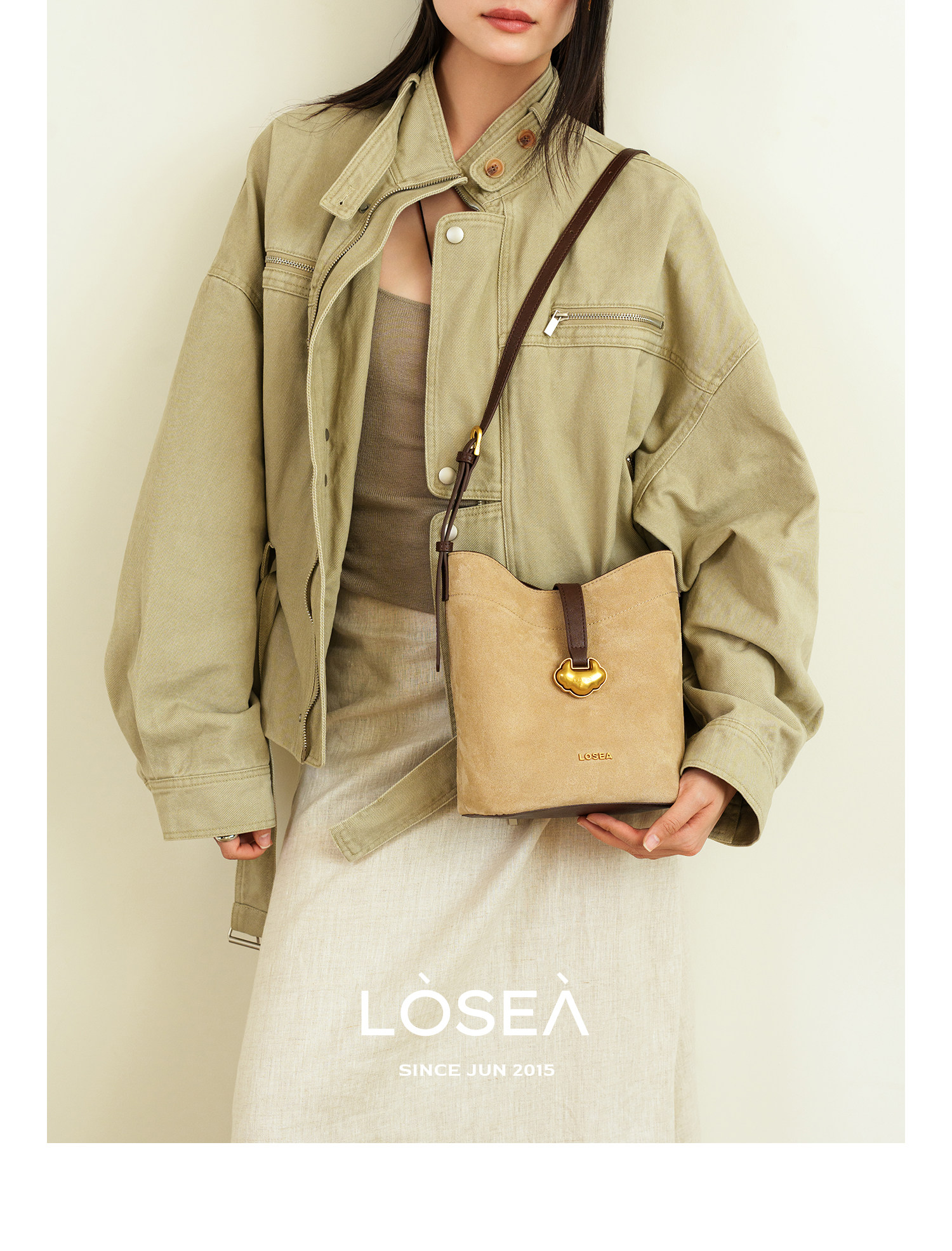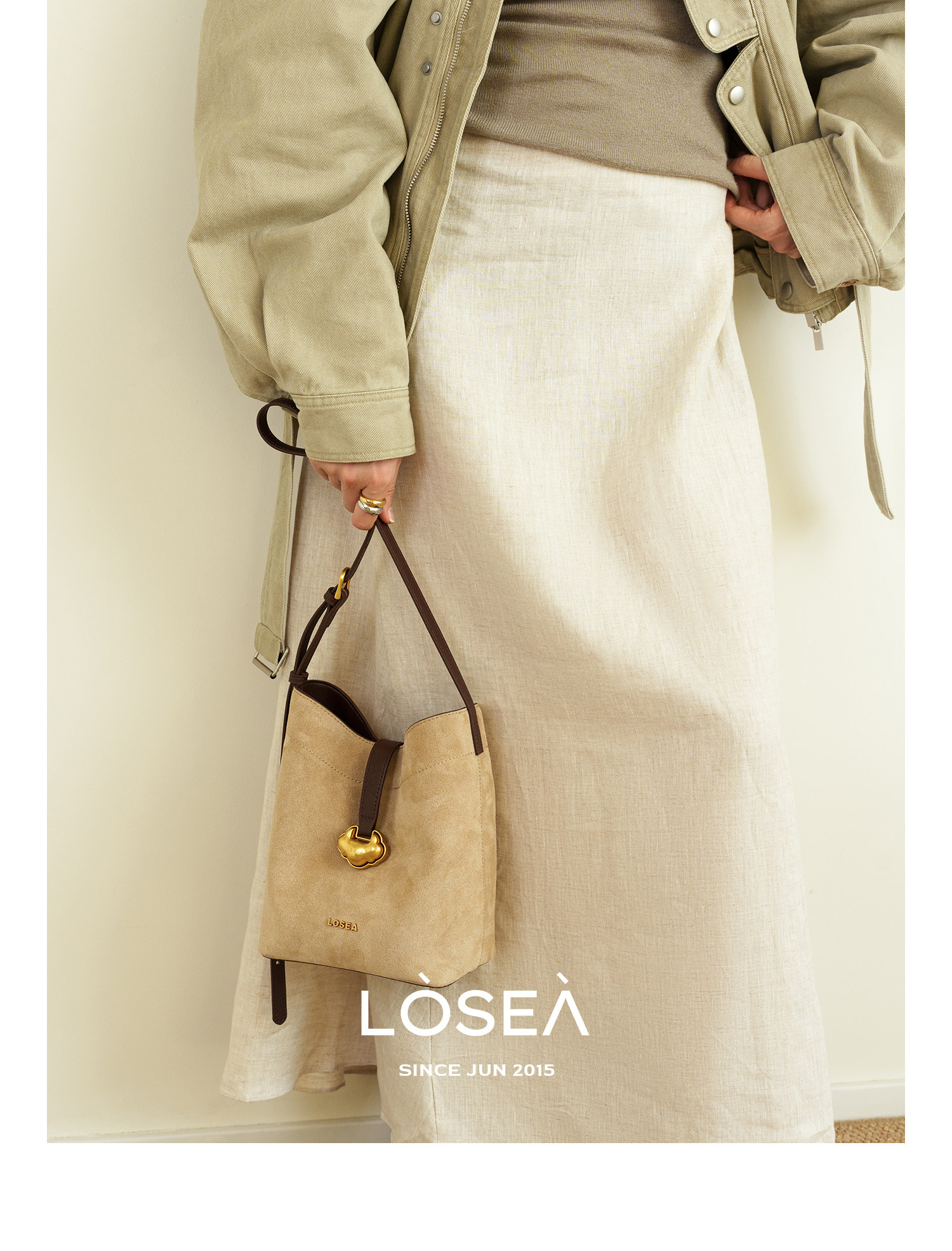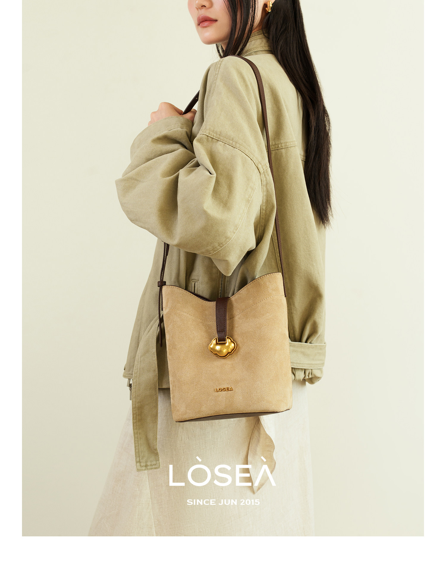 LOSEA Leather Velvet Splicing Bucket Bag
