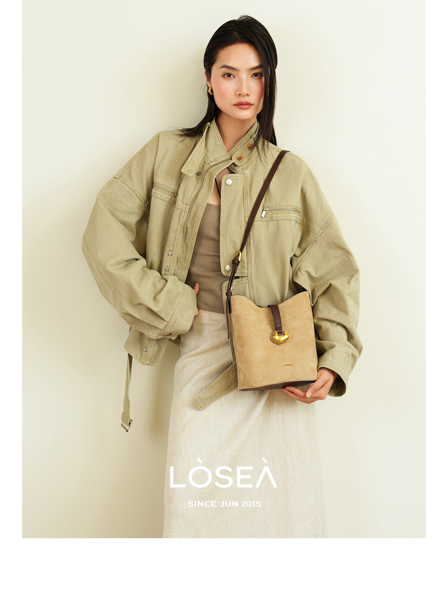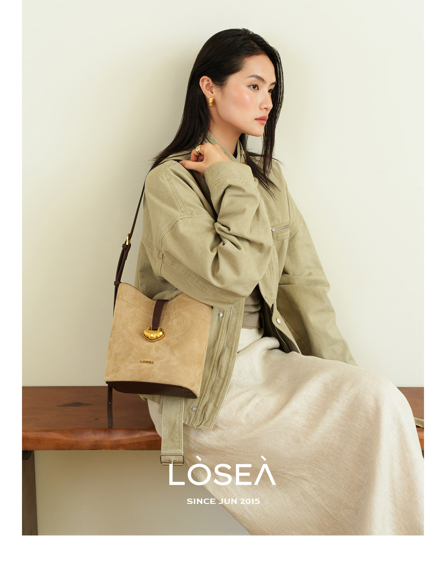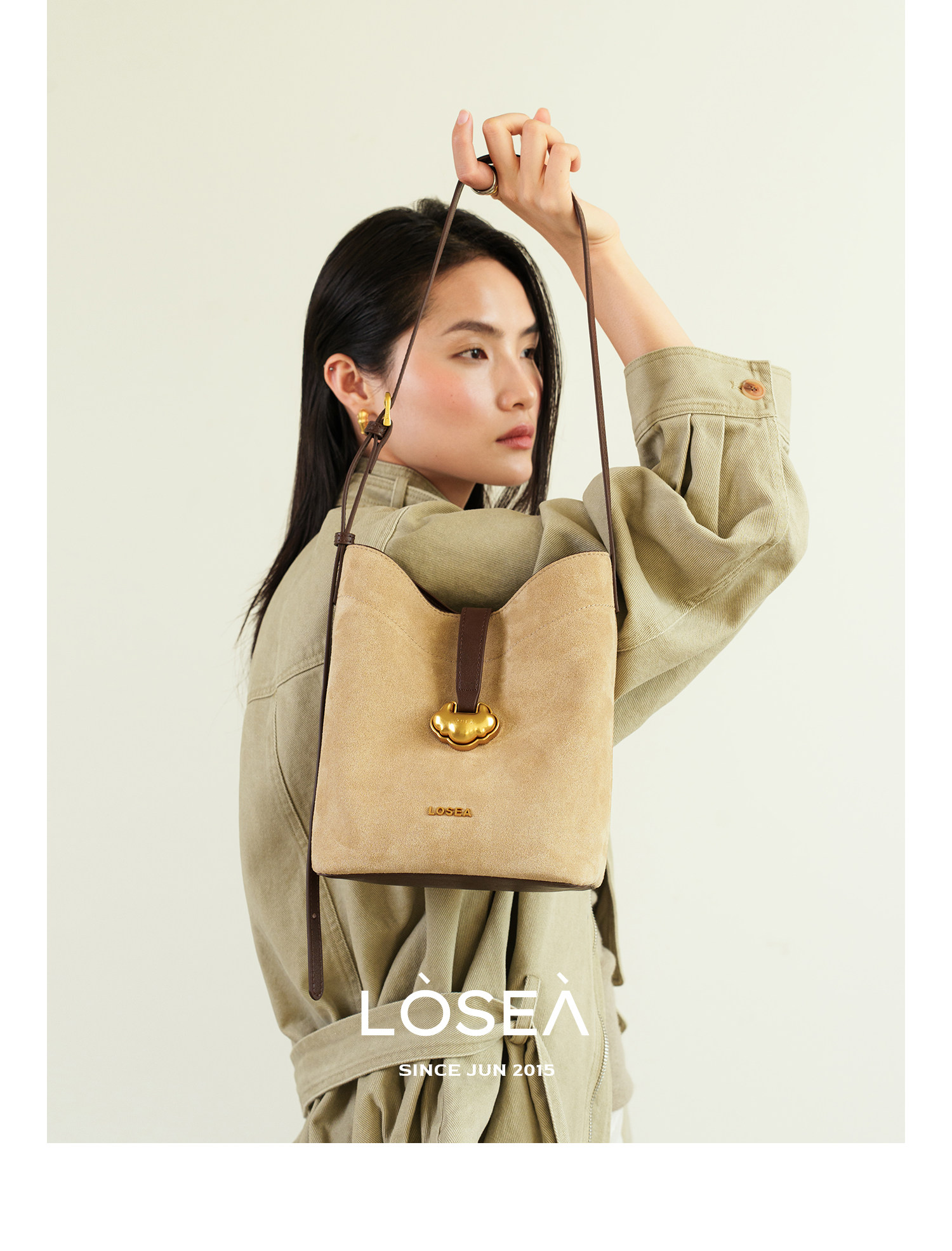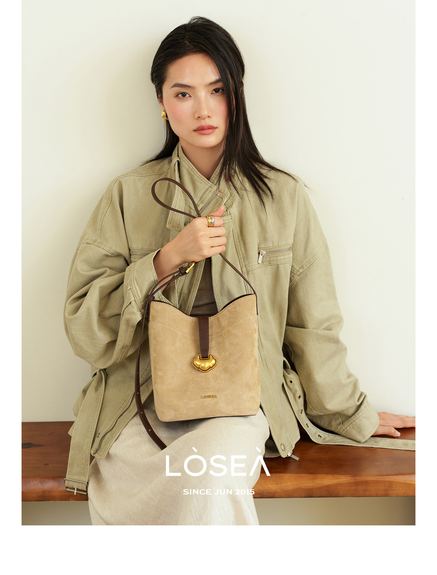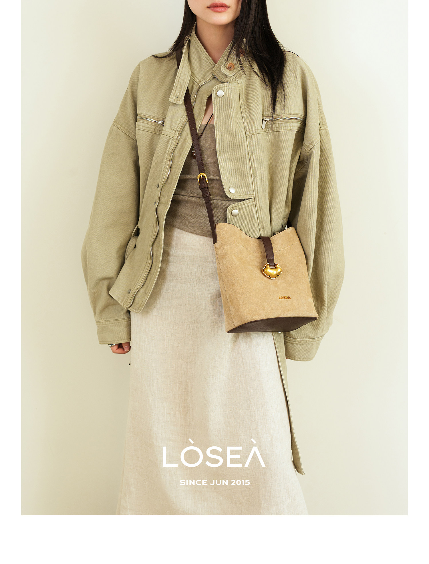 LOSEA Leather Velvet Splicing Bucket Bag