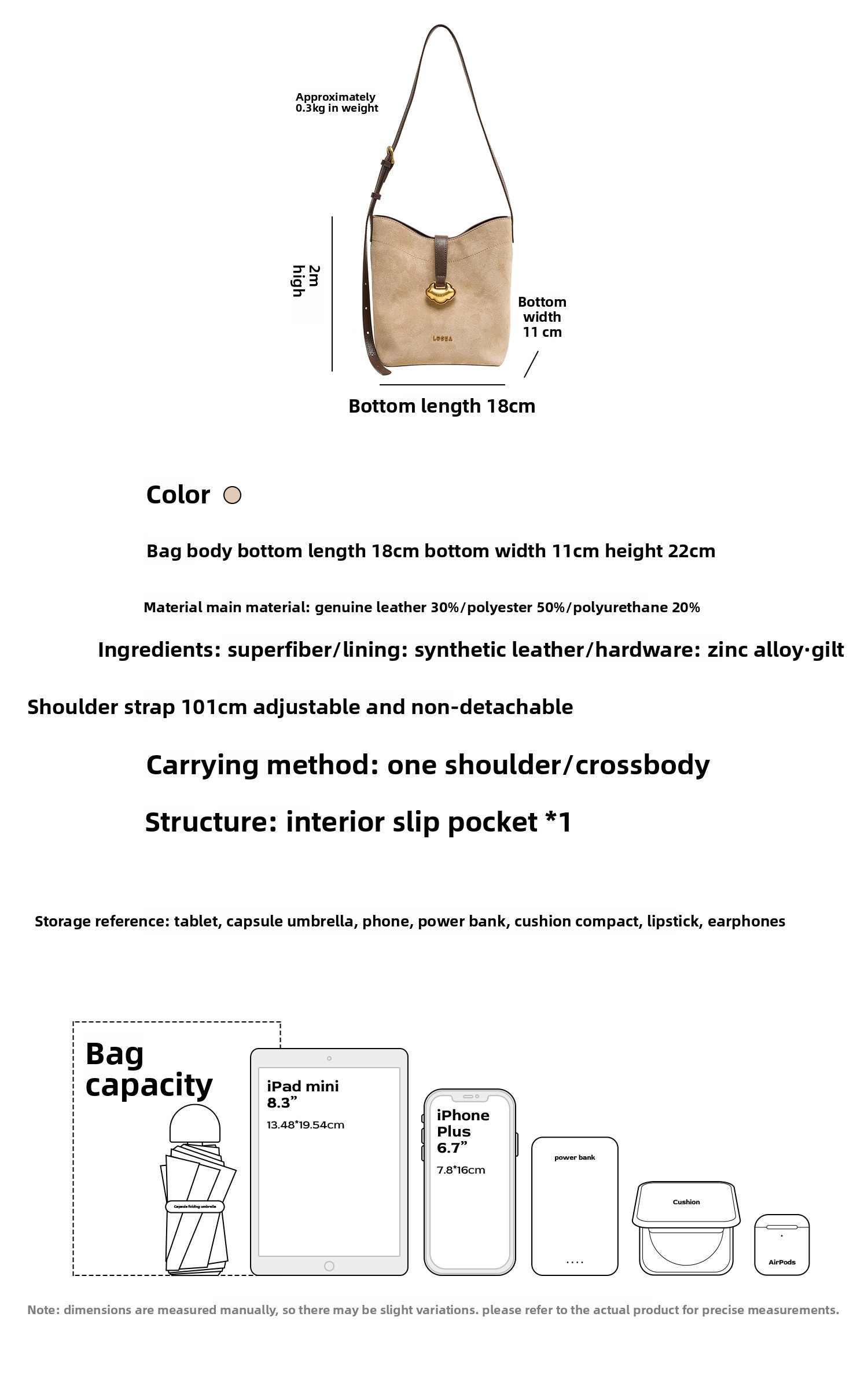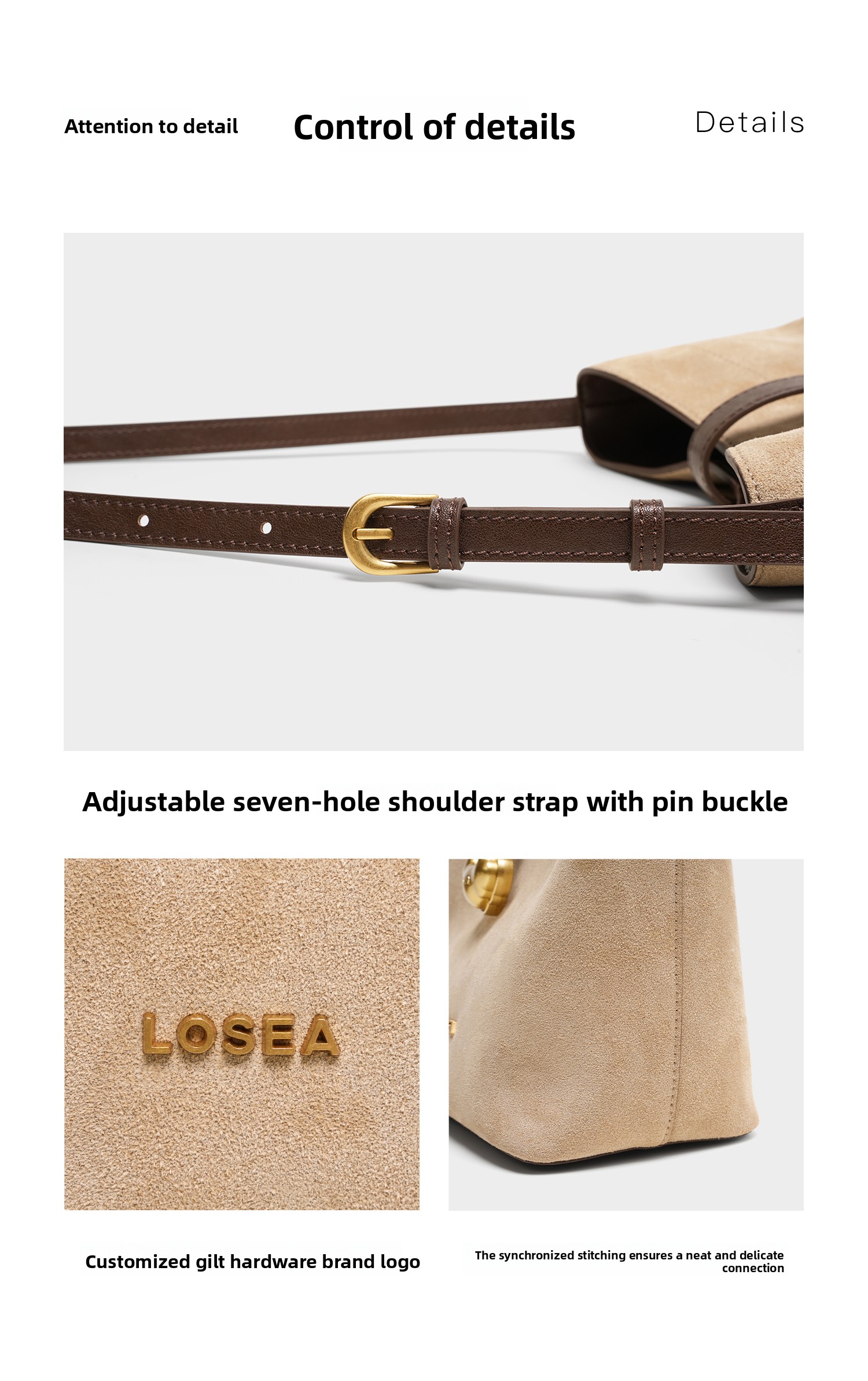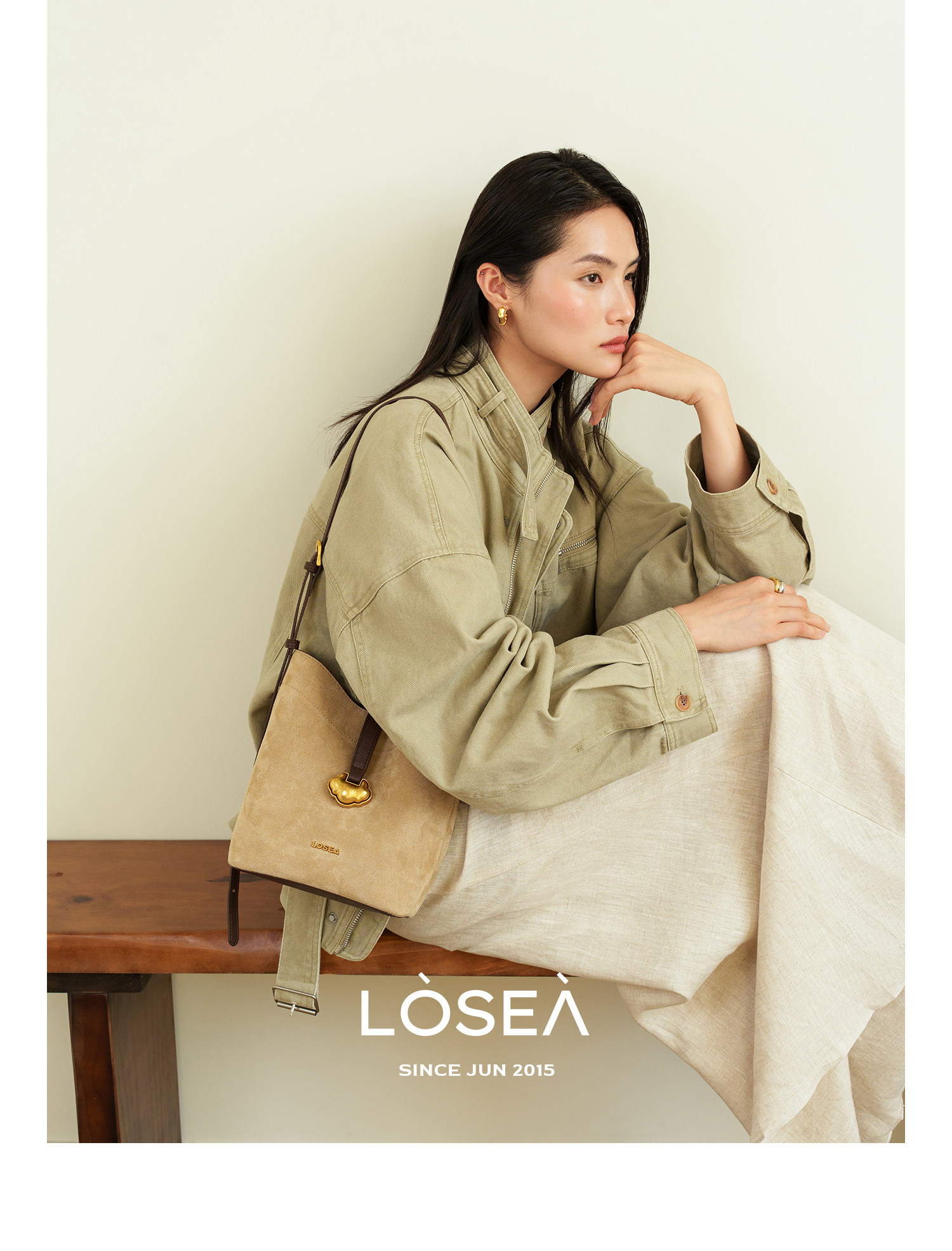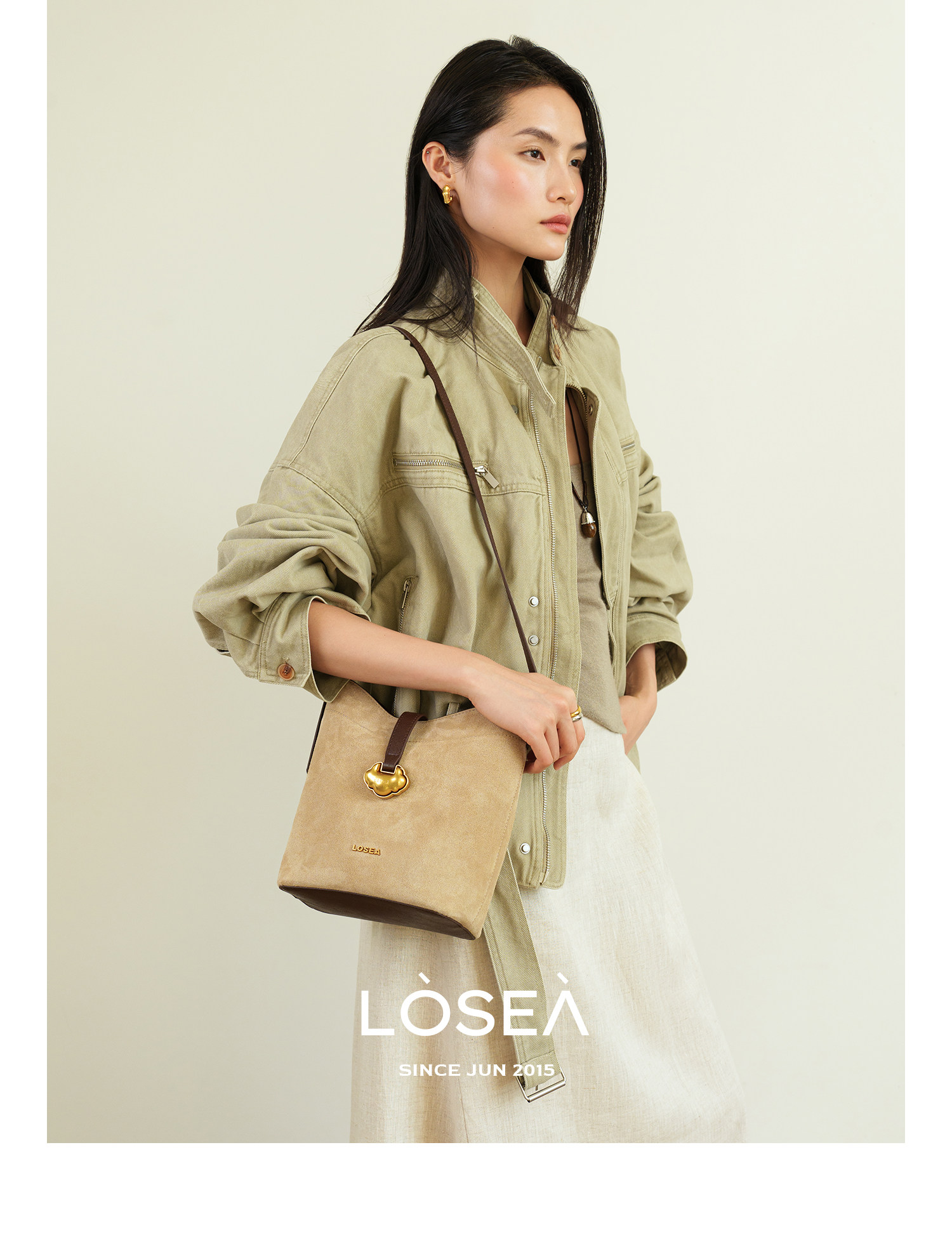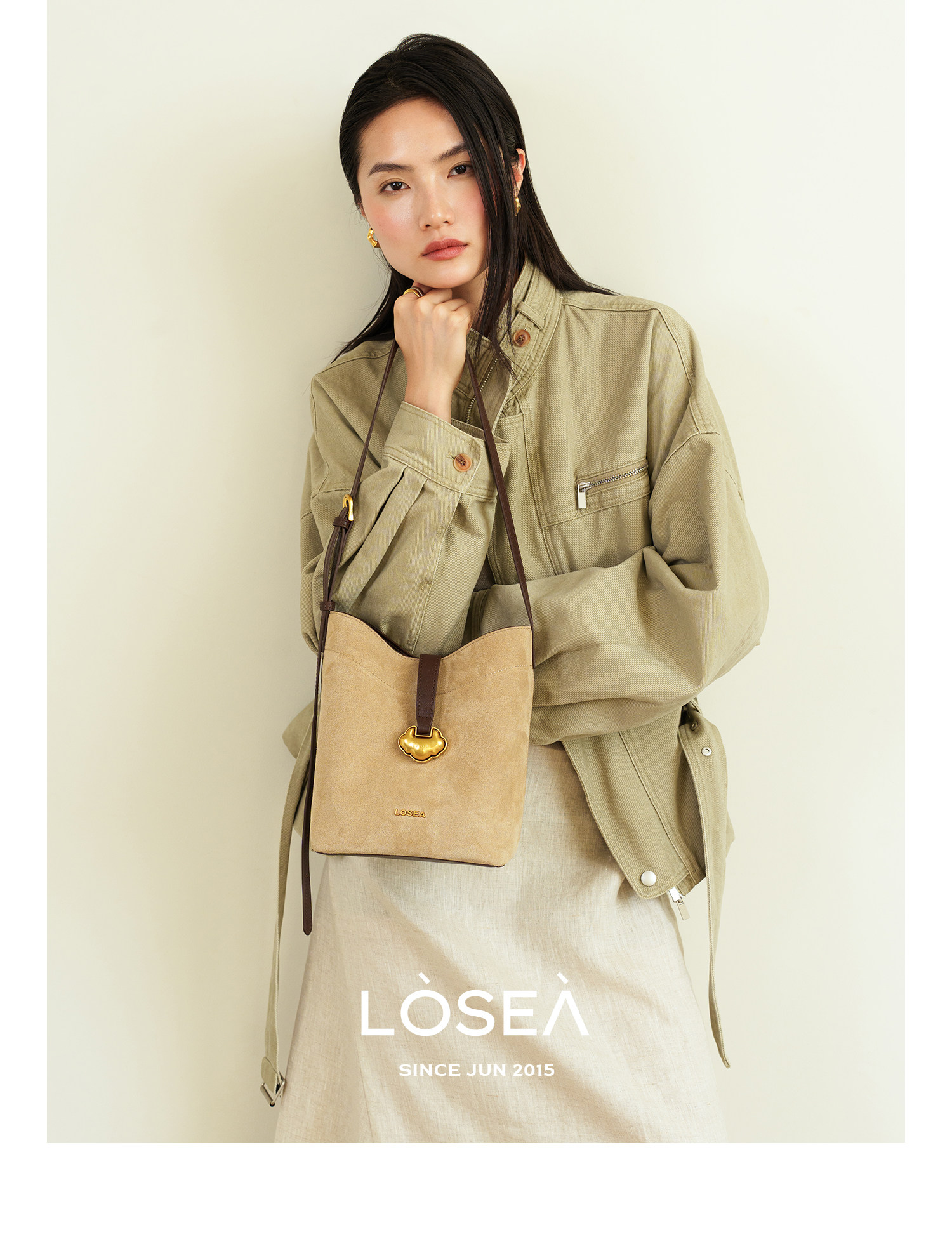 LOSEA Leather Velvet Splicing Bucket Bag
