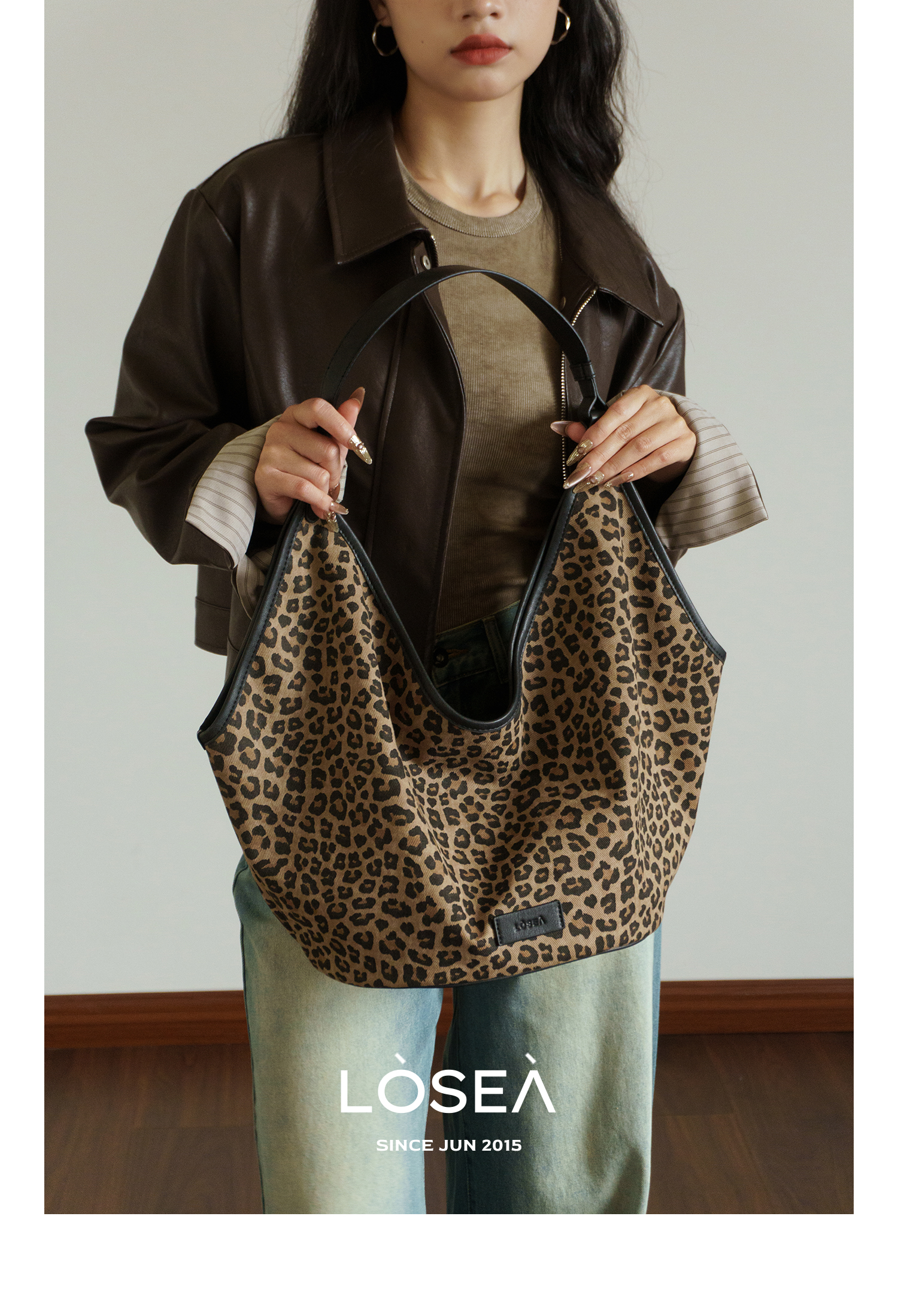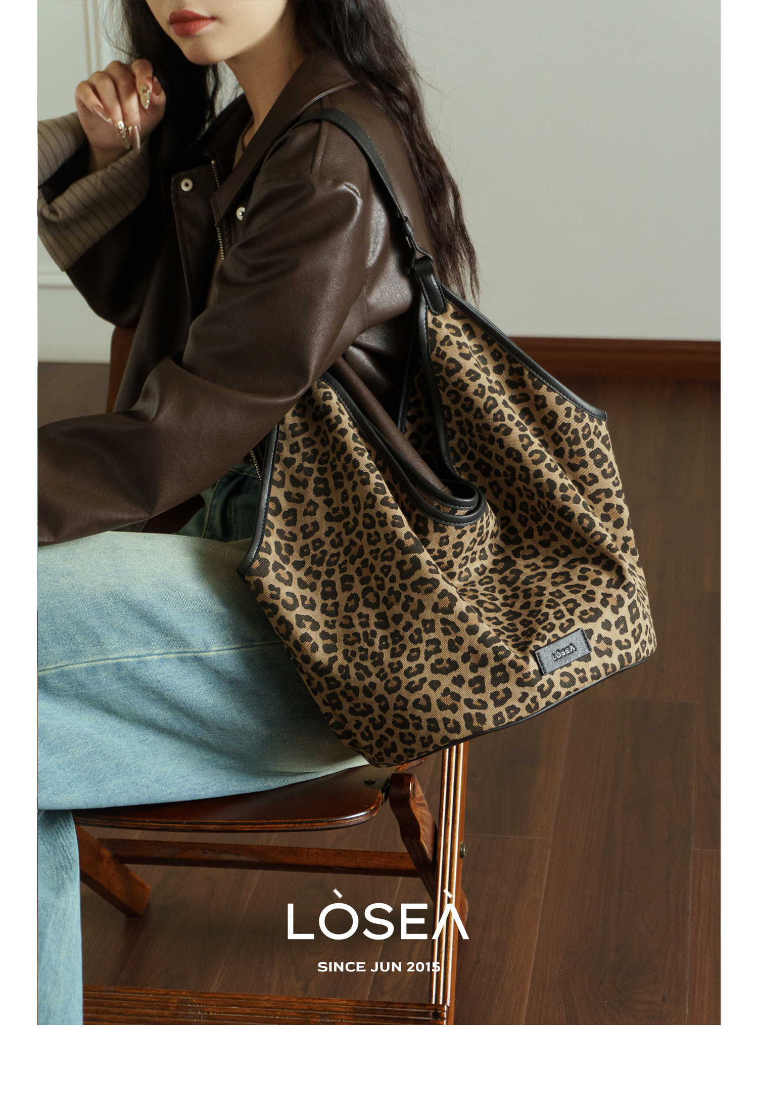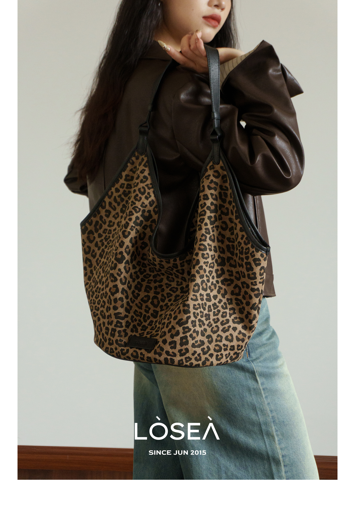 LOSEA Leopard Print Large Capacity Retro Messenger Bag