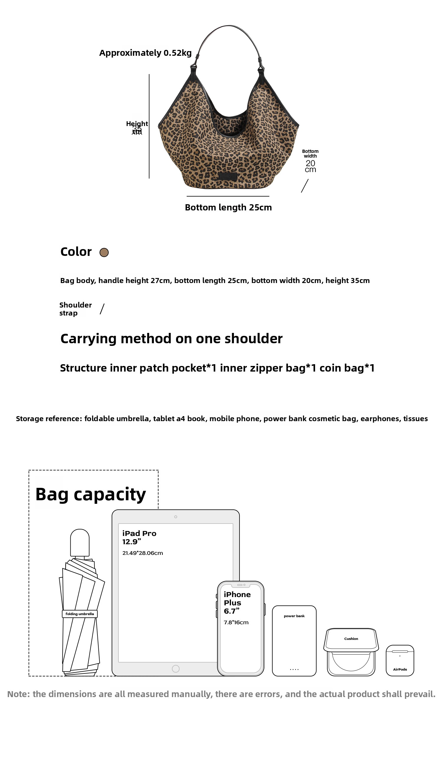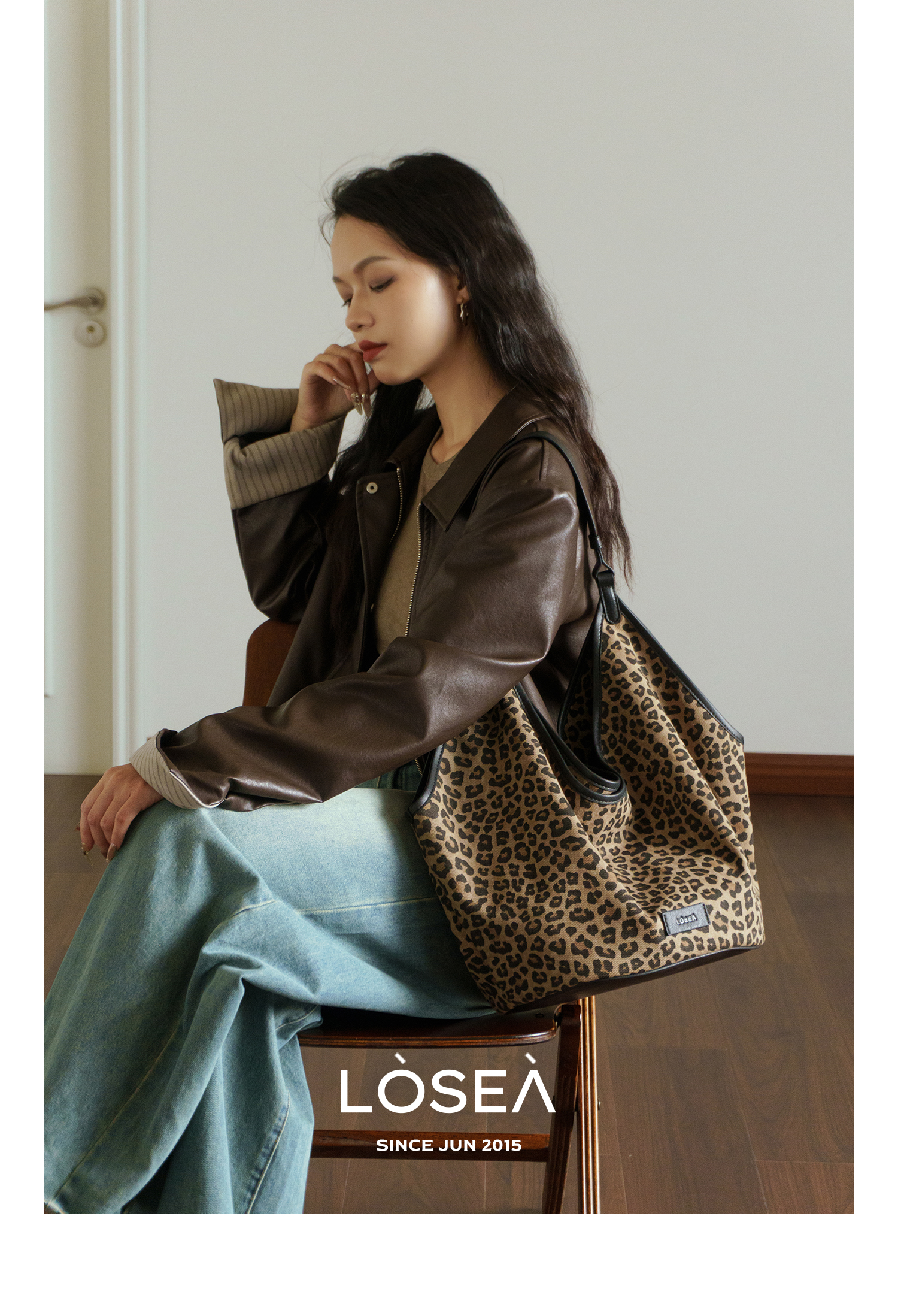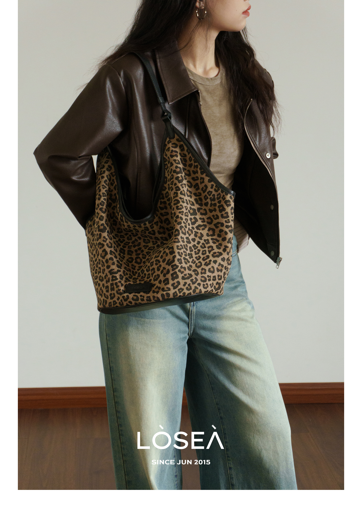 LOSEA Leopard Print Large Capacity Retro Messenger Bag