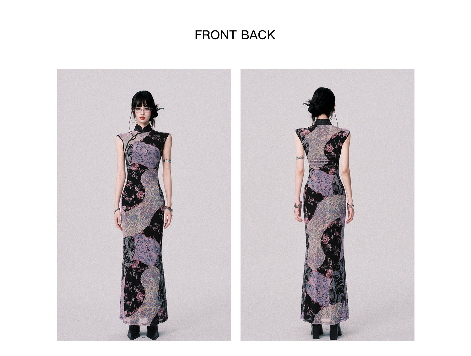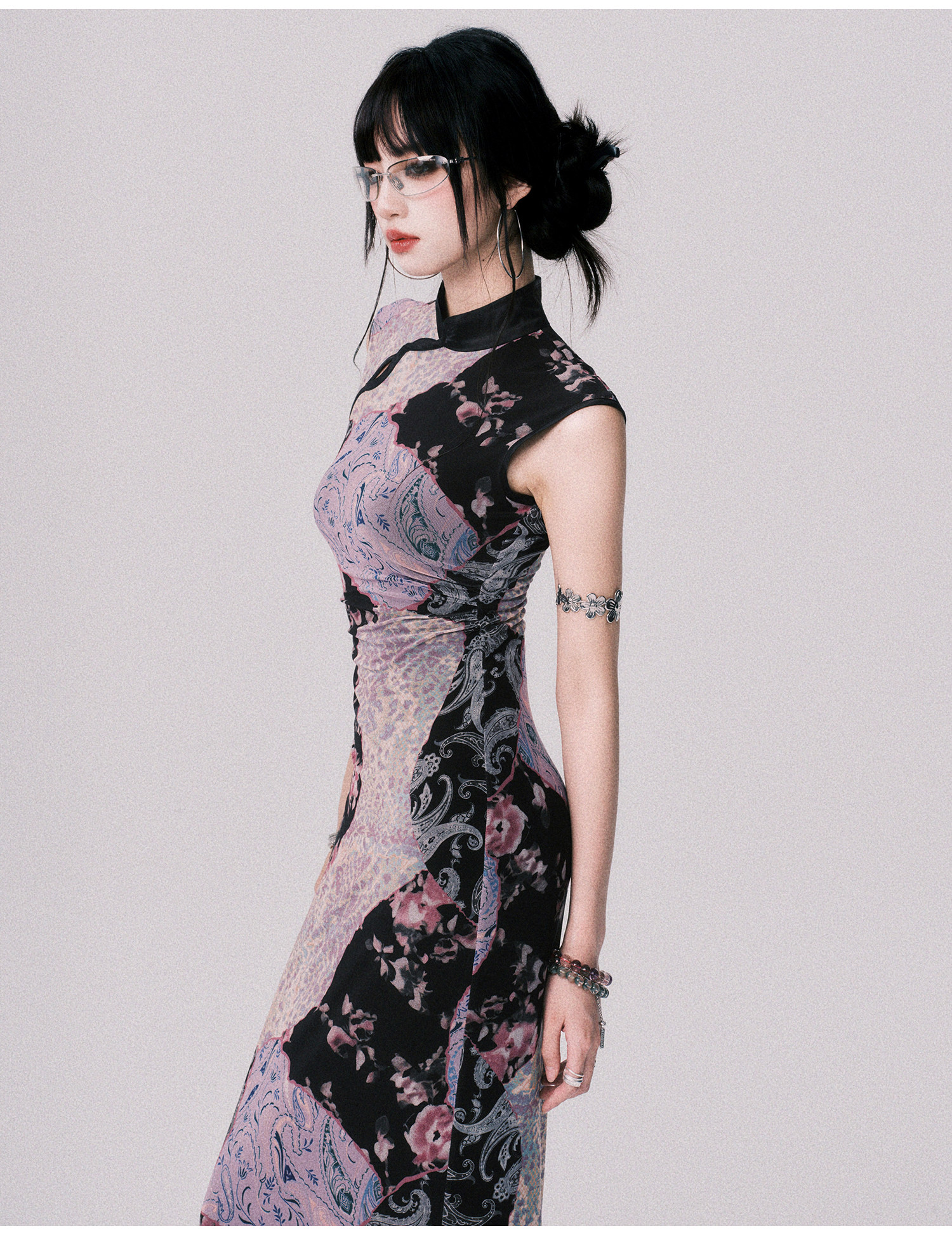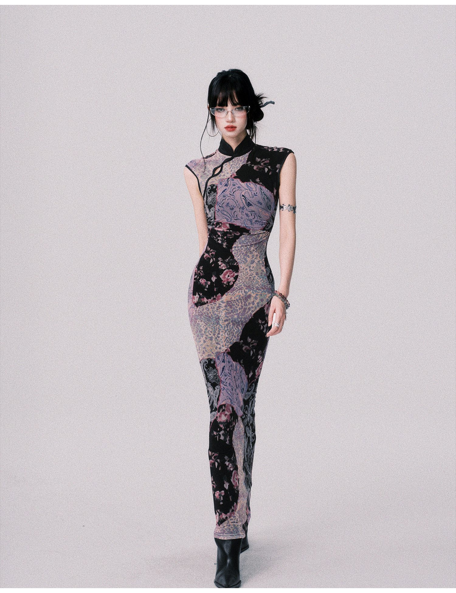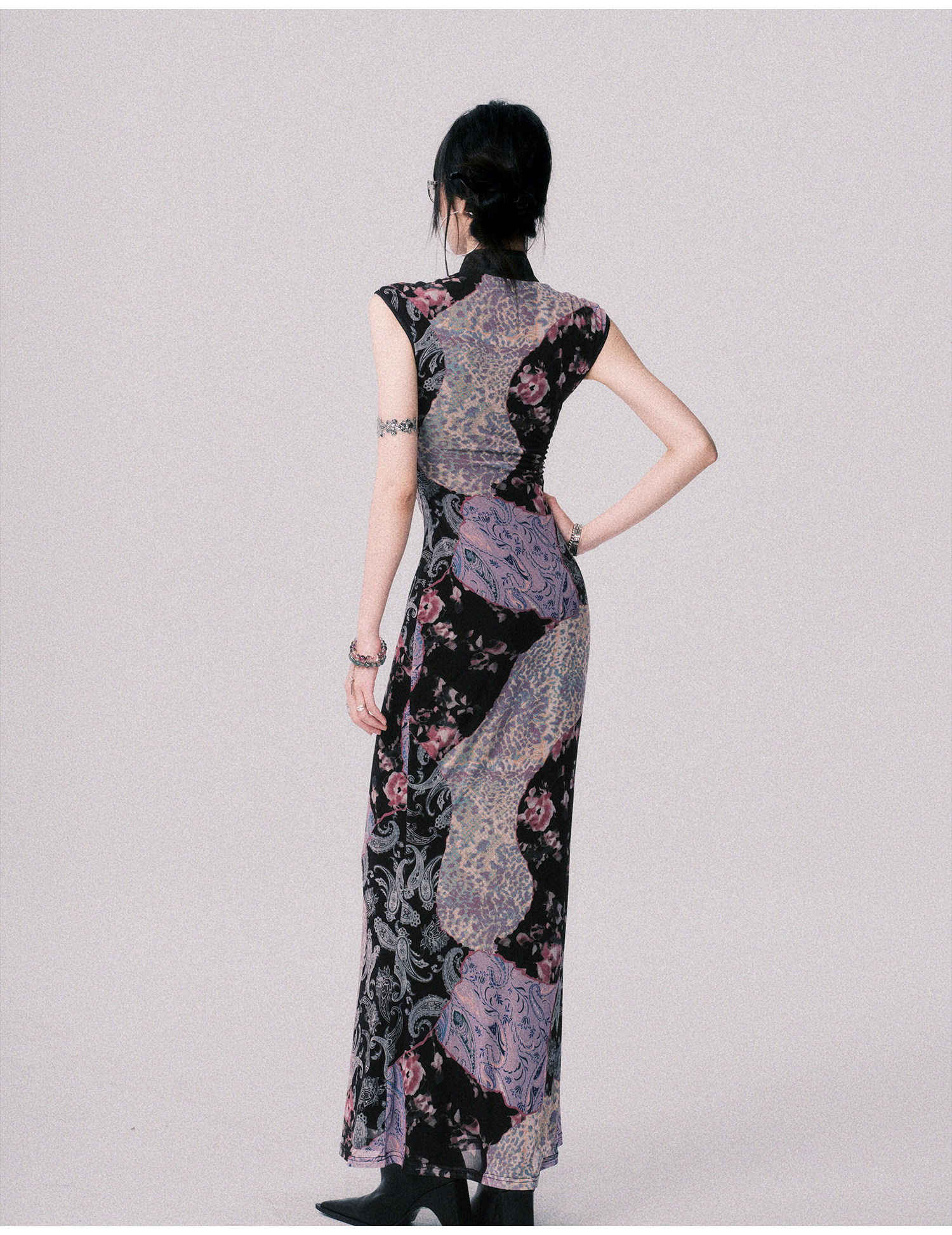 LULUSWINGS Smoked Purple Print Splicing Chinese Cheongsam