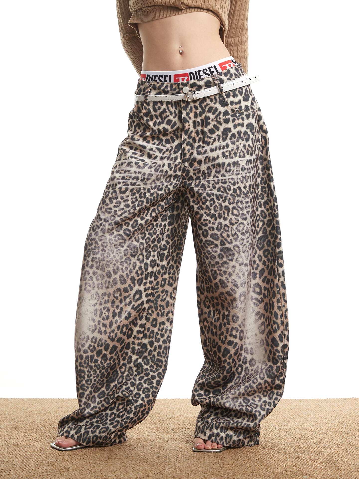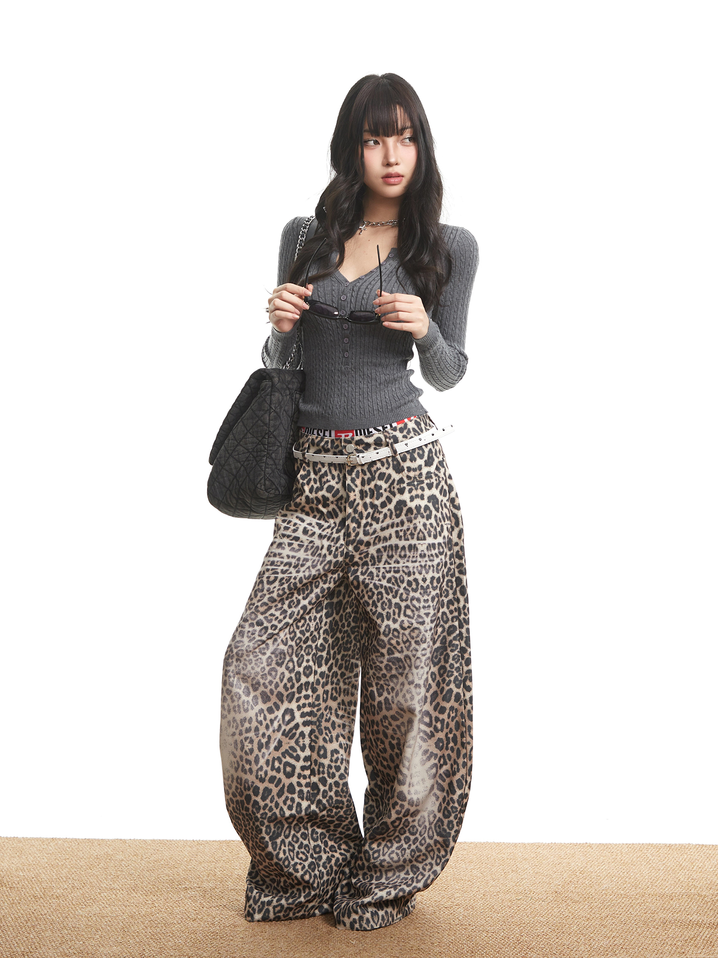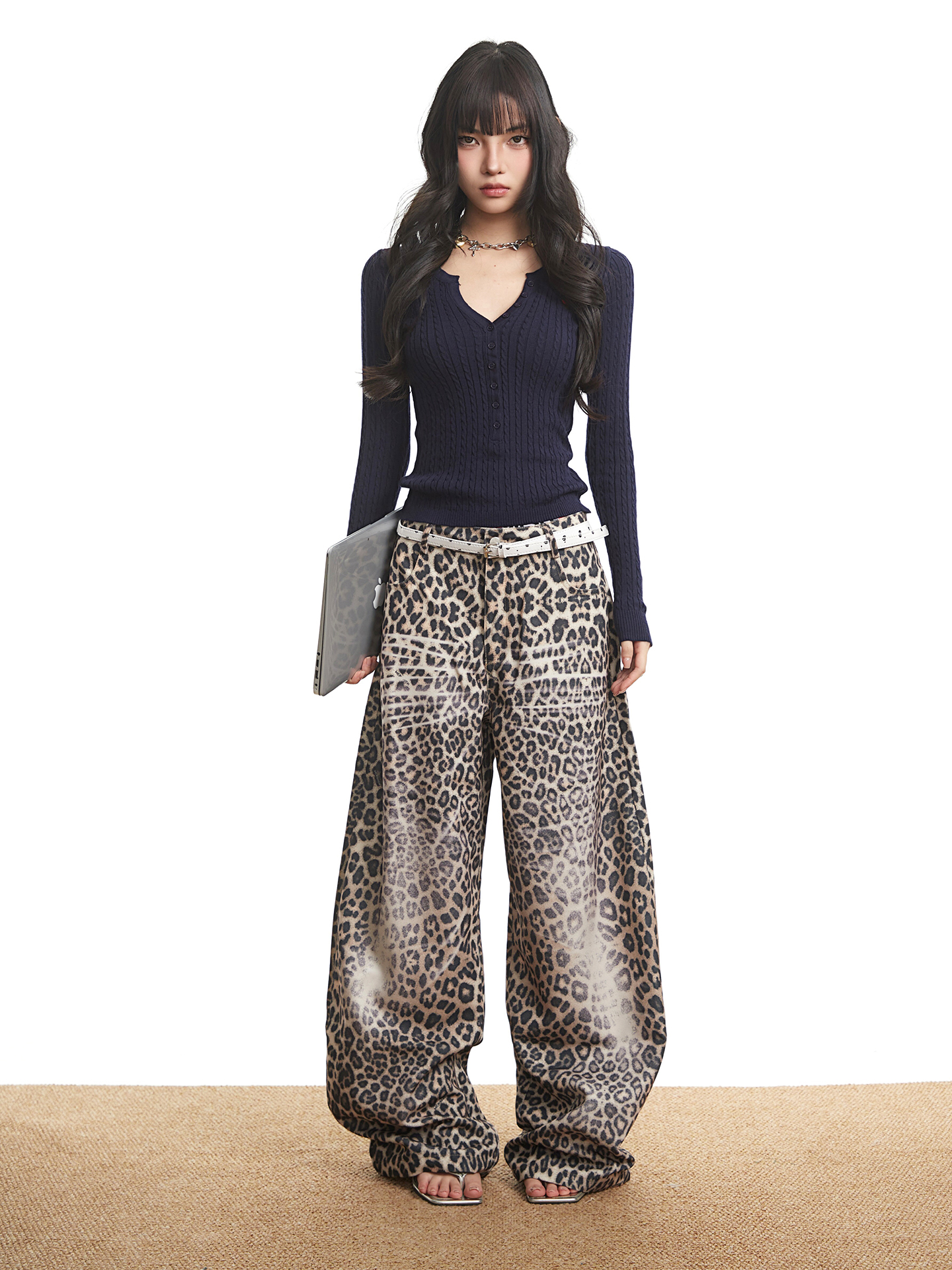 Mershier Leopard Wide Leg Loose Straight Jeans