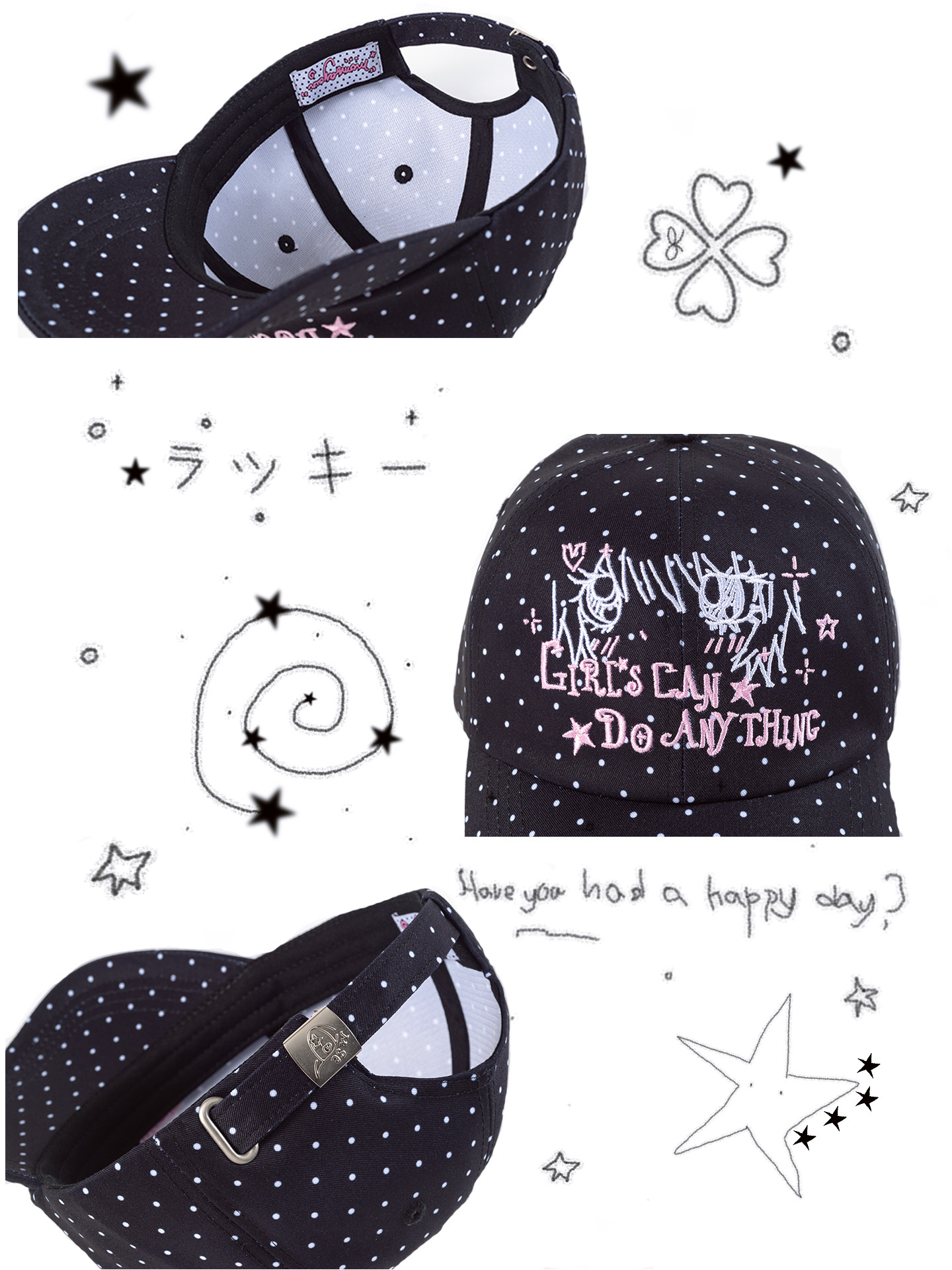 Polka dot, cap circumference 55-61cm adjustable / F