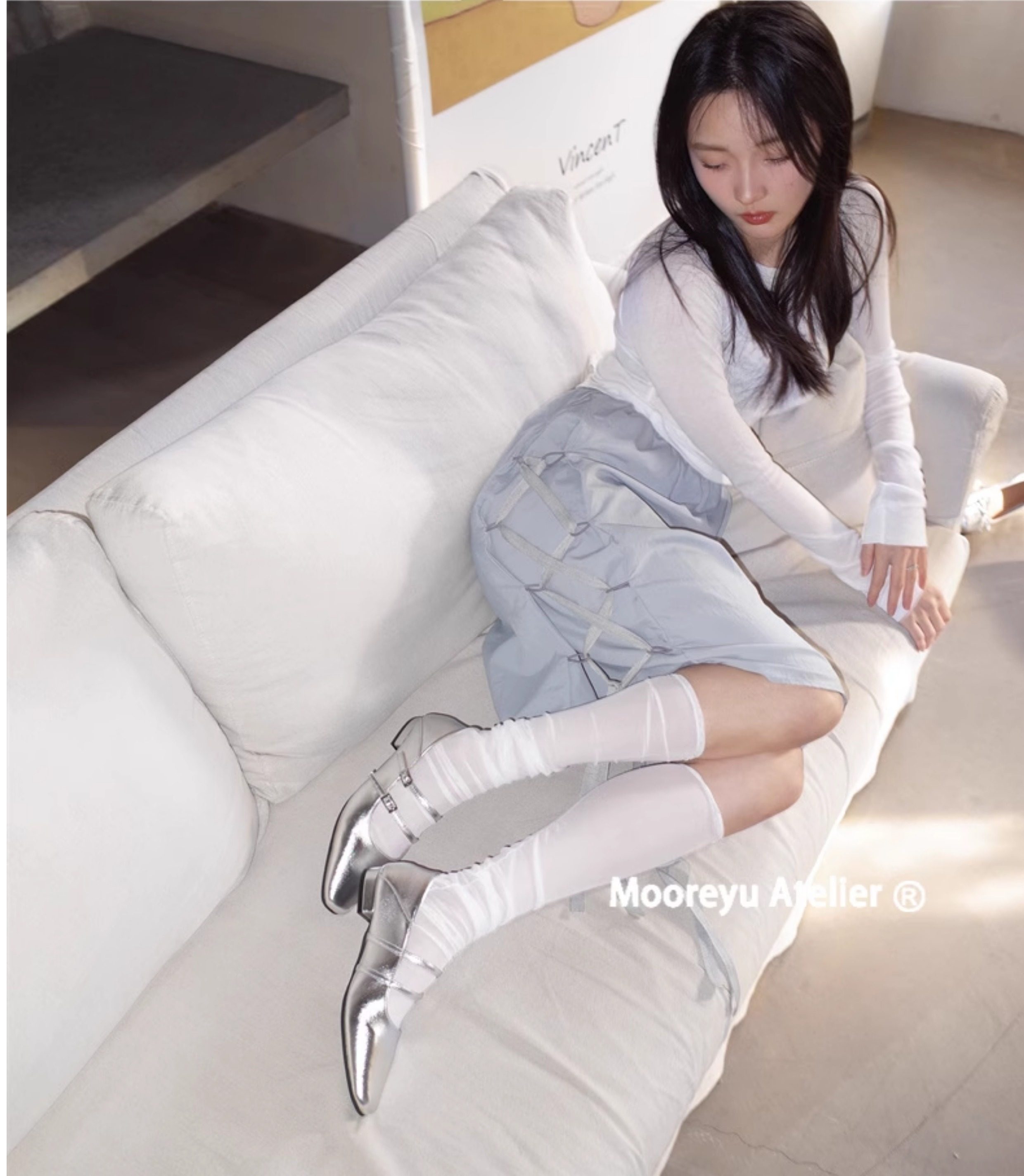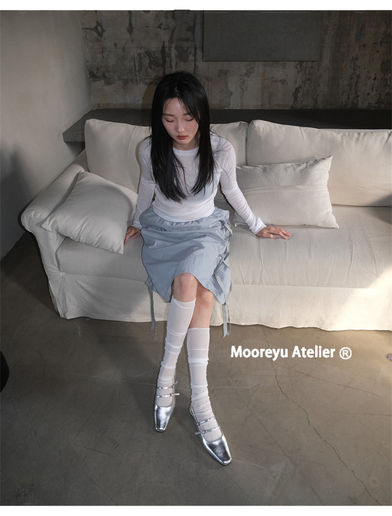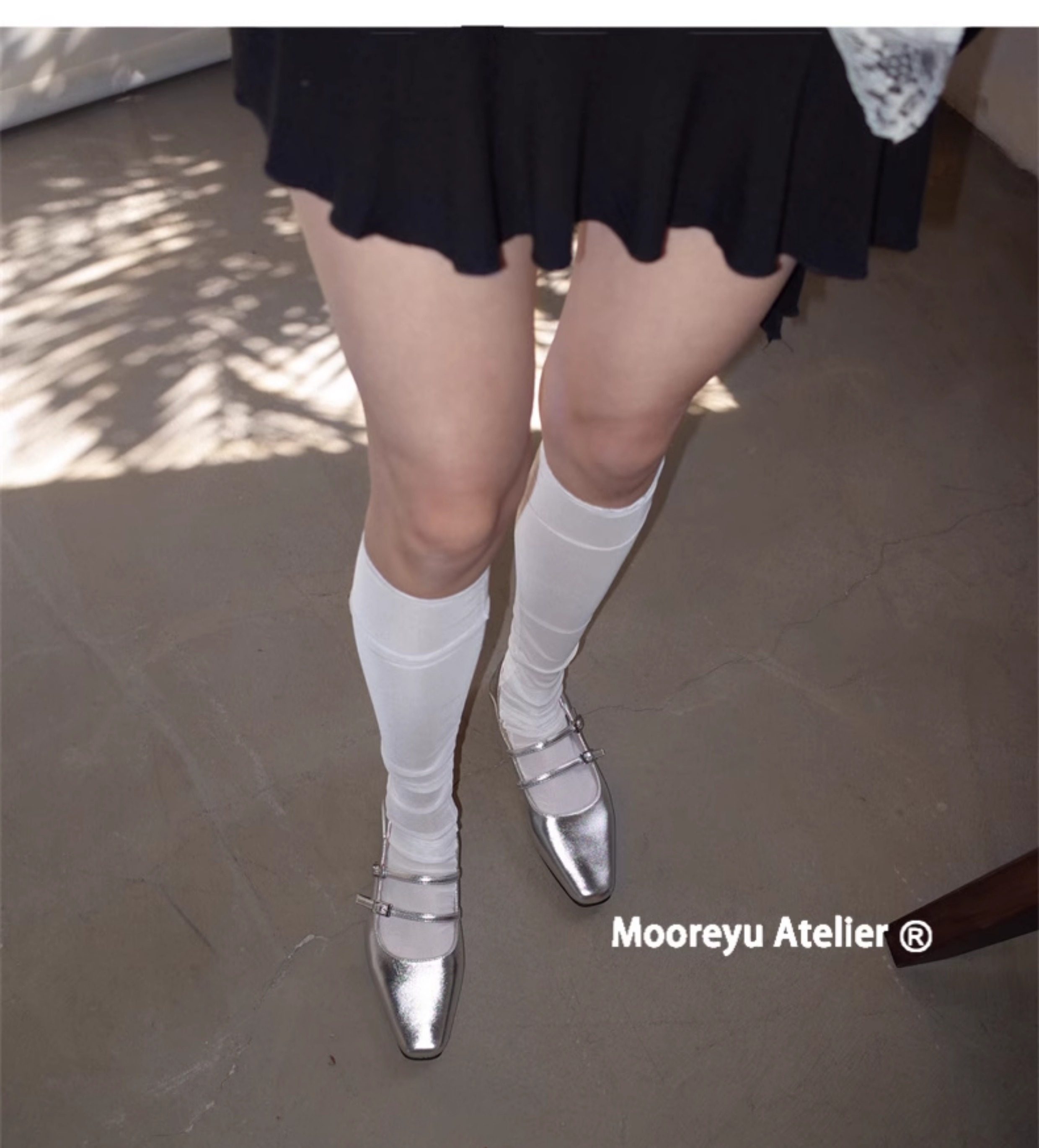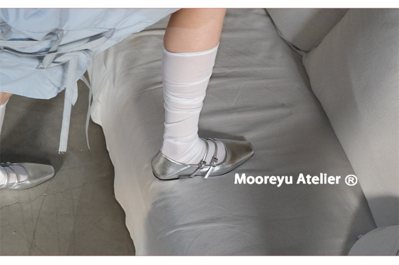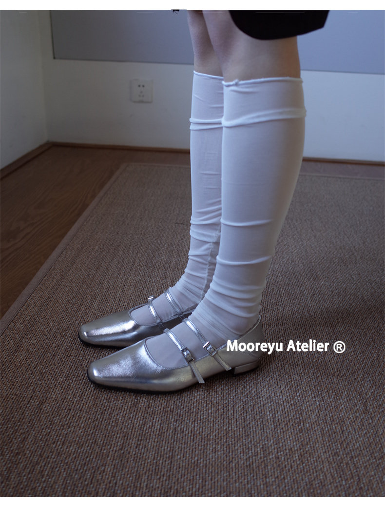 Mooreyu Light Mouth Thick Heel Retro Flat Mary Jane Shoes