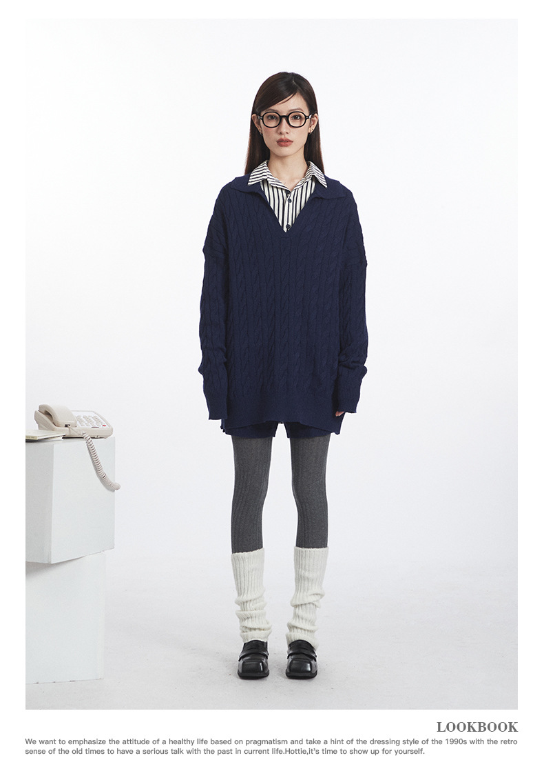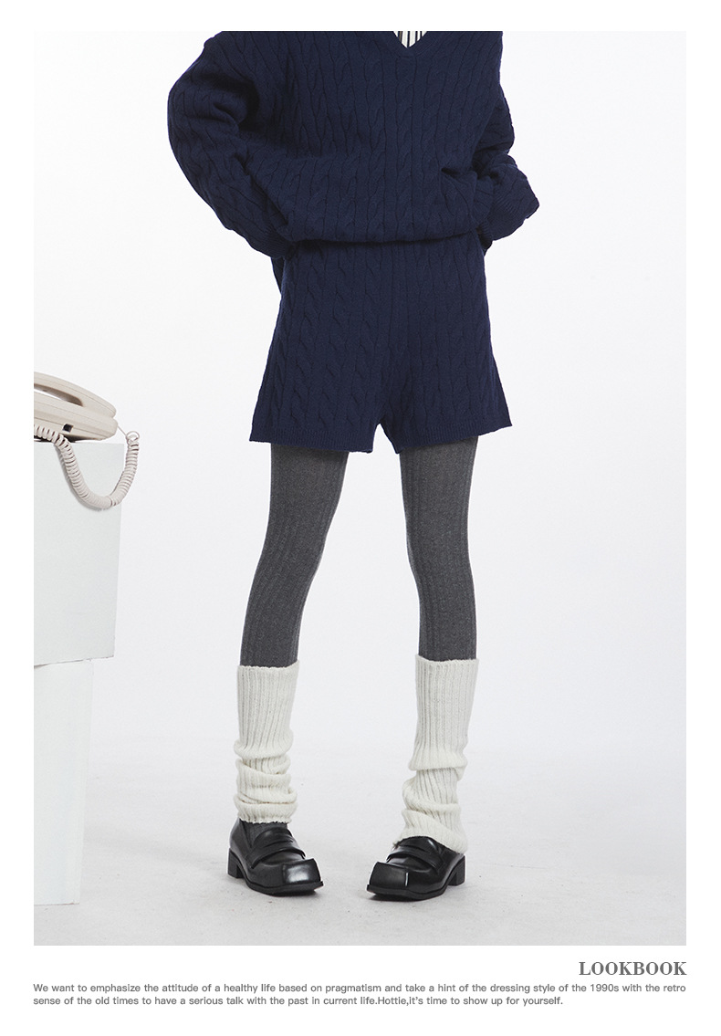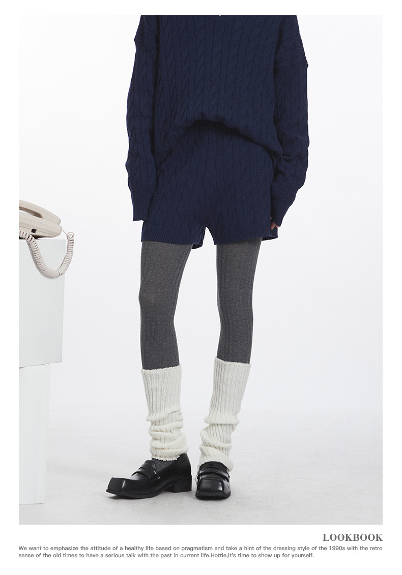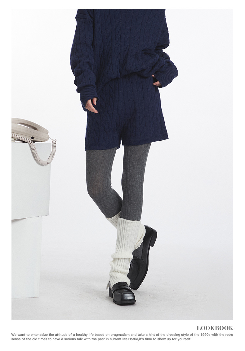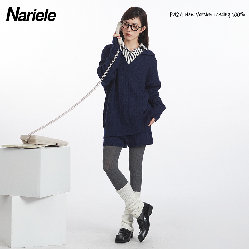 Nariele New Polo Collar Sweater Set Pullover Twist Knitting Shorts Top Set
