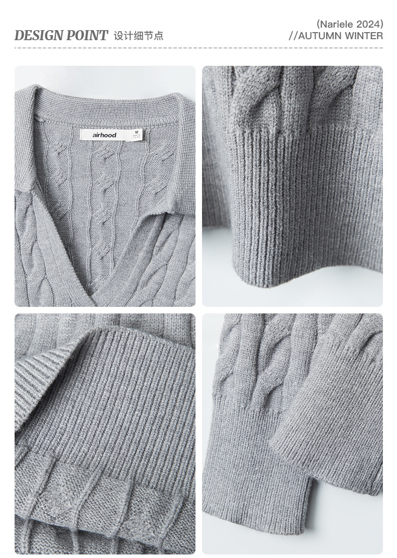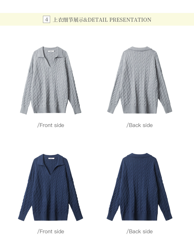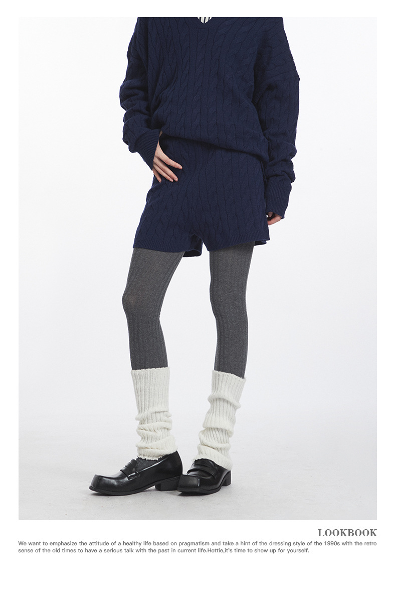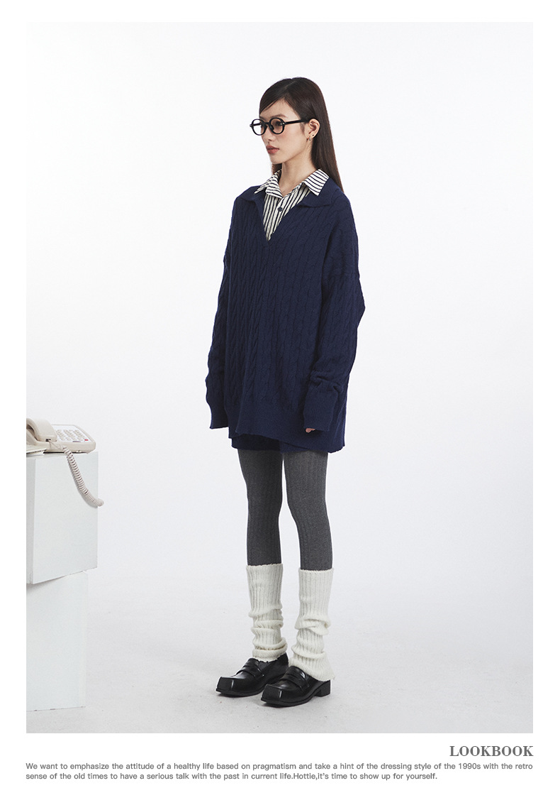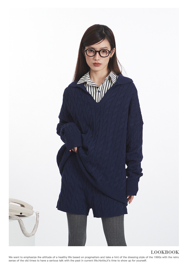 Nariele New Polo Collar Sweater Set Pullover Twist Knitting Shorts Top Set