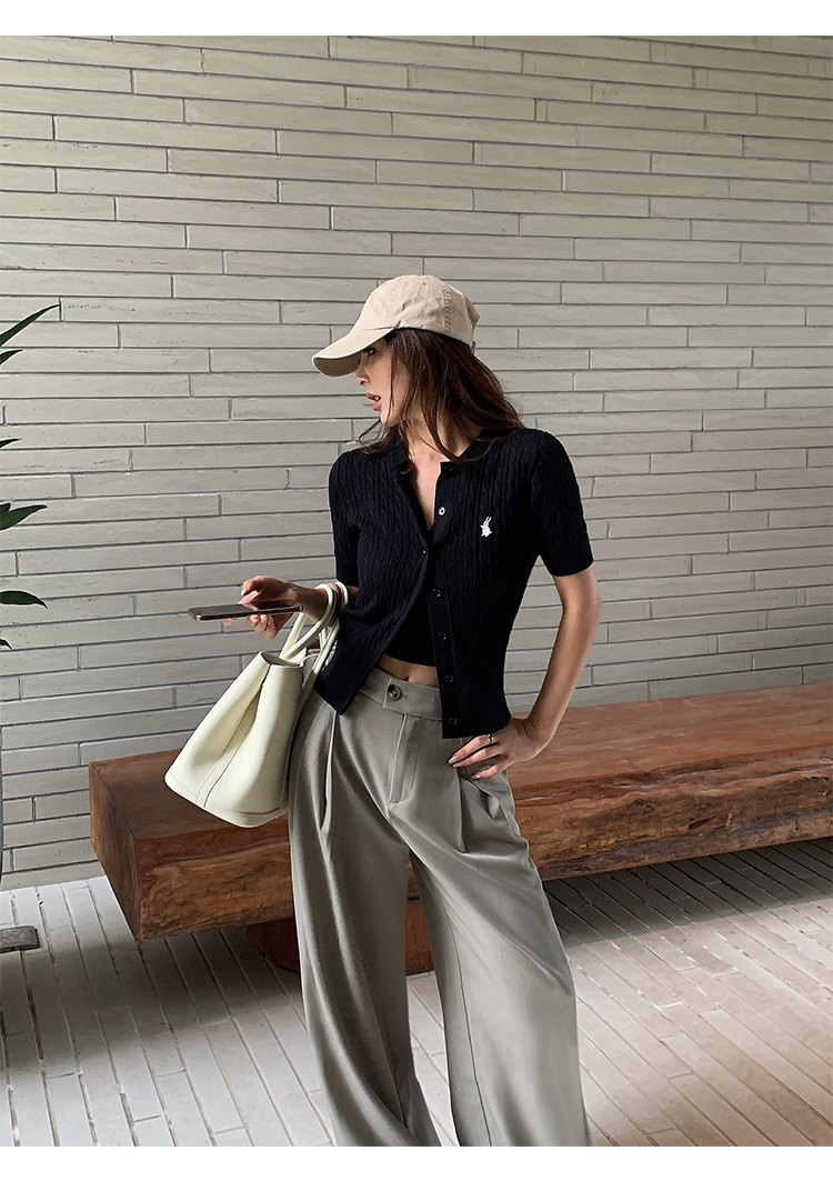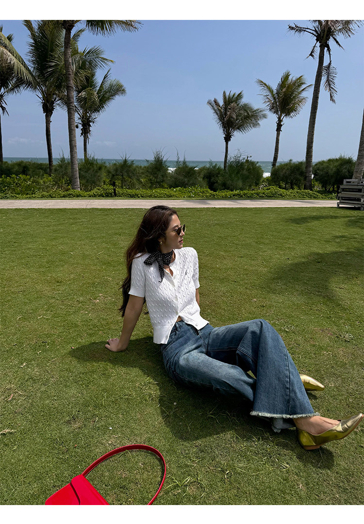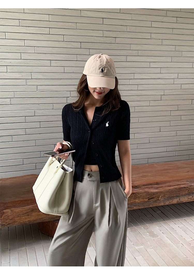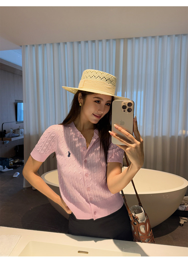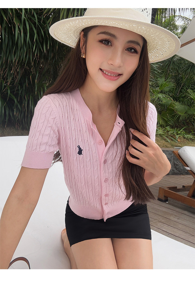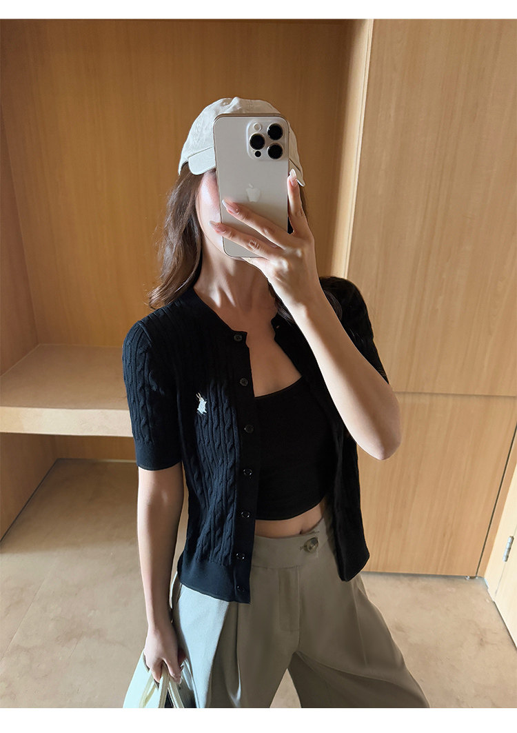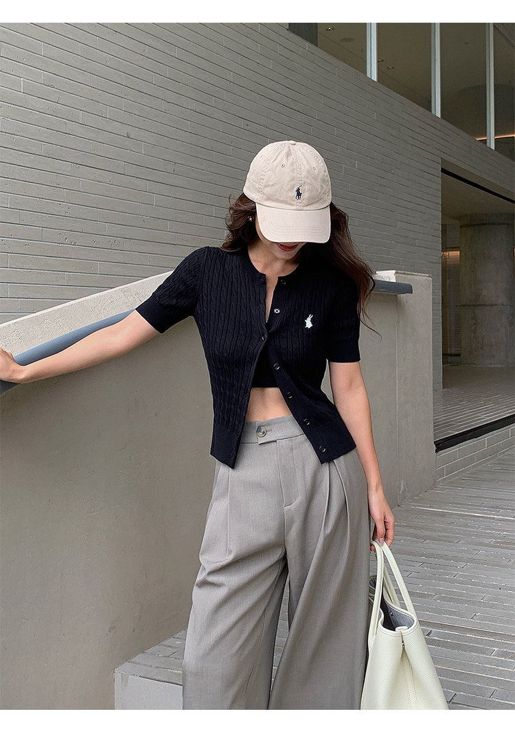 NEVA HU Embroidered Crew Neck Twist Short-sleeved Knitted Cardigan