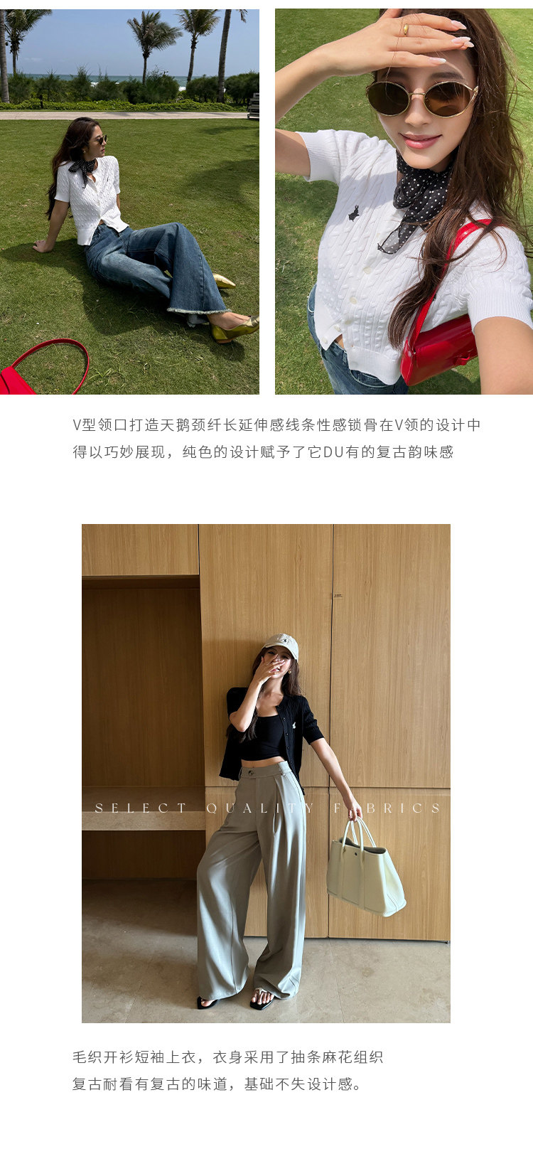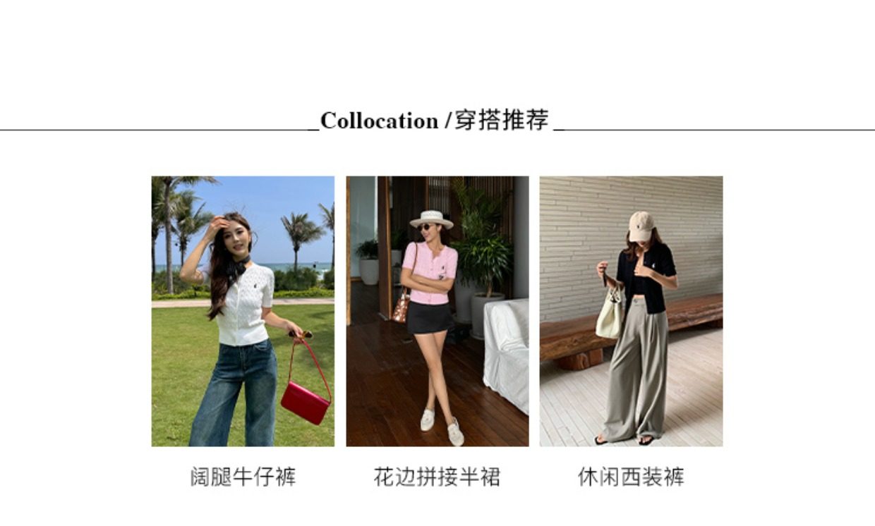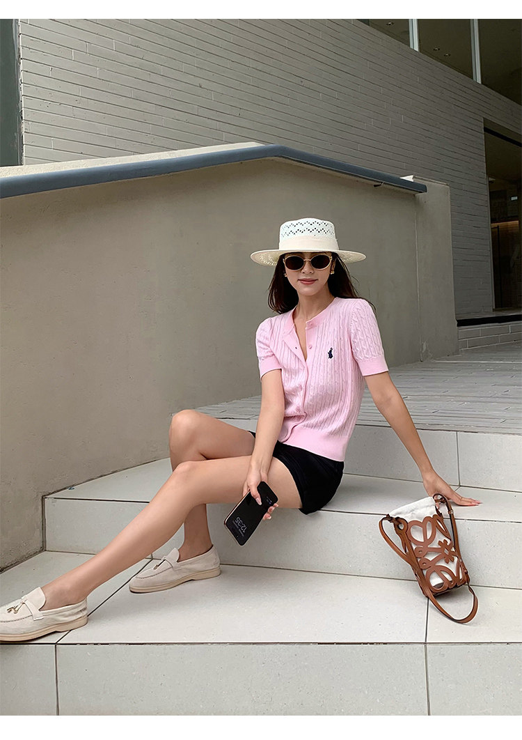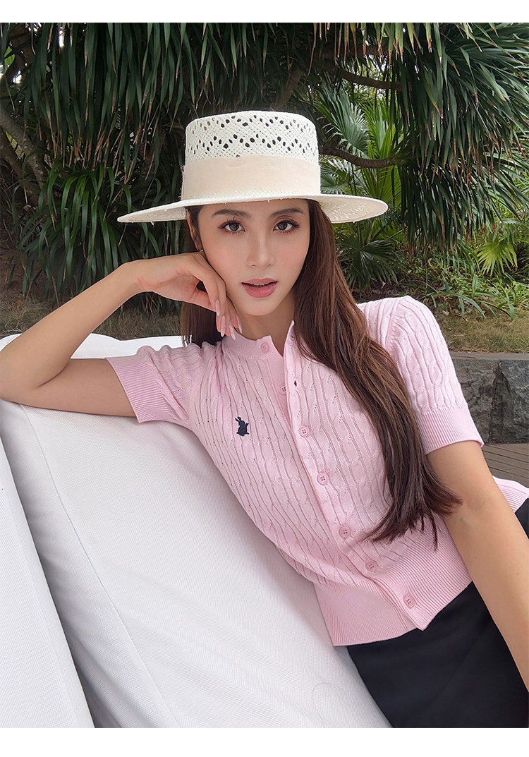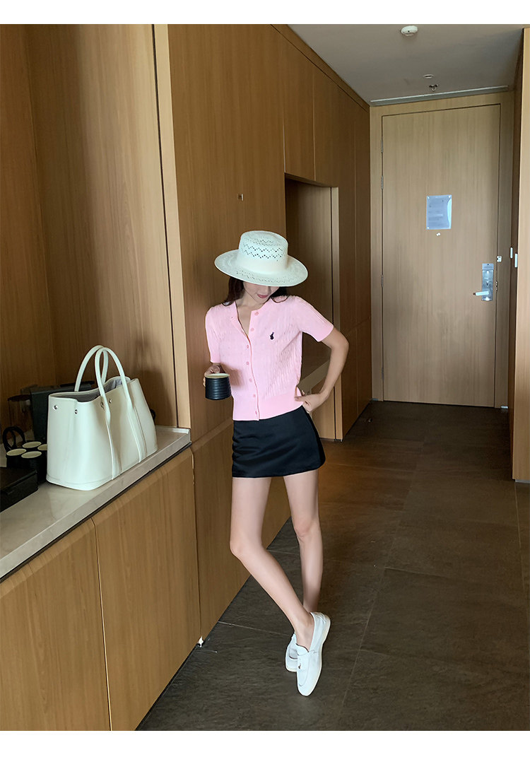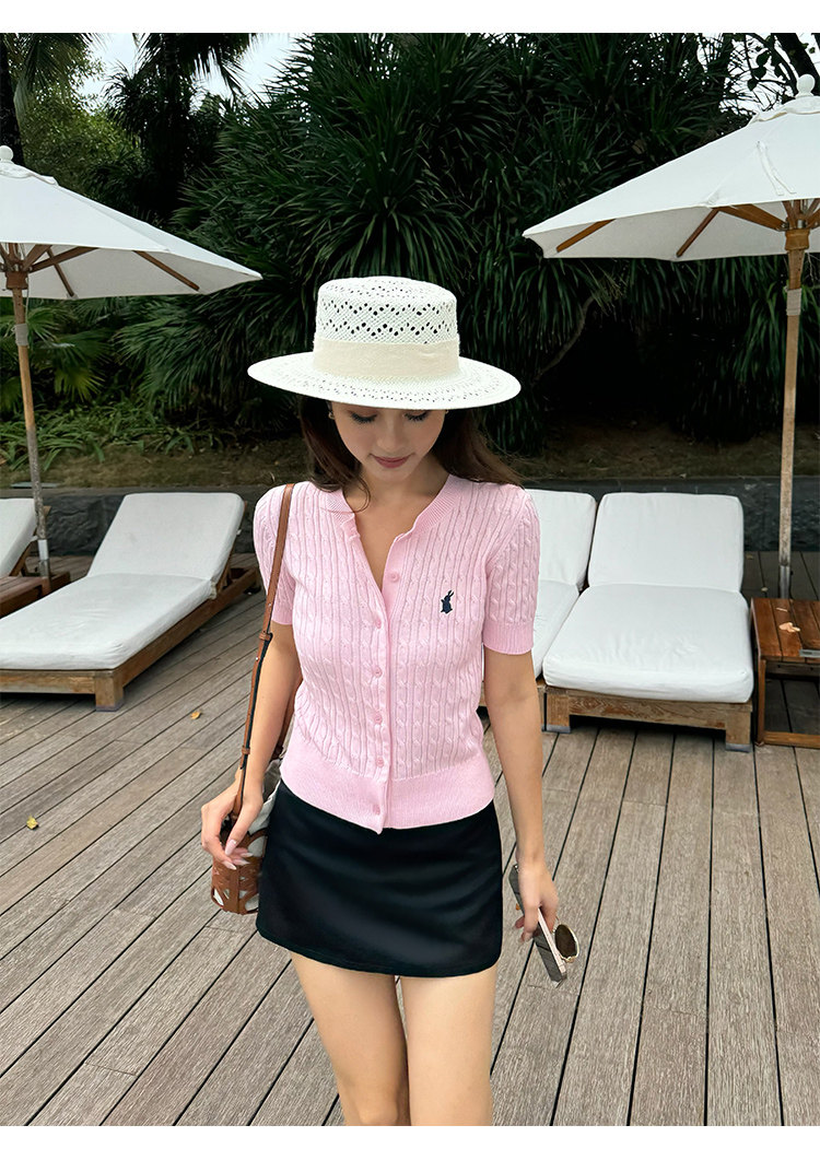 NEVA HU Embroidered Crew Neck Twist Short-sleeved Knitted Cardigan