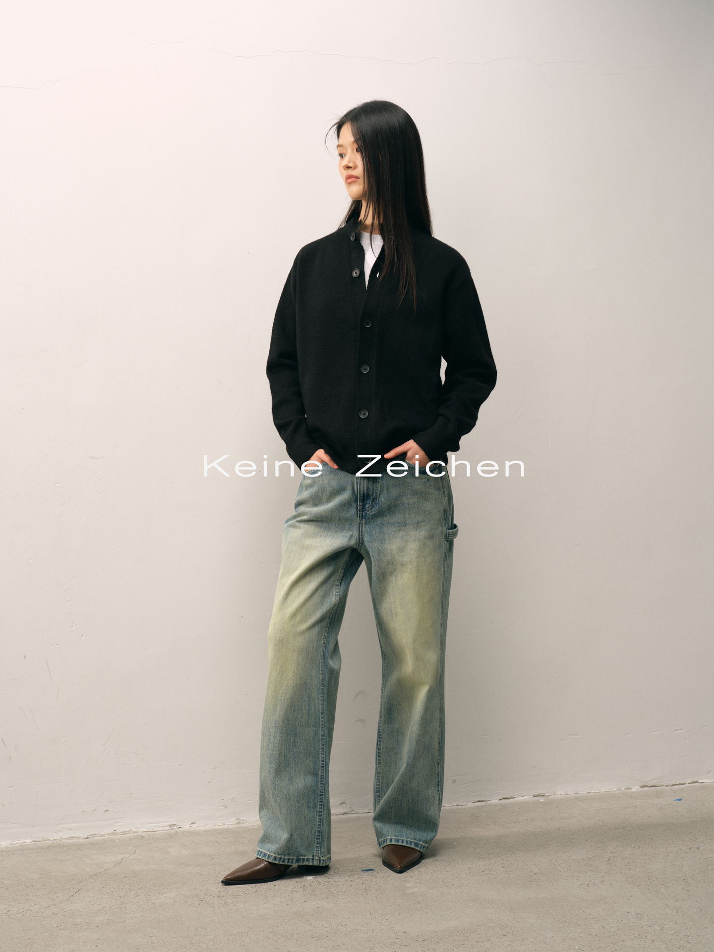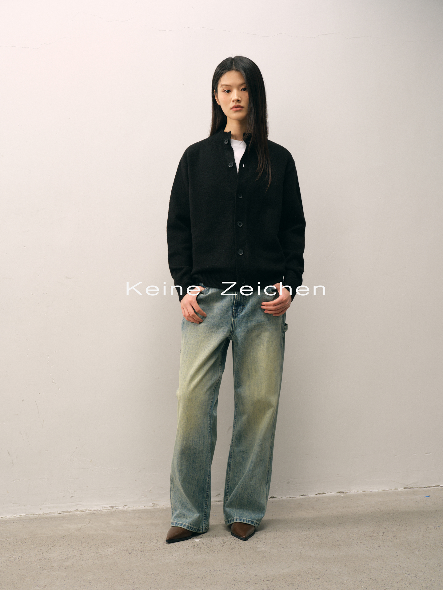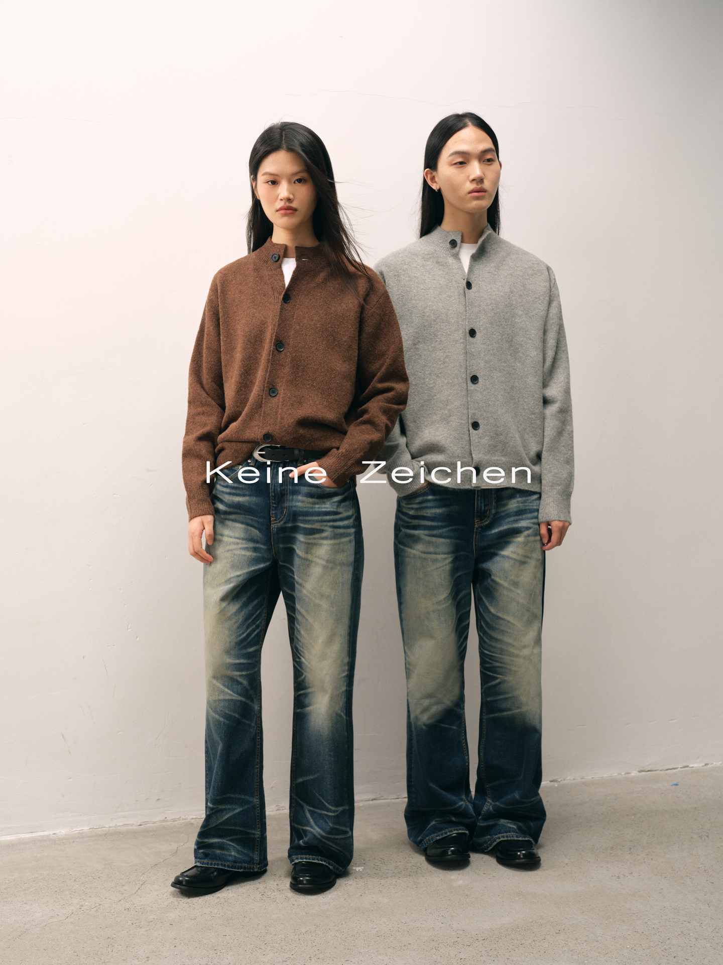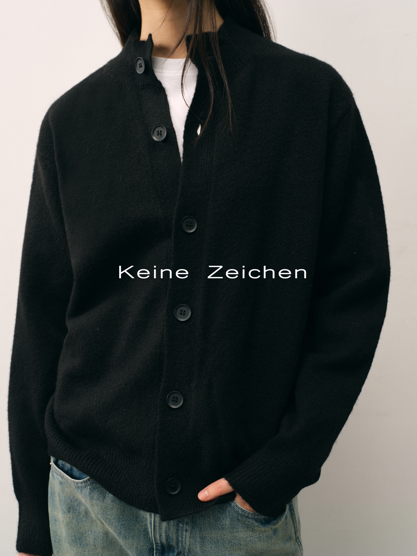 NO LOGO Knitted Button-up Neck Cardigan Sweater