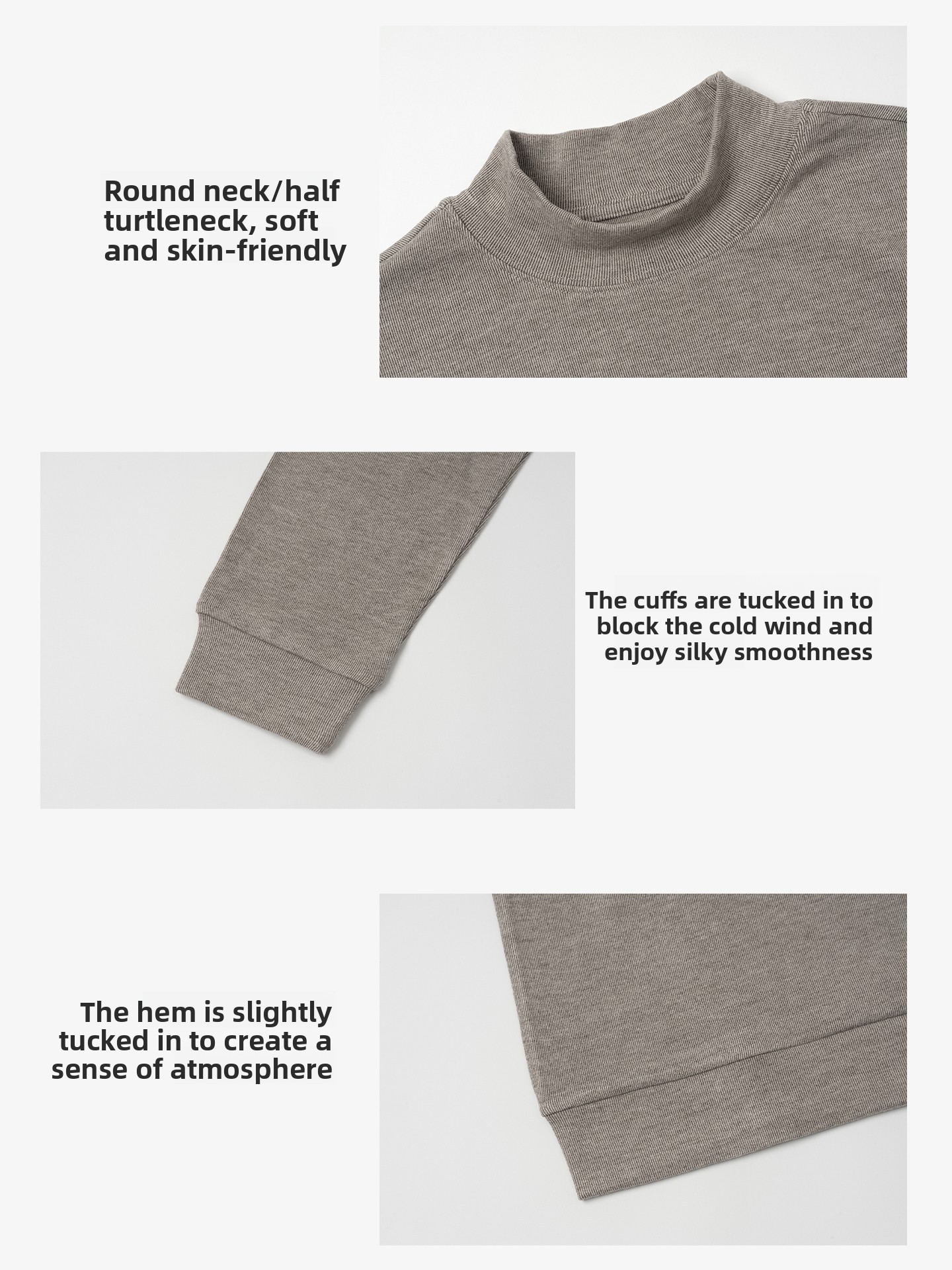 NO LOGO Round Neck Half Turtleneck Warm Long Sleeves