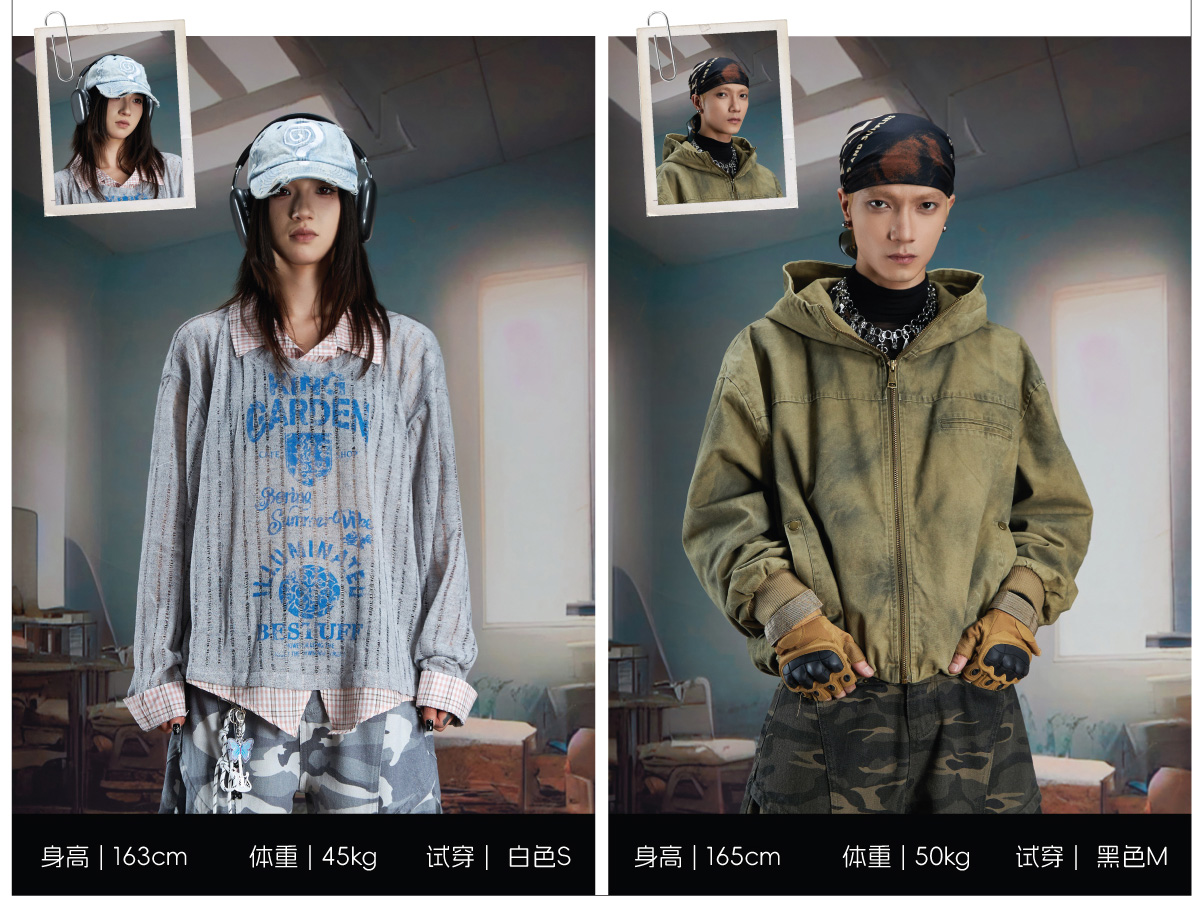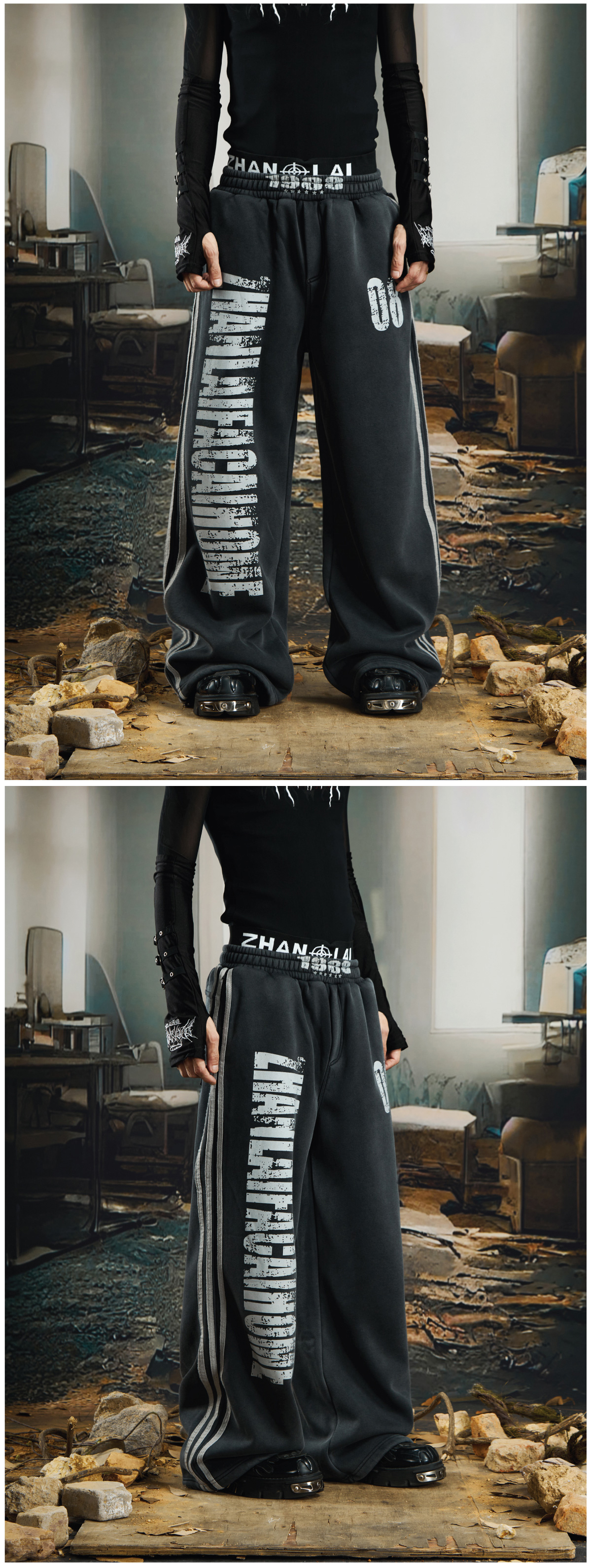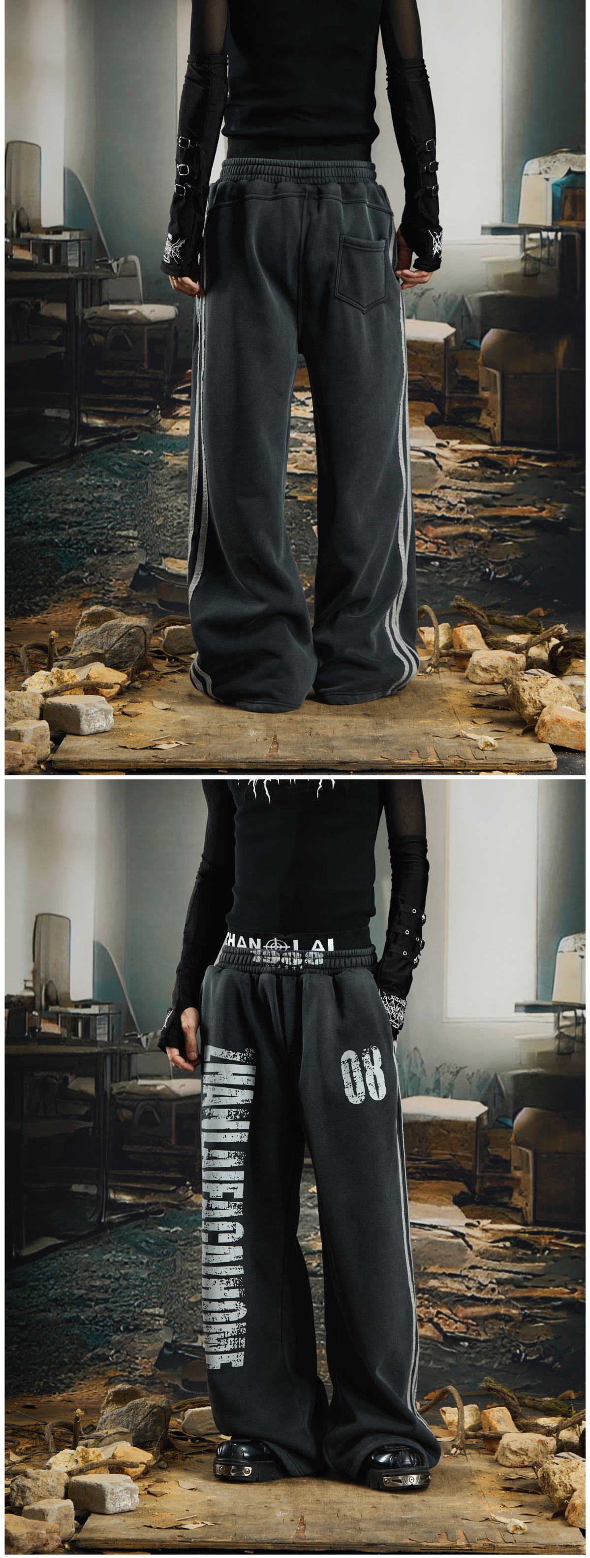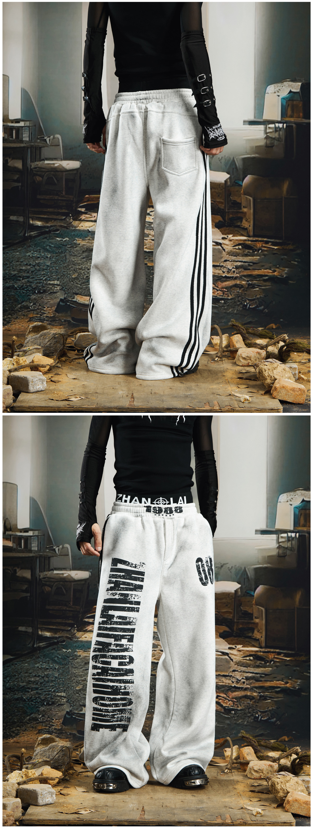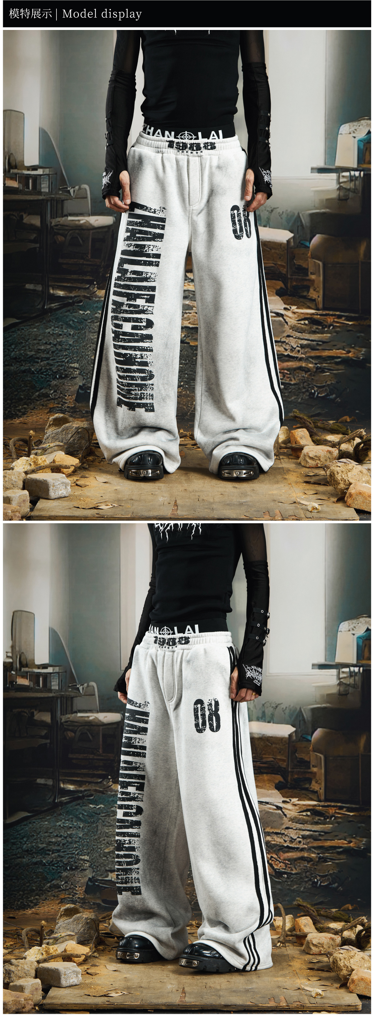 NOMANIAI Dirty Dyed Mottled Print Loose Striped Sweatpants