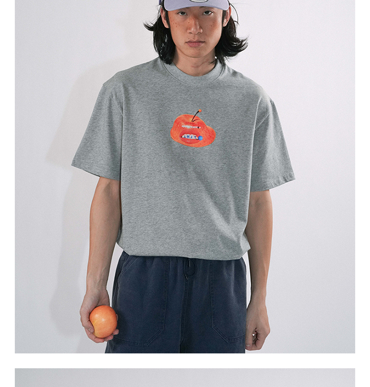O3PARK Loose and Versatile "Apple Warrior" Printed Tee