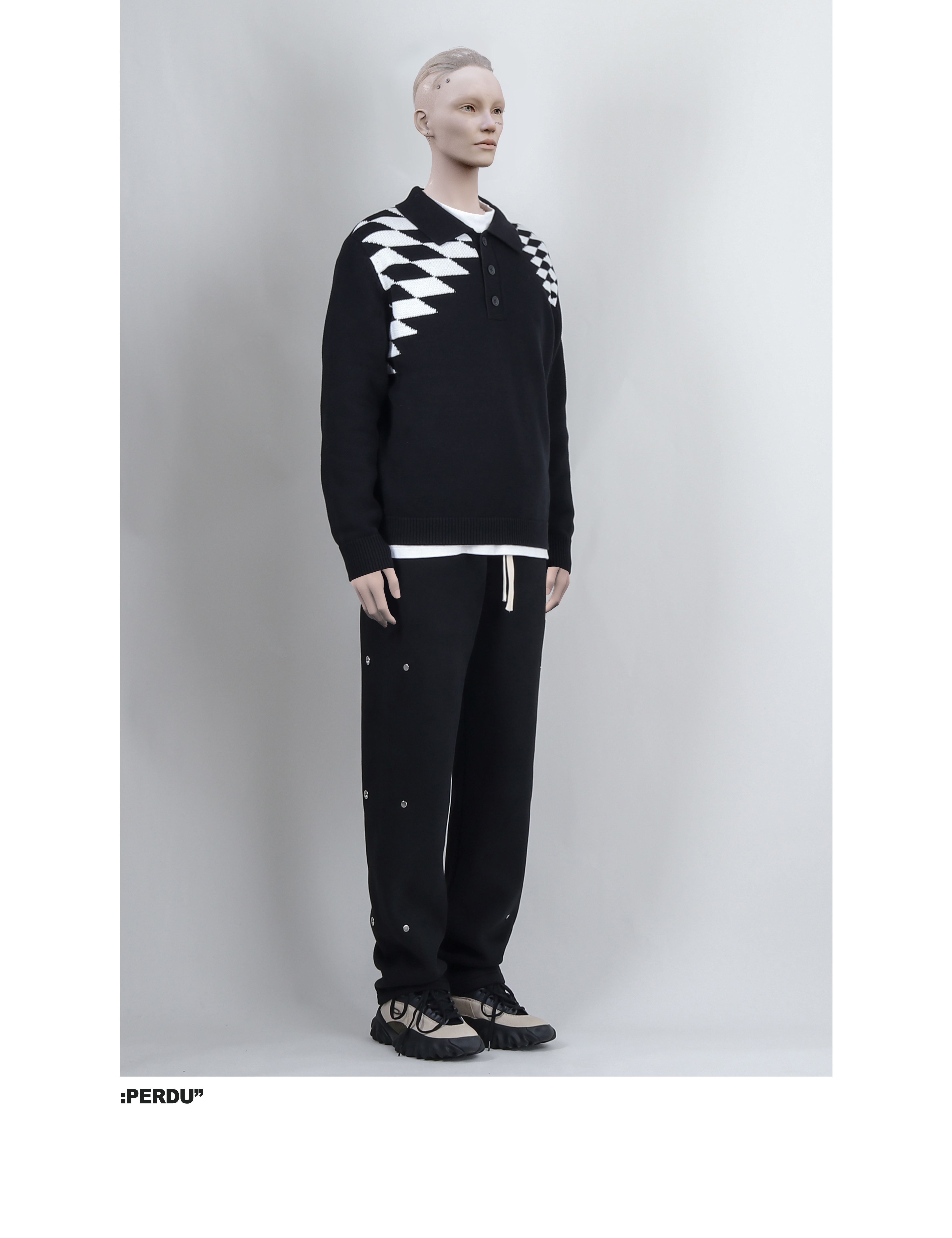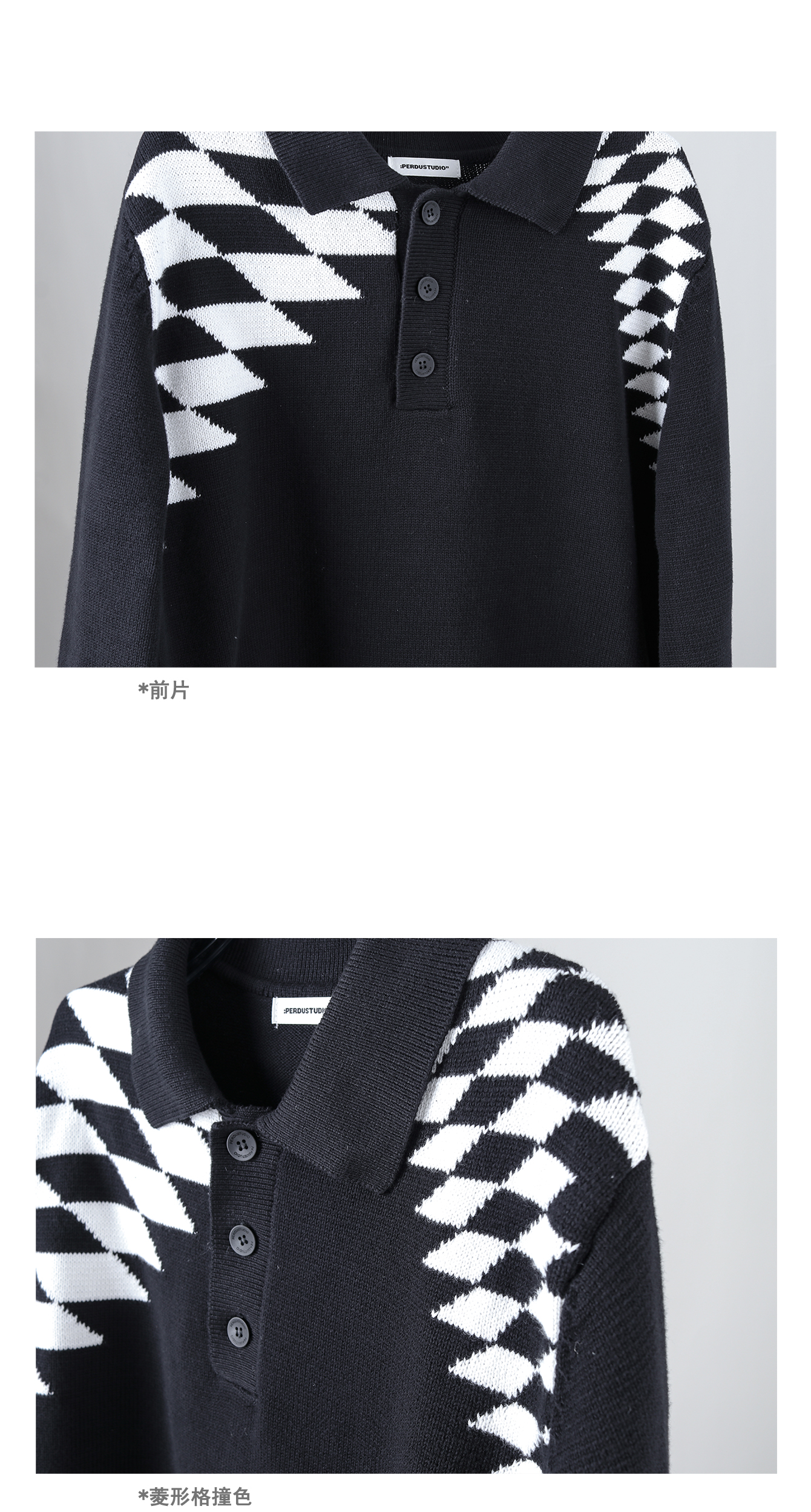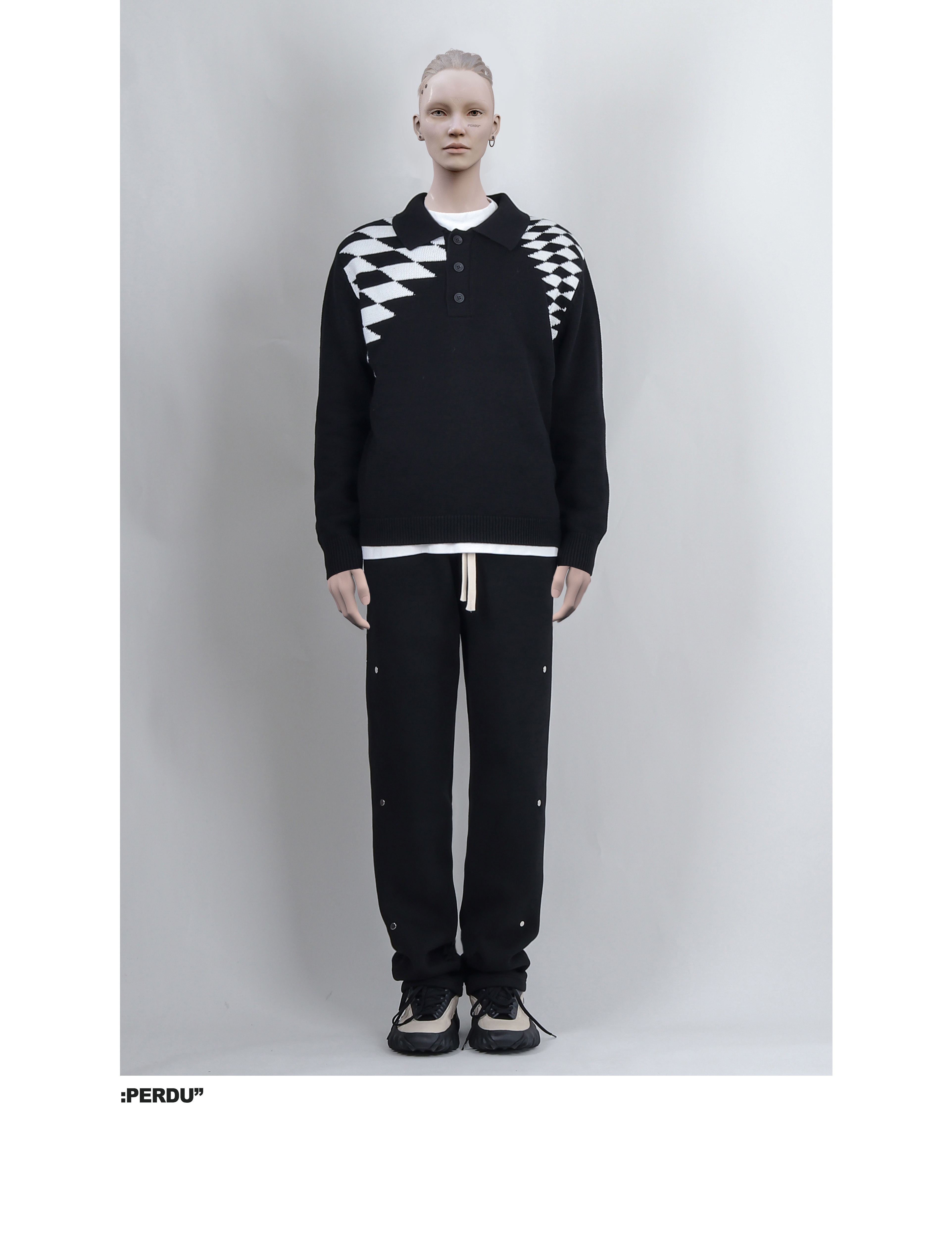 PERDU Rhombus Contrasting Polo Shirt