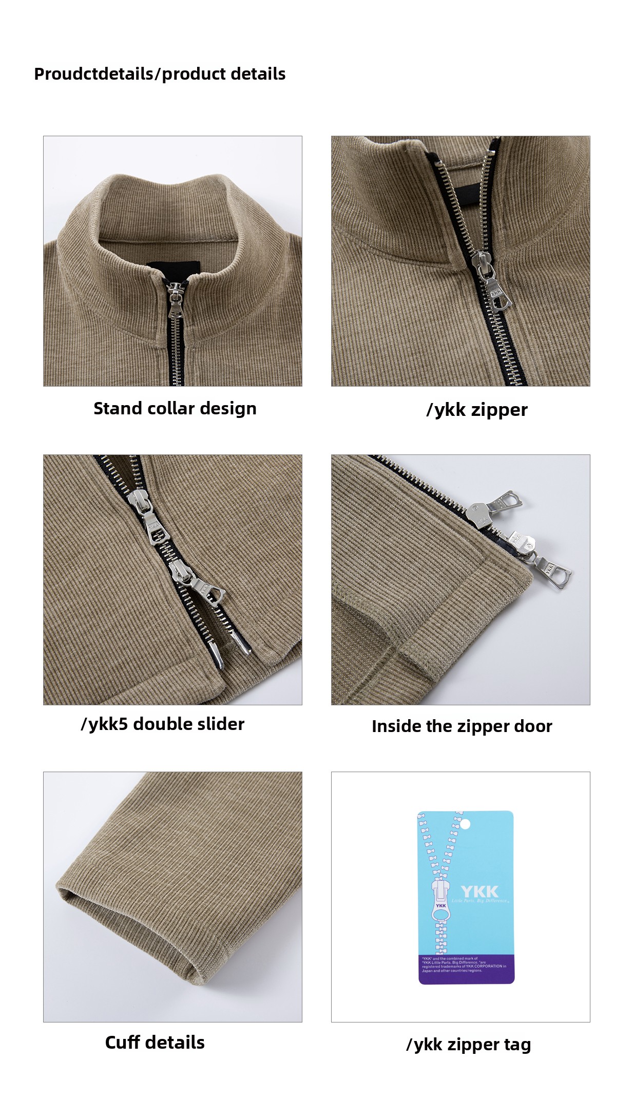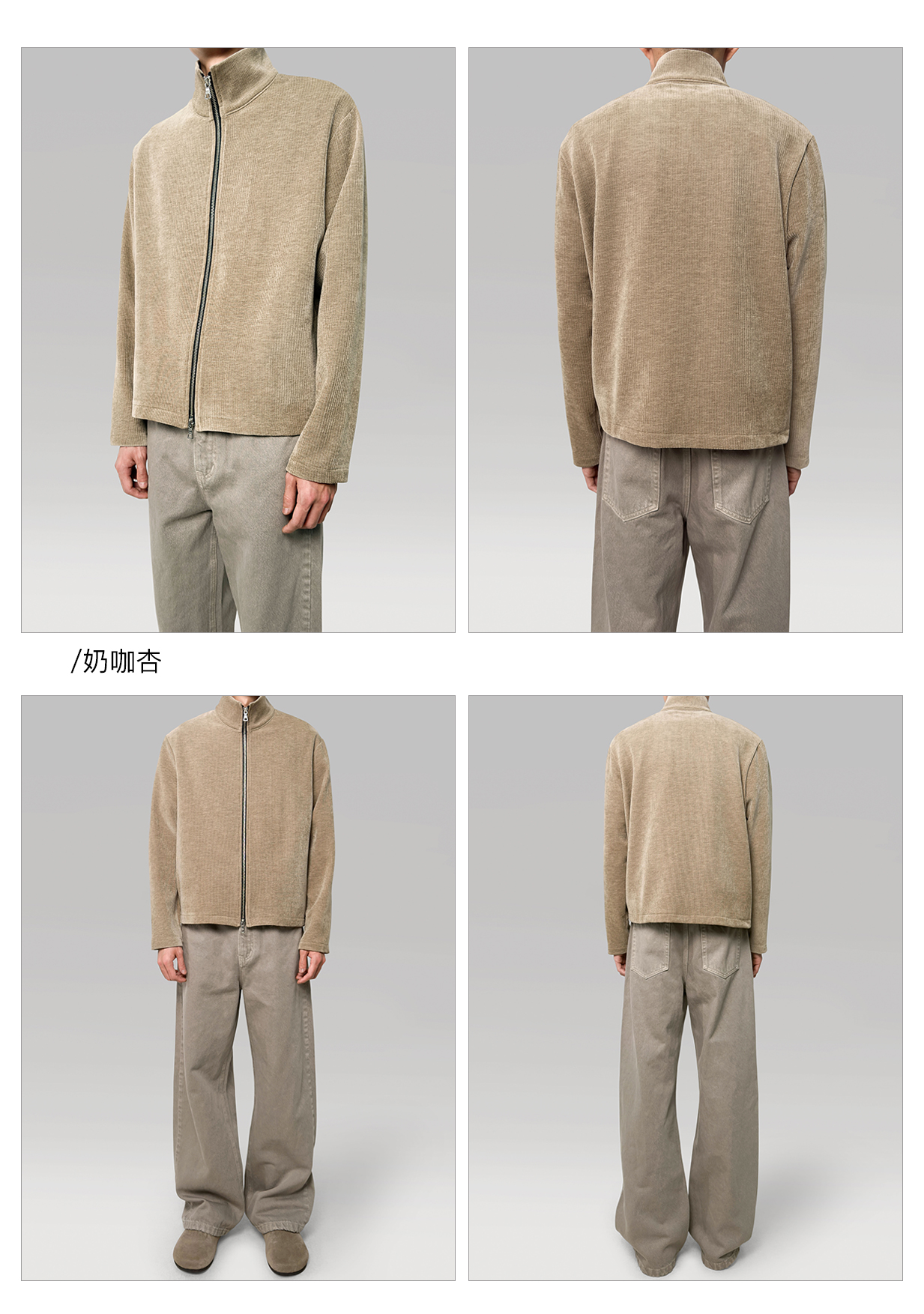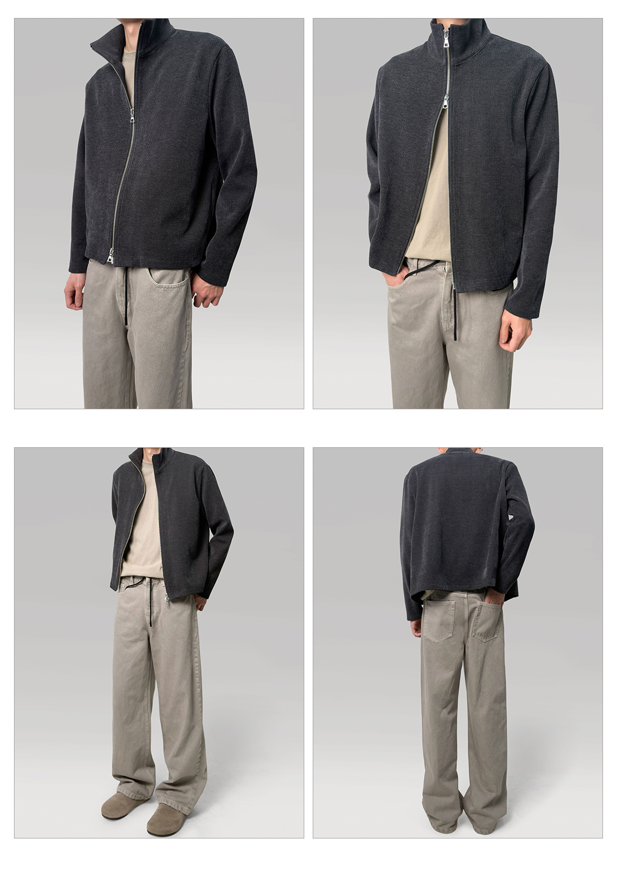 PLUS NO LOGO Striped Double Zipper Turtleneck Jacket
