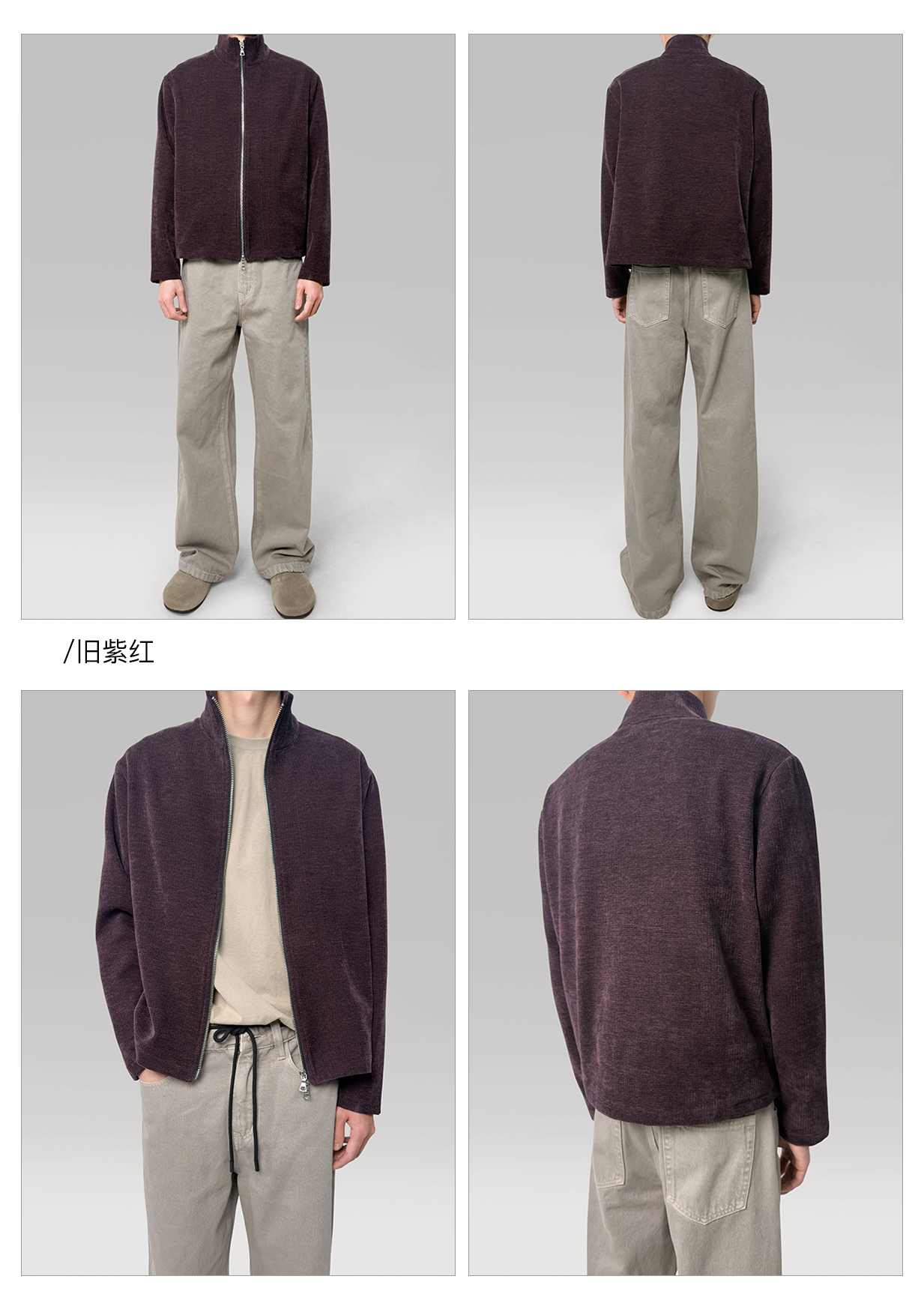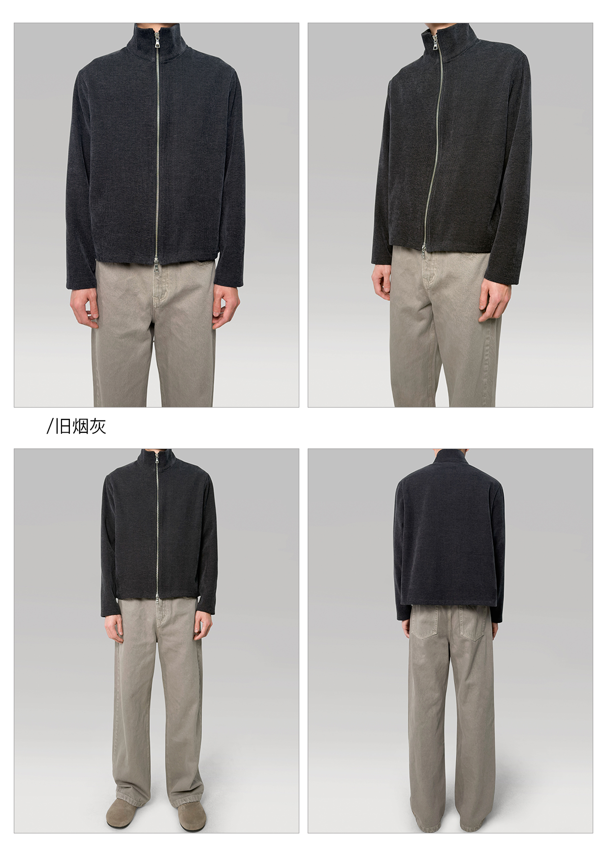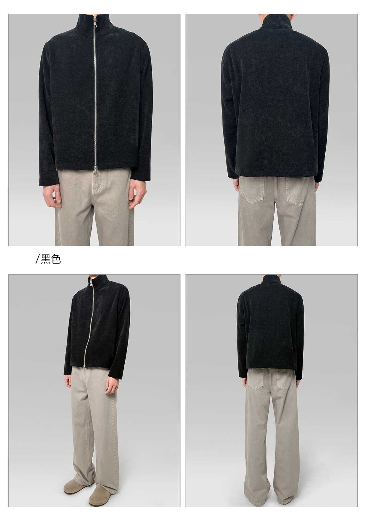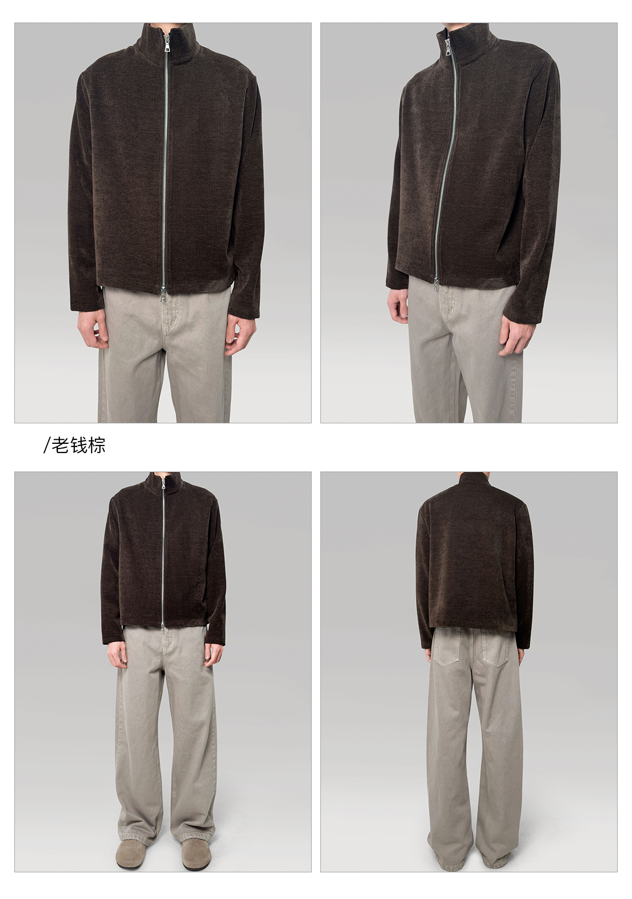 PLUS NO LOGO Striped Double Zipper Turtleneck Jacket