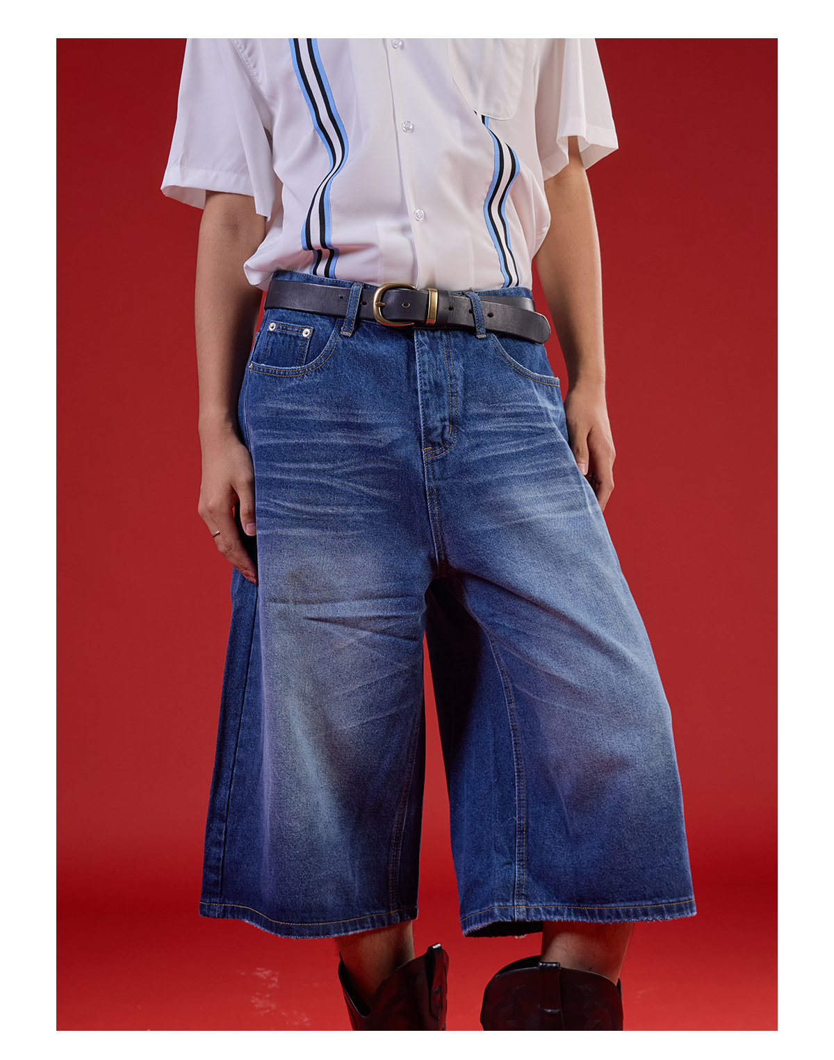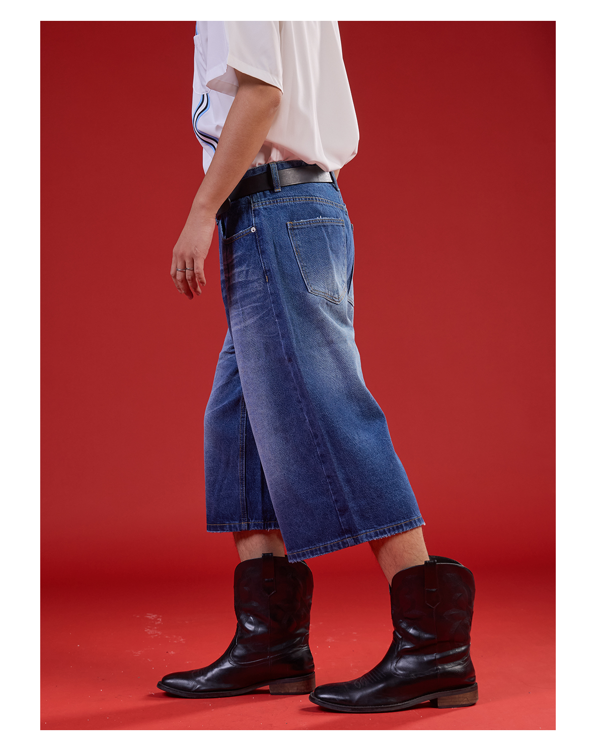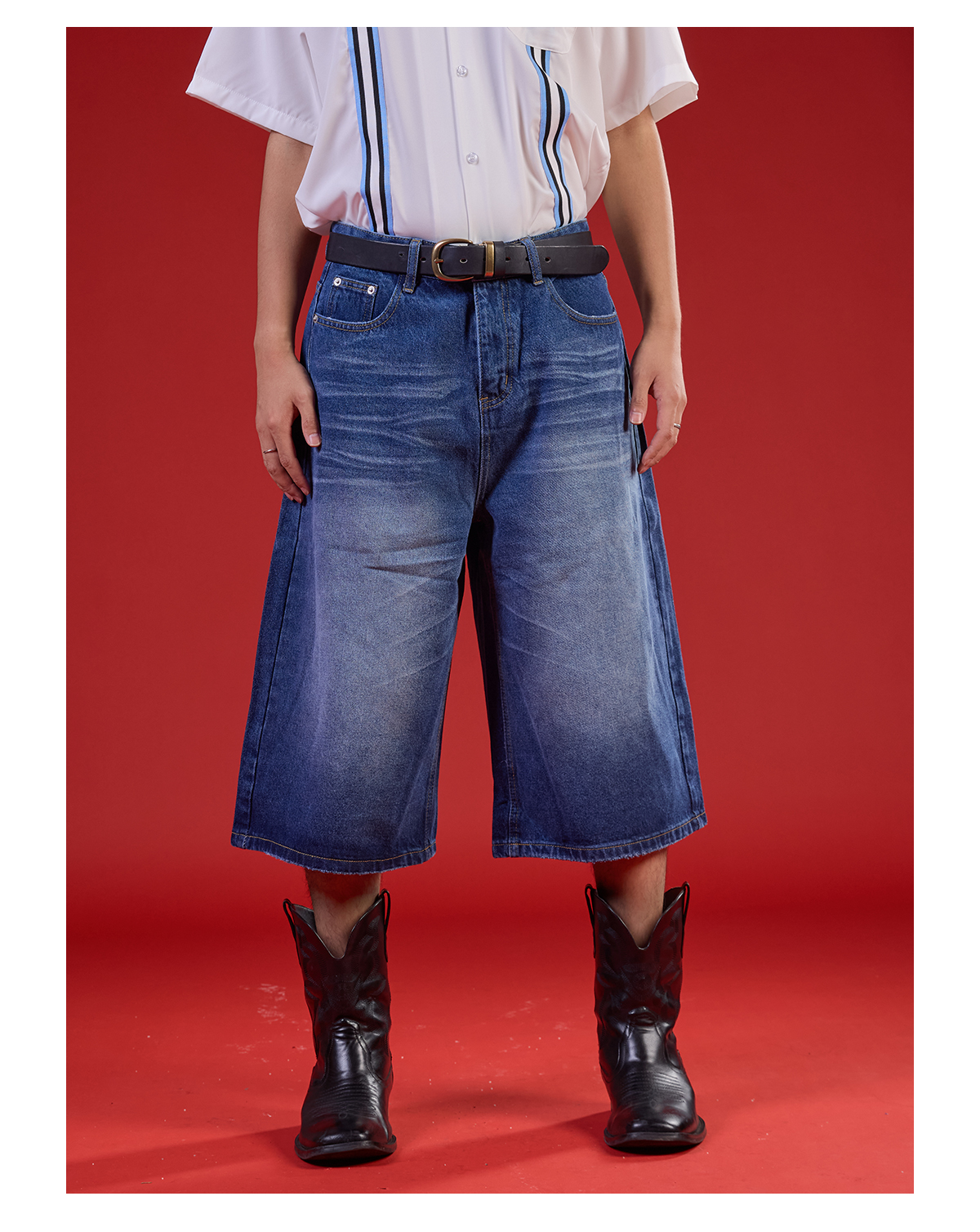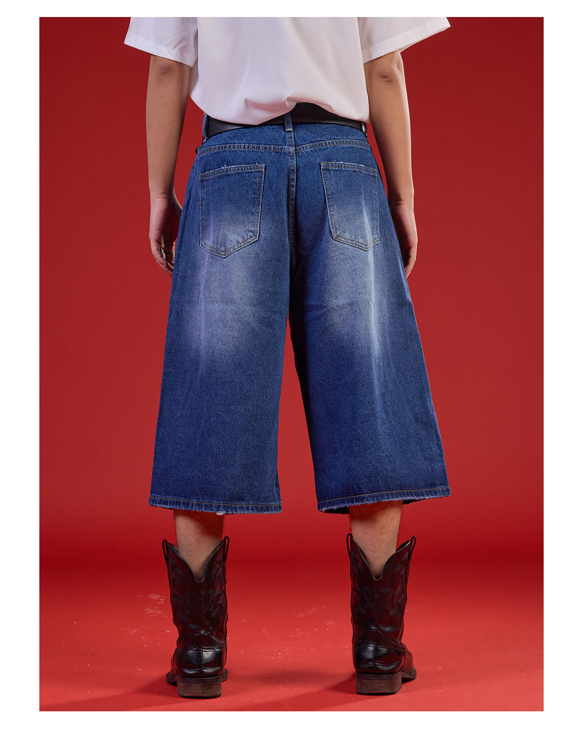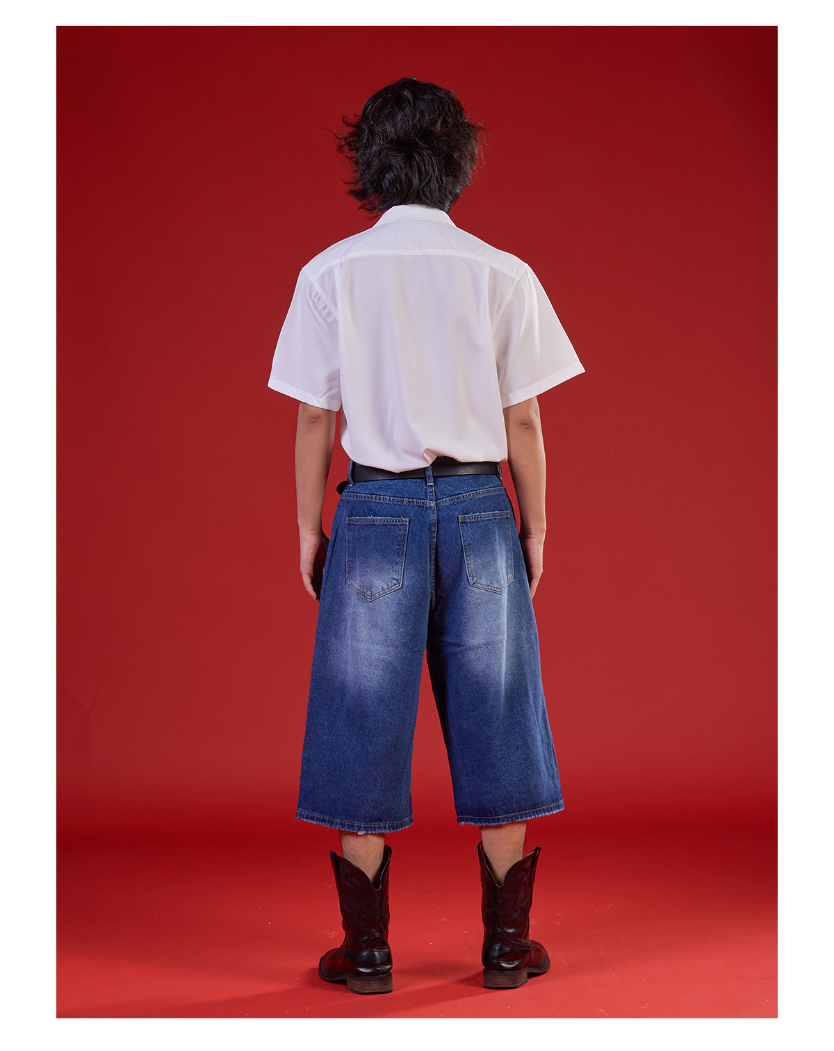 PUBLICRADIO Retro Washed Knee Denim Shorts