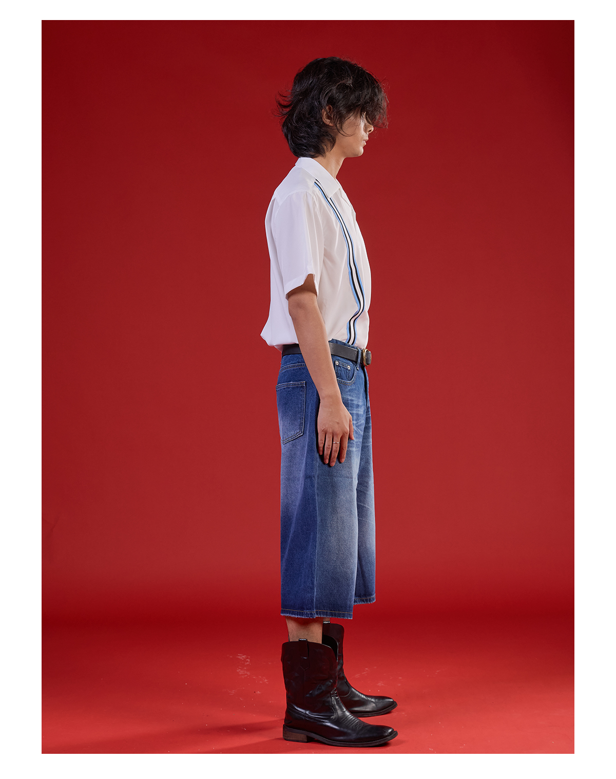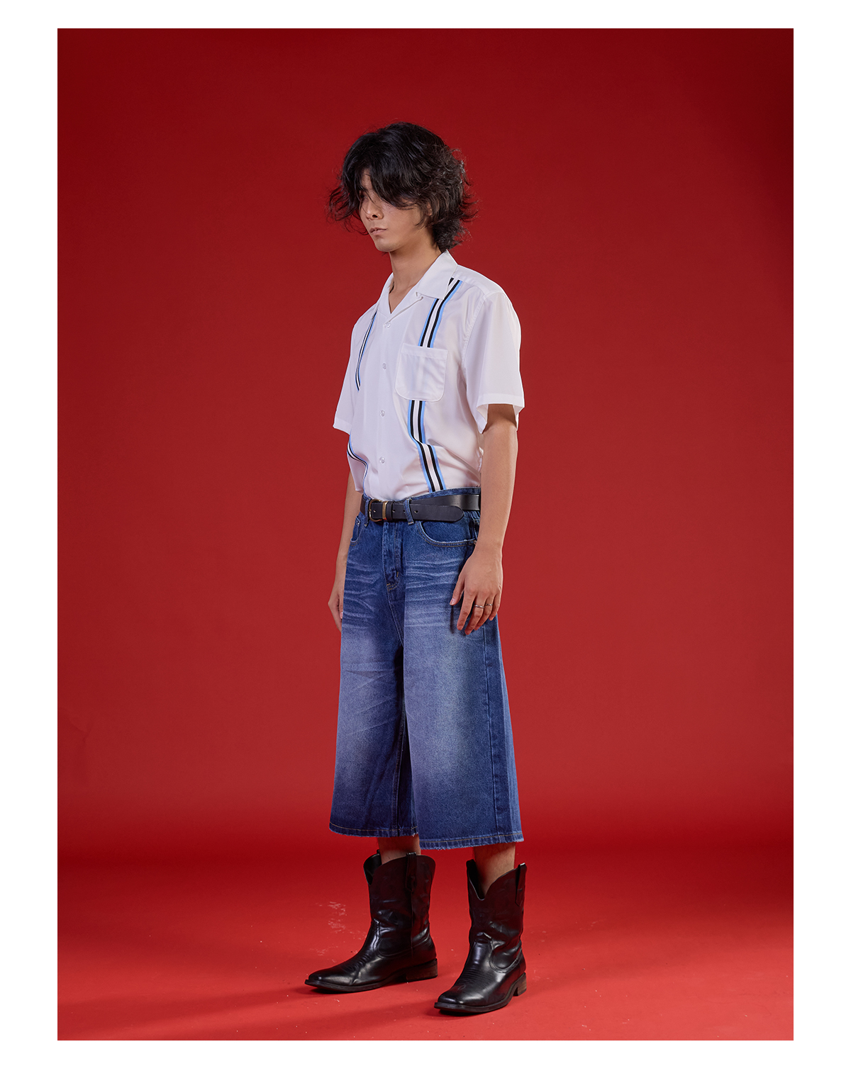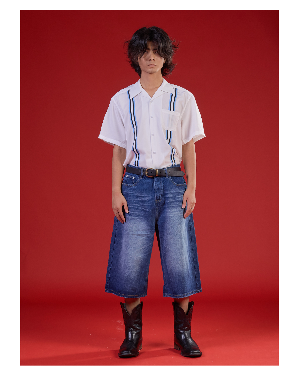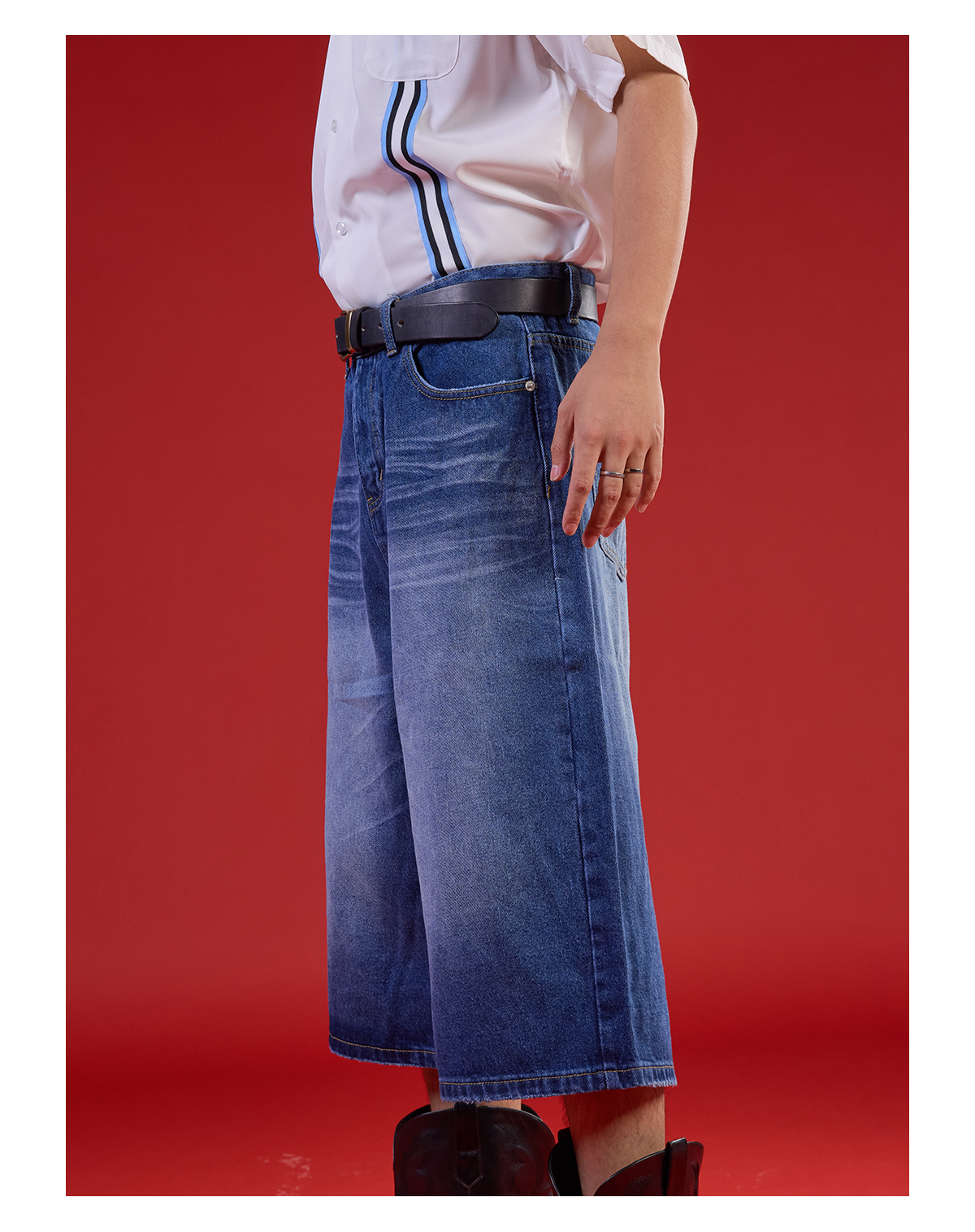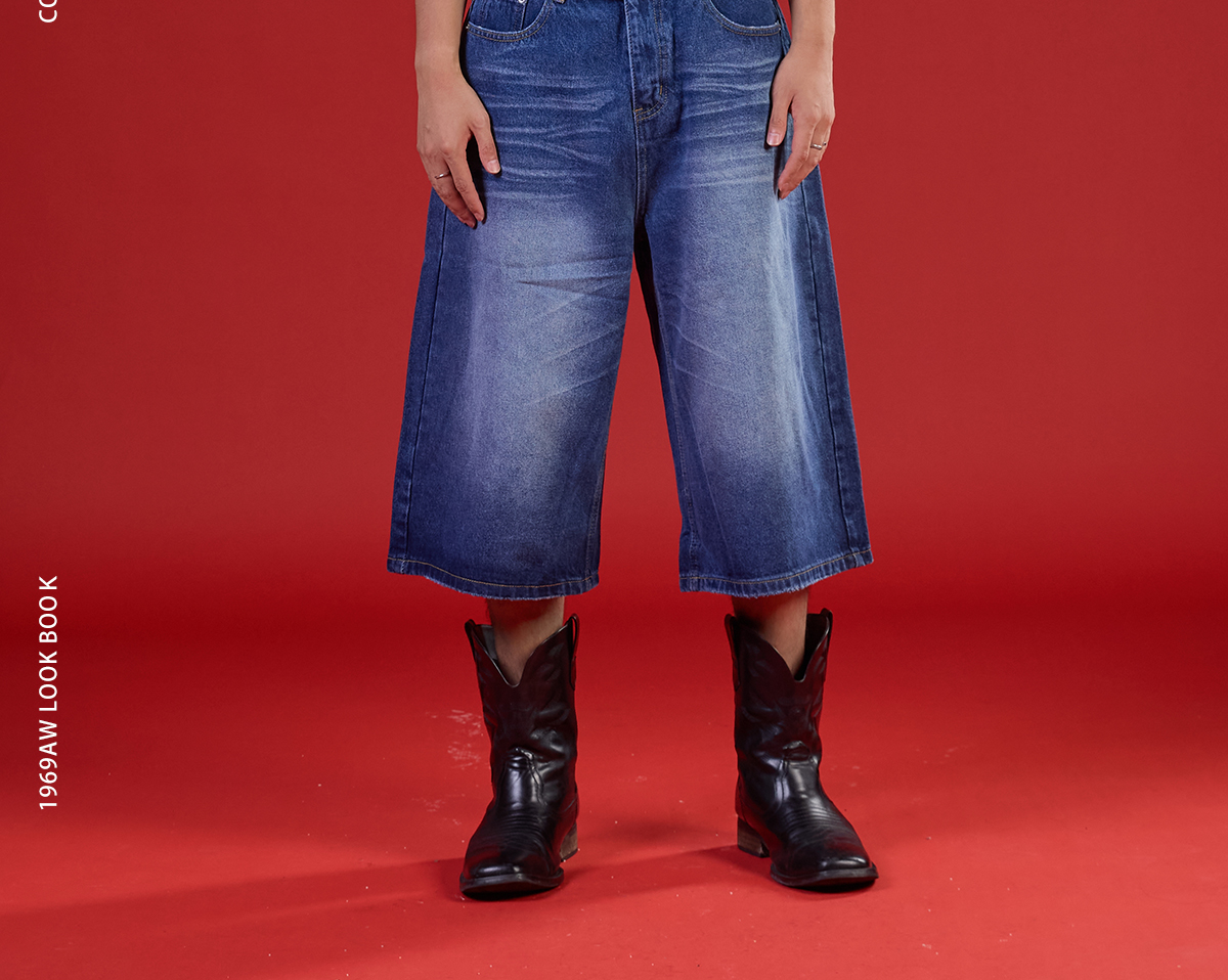 PUBLICRADIO Retro Washed Knee Denim Shorts